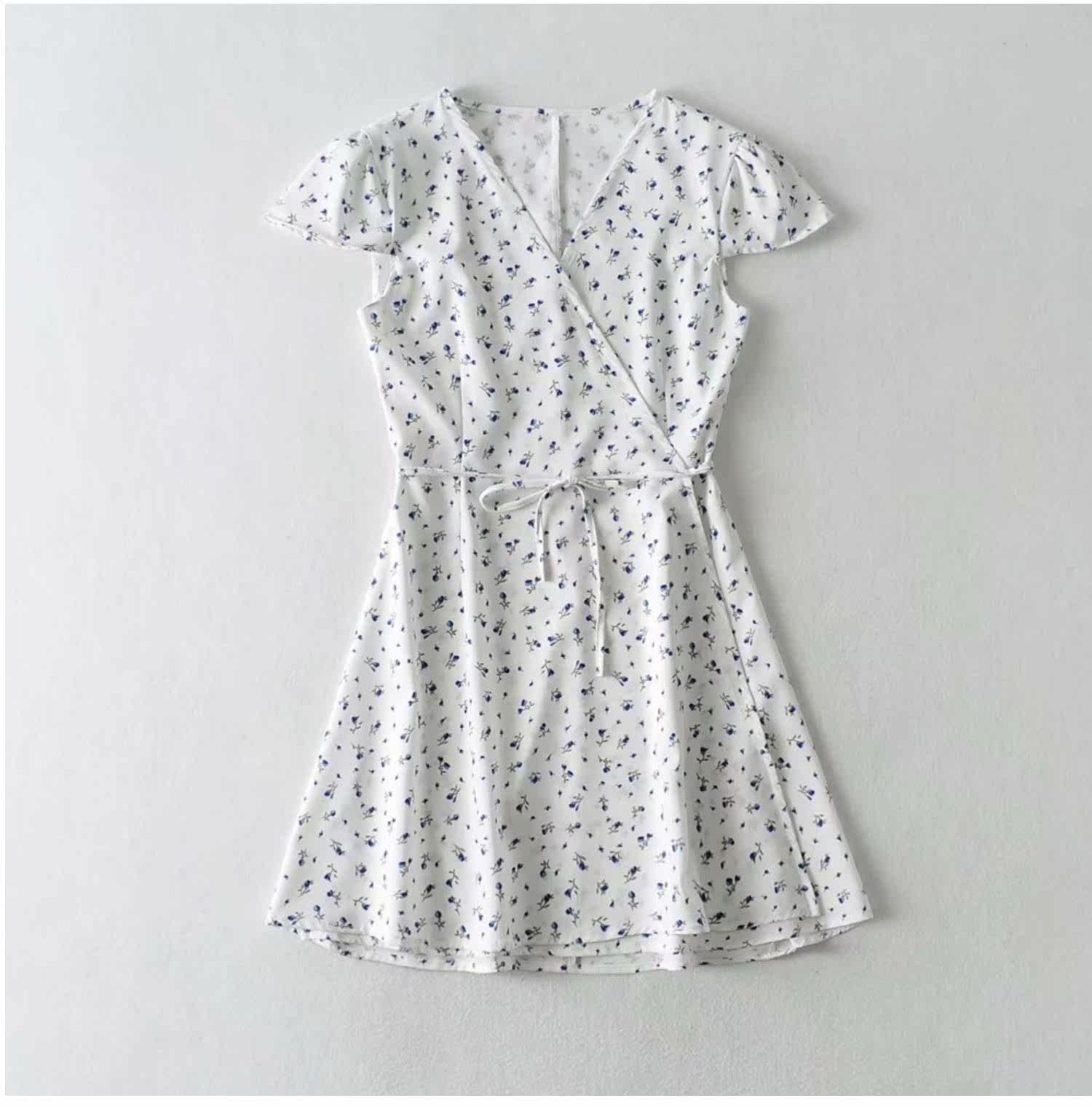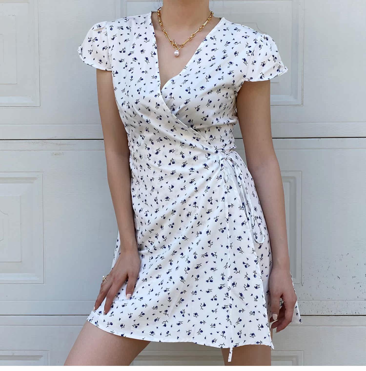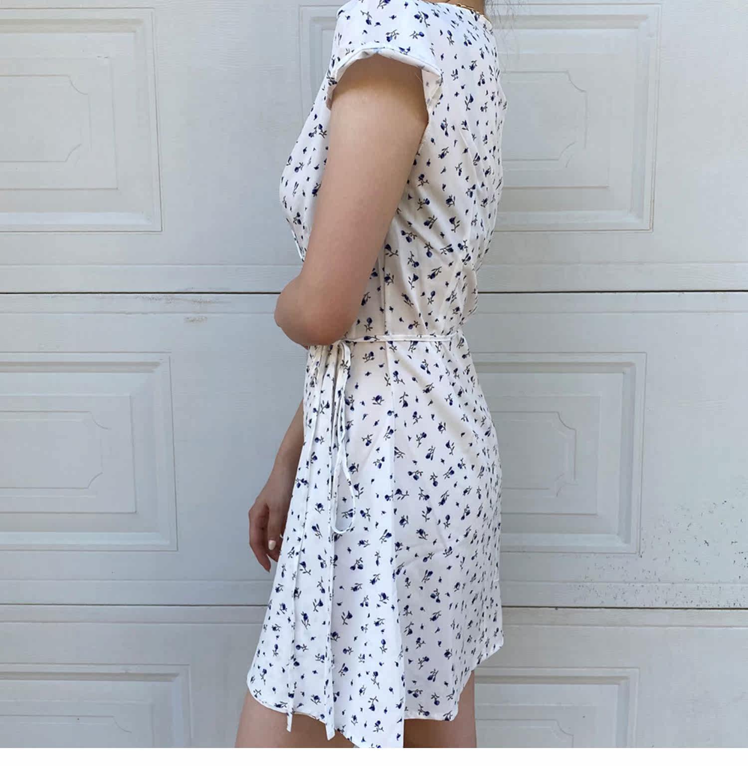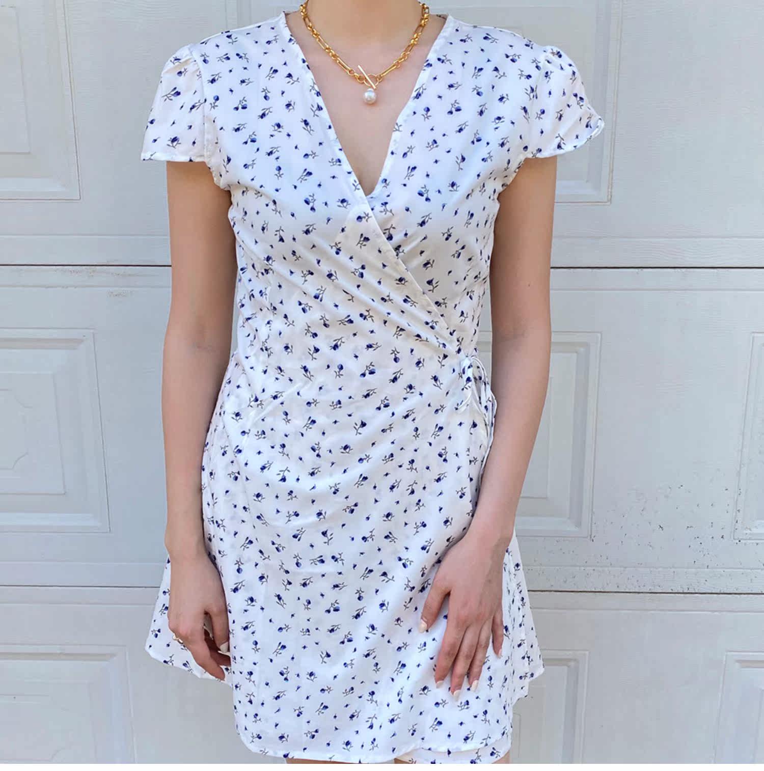 Ретро приталенное платье, юбка, мини-юбка, французский стиль, цветочный принт, V-образный вырез