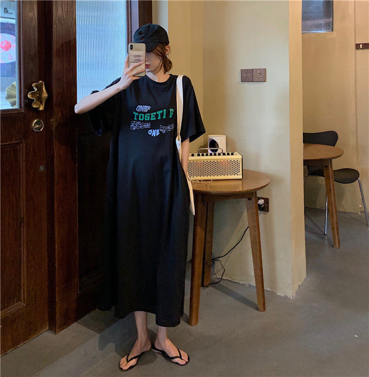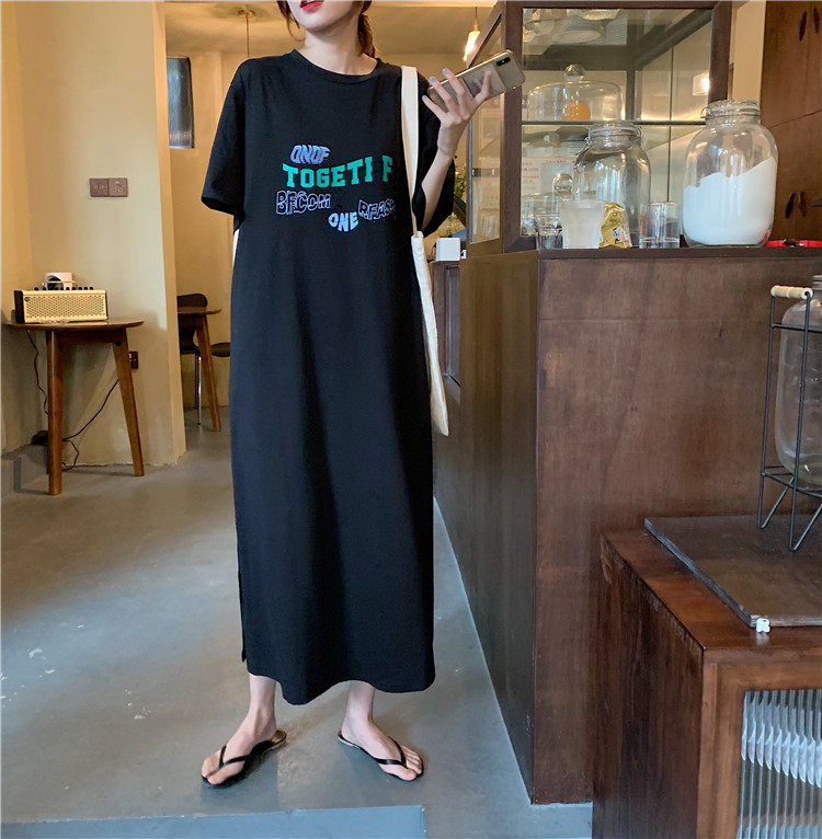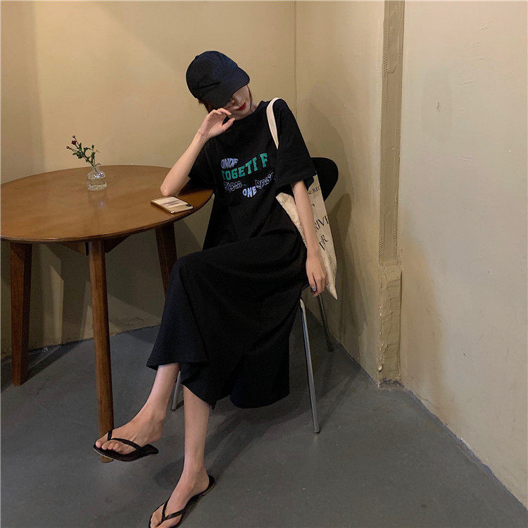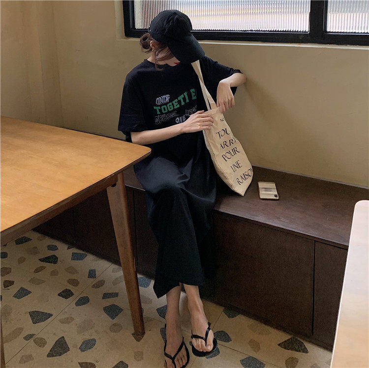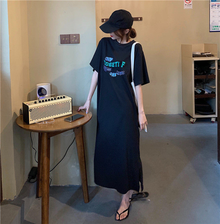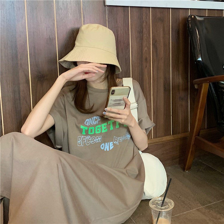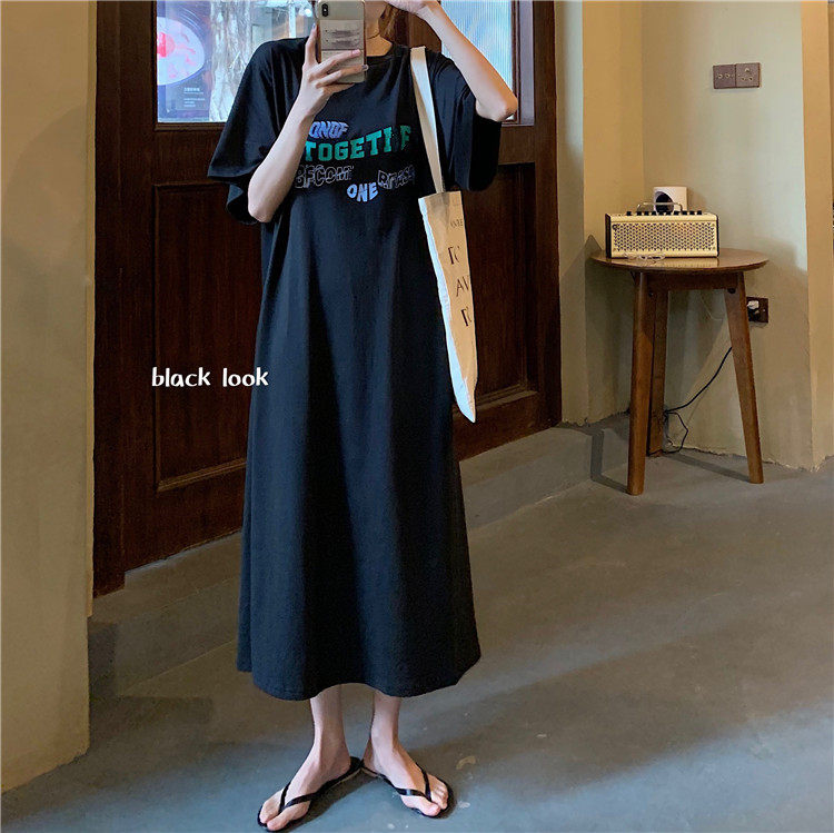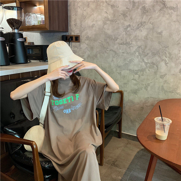 Летняя футболка, сверхдлинная длинная юбка для отдыха, оверсайз, свободный прямой крой