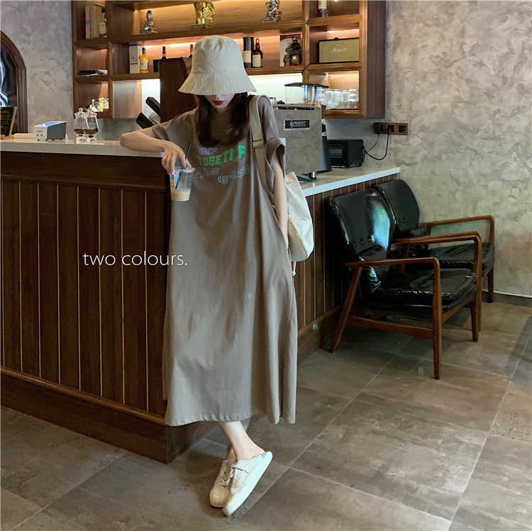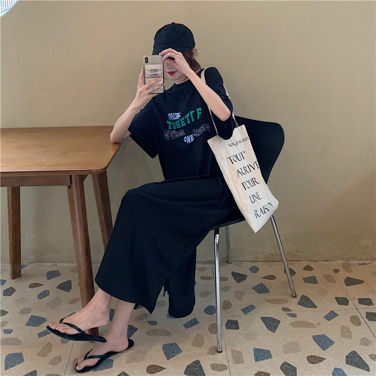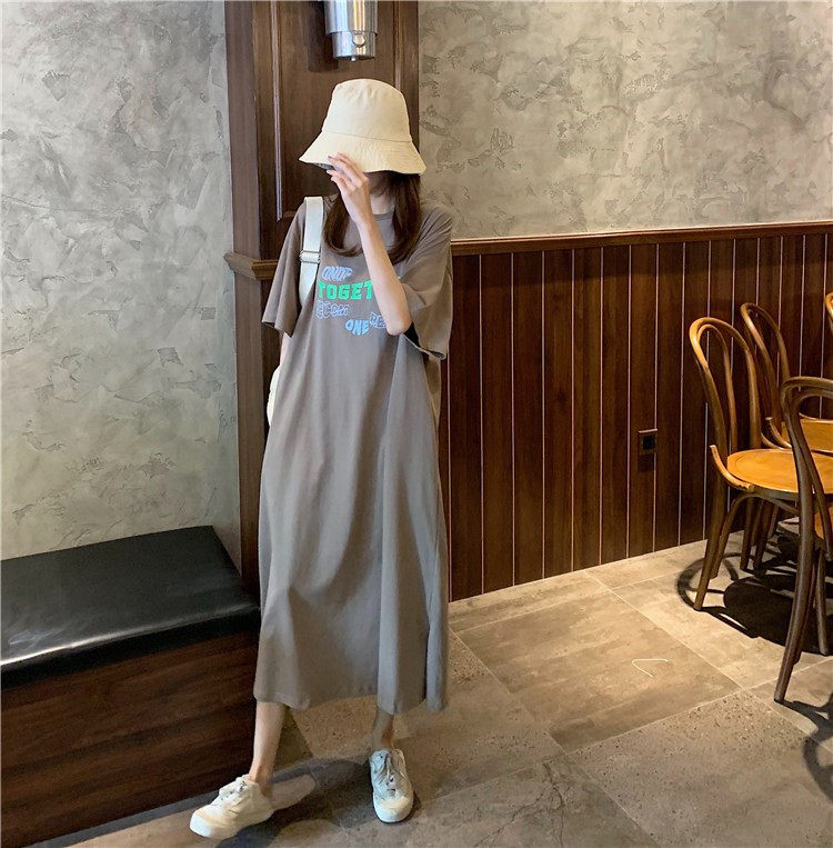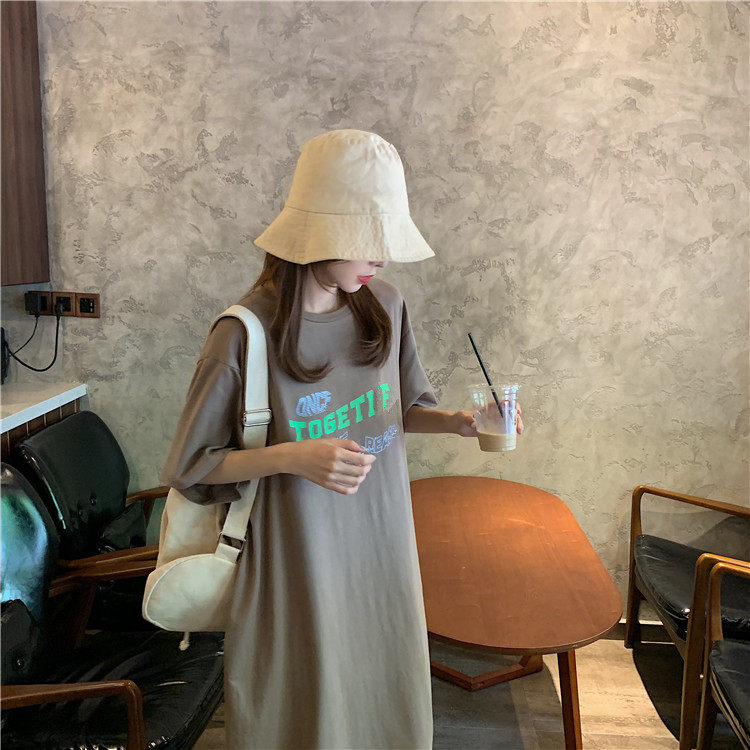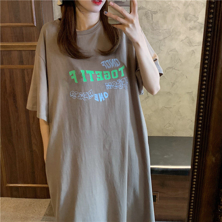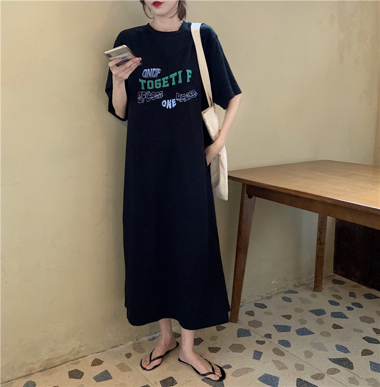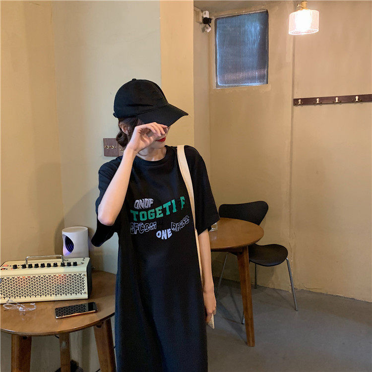 Летняя футболка, сверхдлинная длинная юбка для отдыха, оверсайз, свободный прямой крой