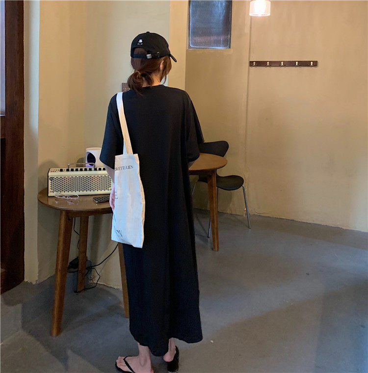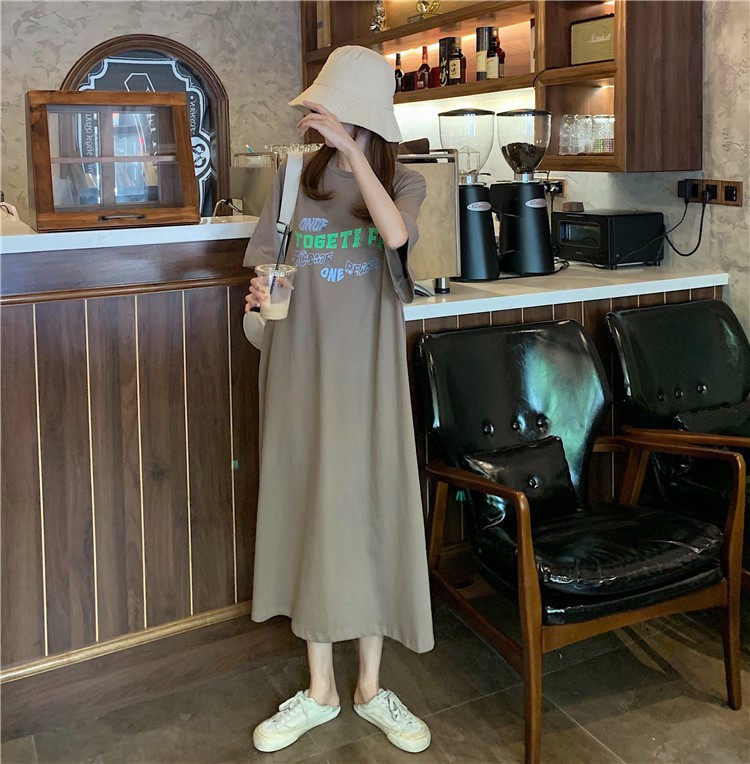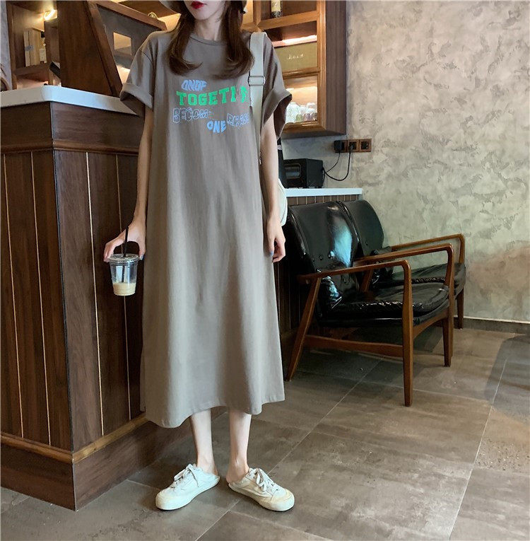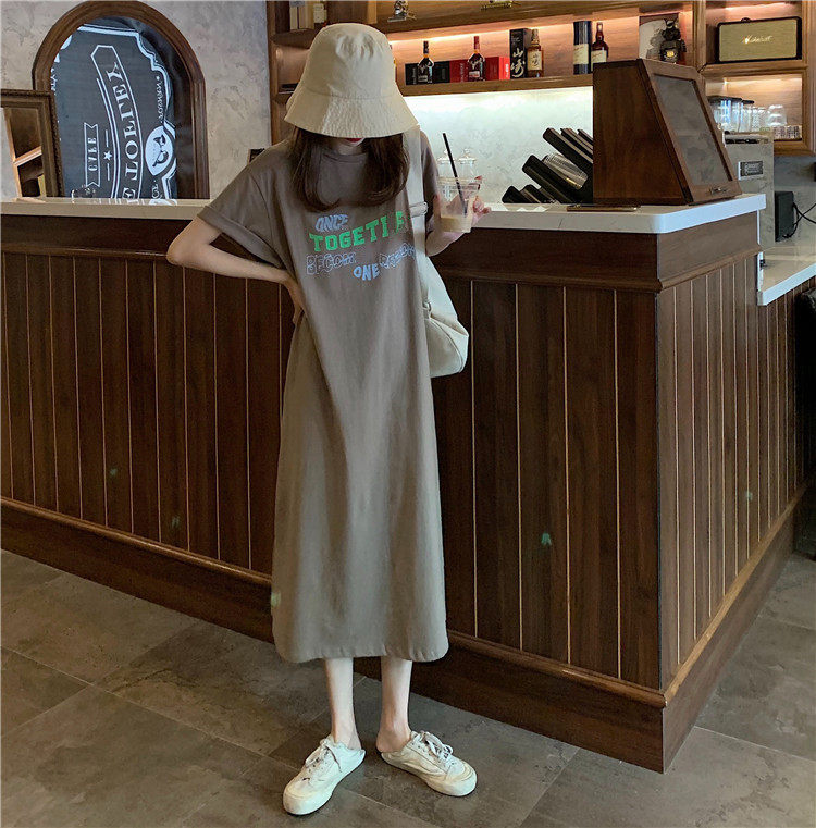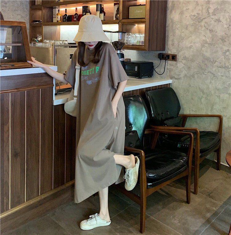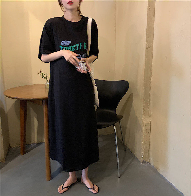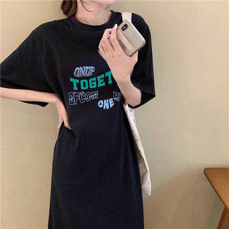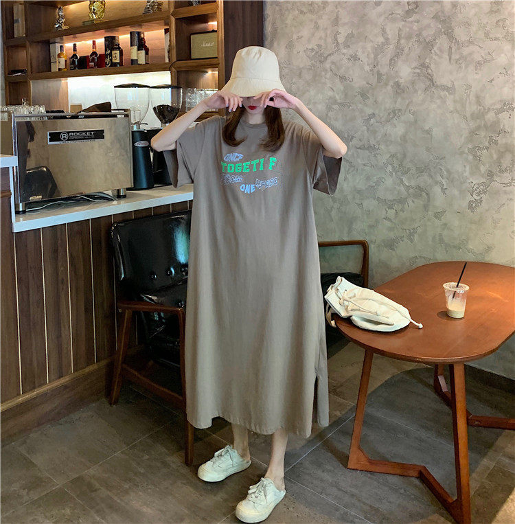 Летняя футболка, сверхдлинная длинная юбка для отдыха, оверсайз, свободный прямой крой