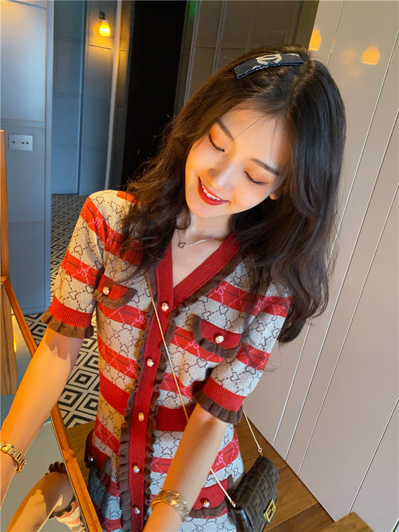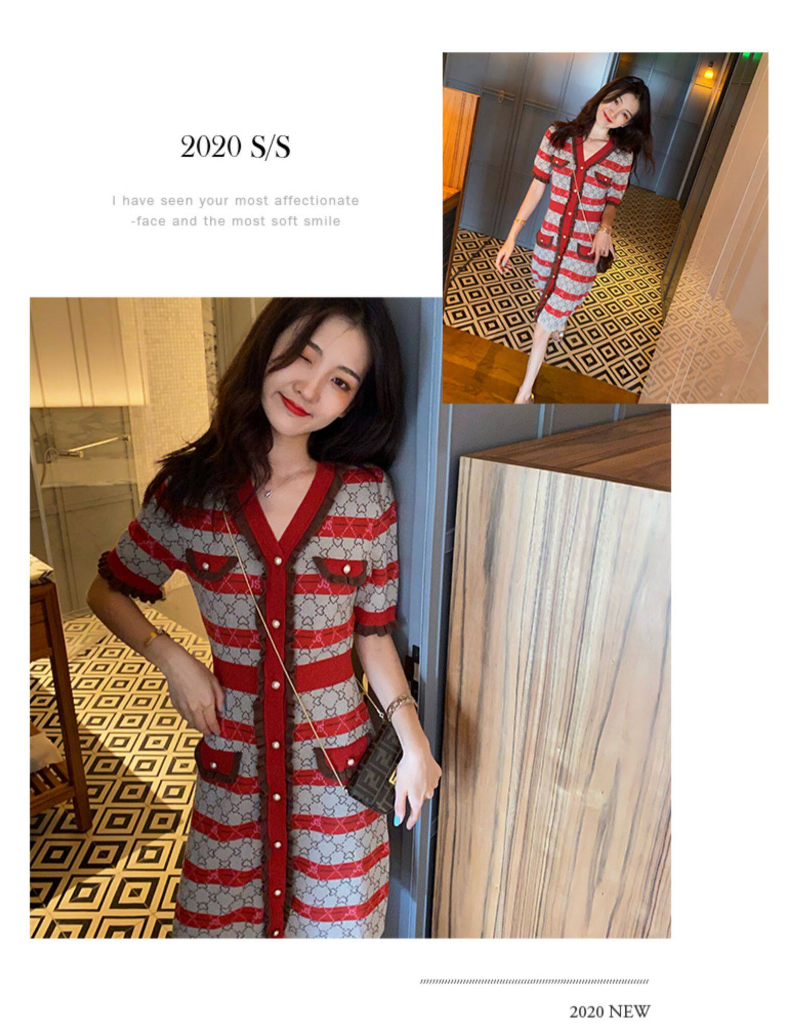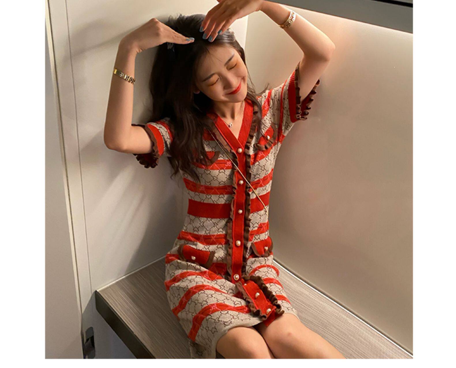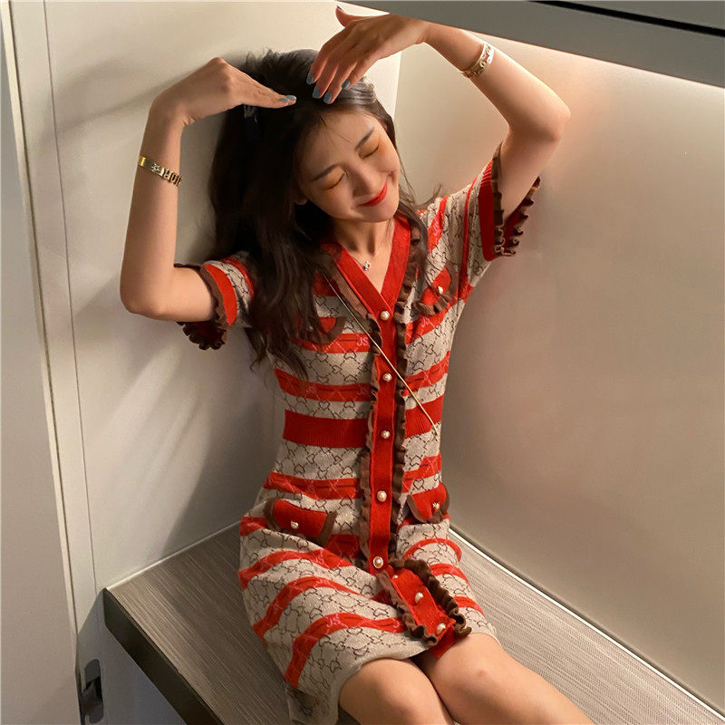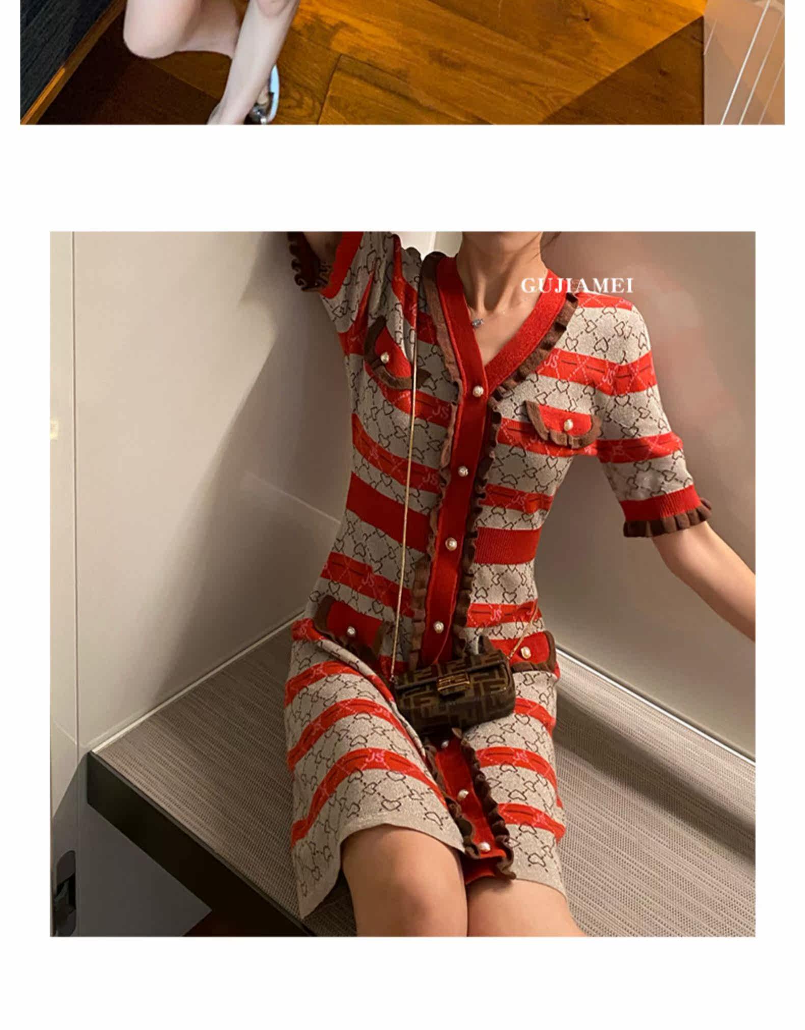 古加美 Приталенное трикотажное ретро трикотажное платье, юбка, по фигуре, французский ретро стиль, коллекция 2021