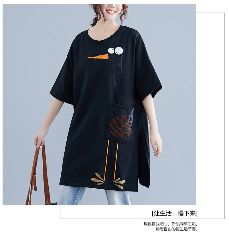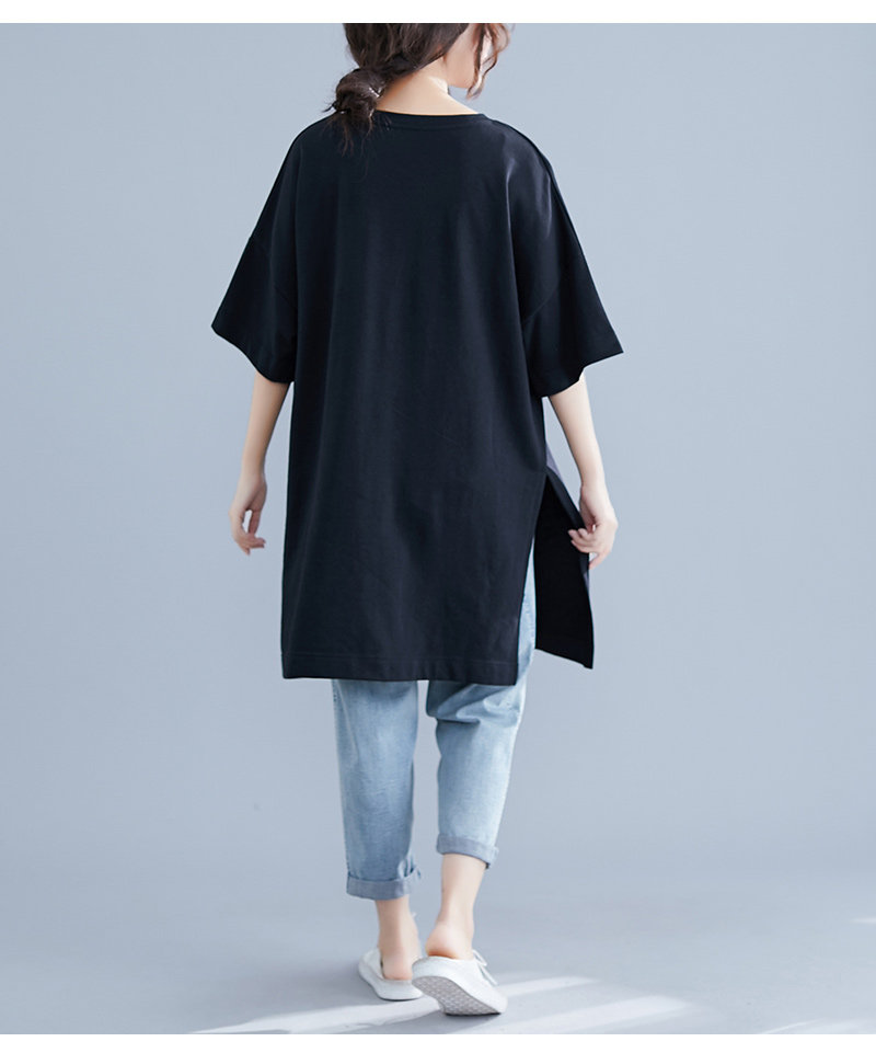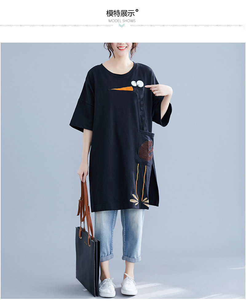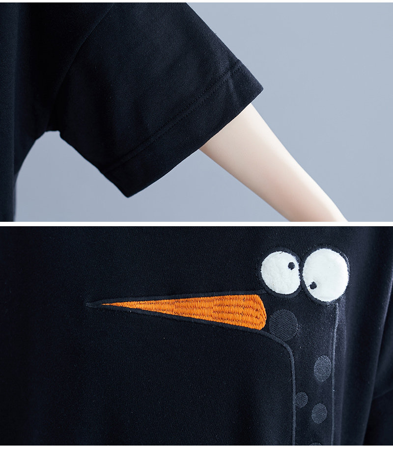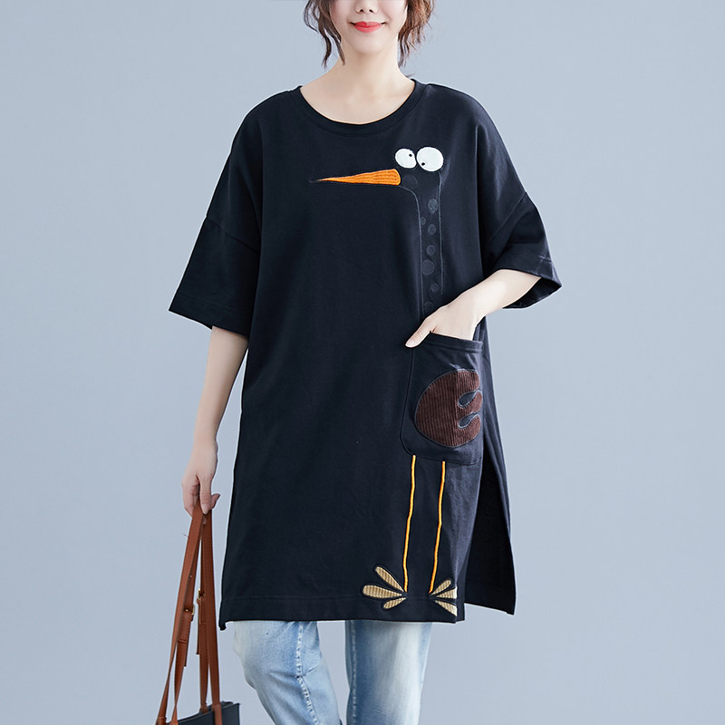 Летнее длинное платье-футболка, юбка, большой размер, короткий рукав, в корейском стиле, средней длины, по фигуре