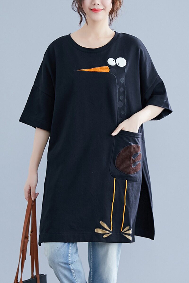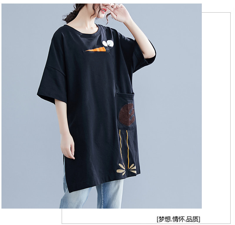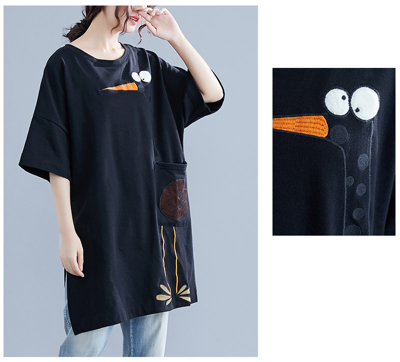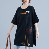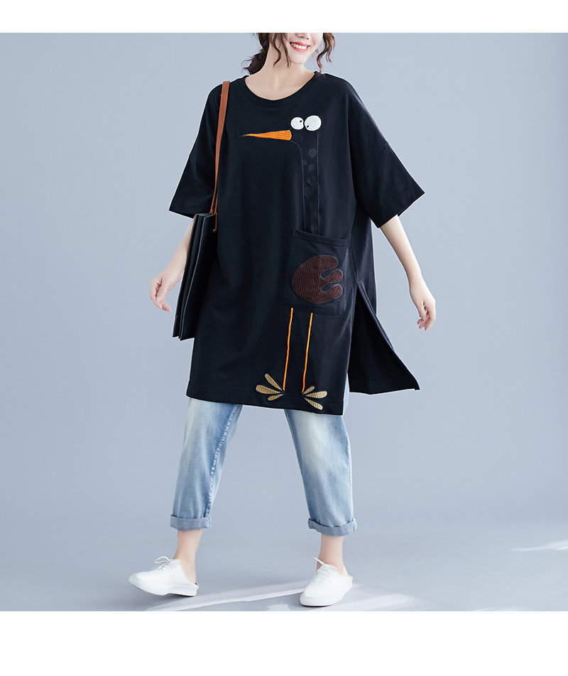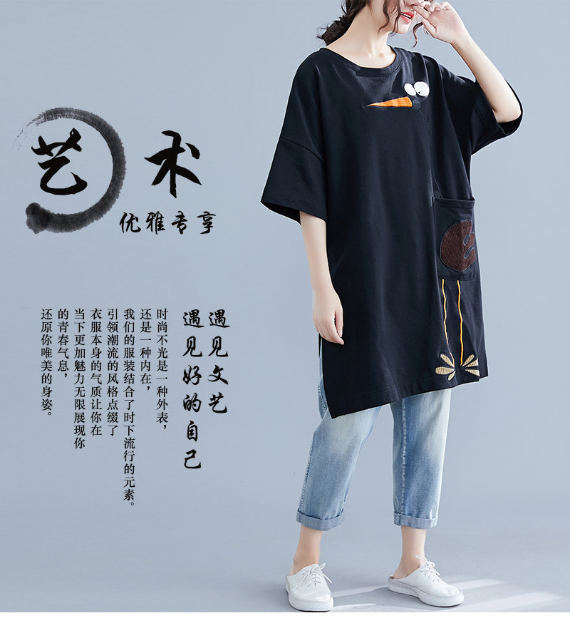 Летнее длинное платье-футболка, юбка, большой размер, короткий рукав, в корейском стиле, средней длины, по фигуре