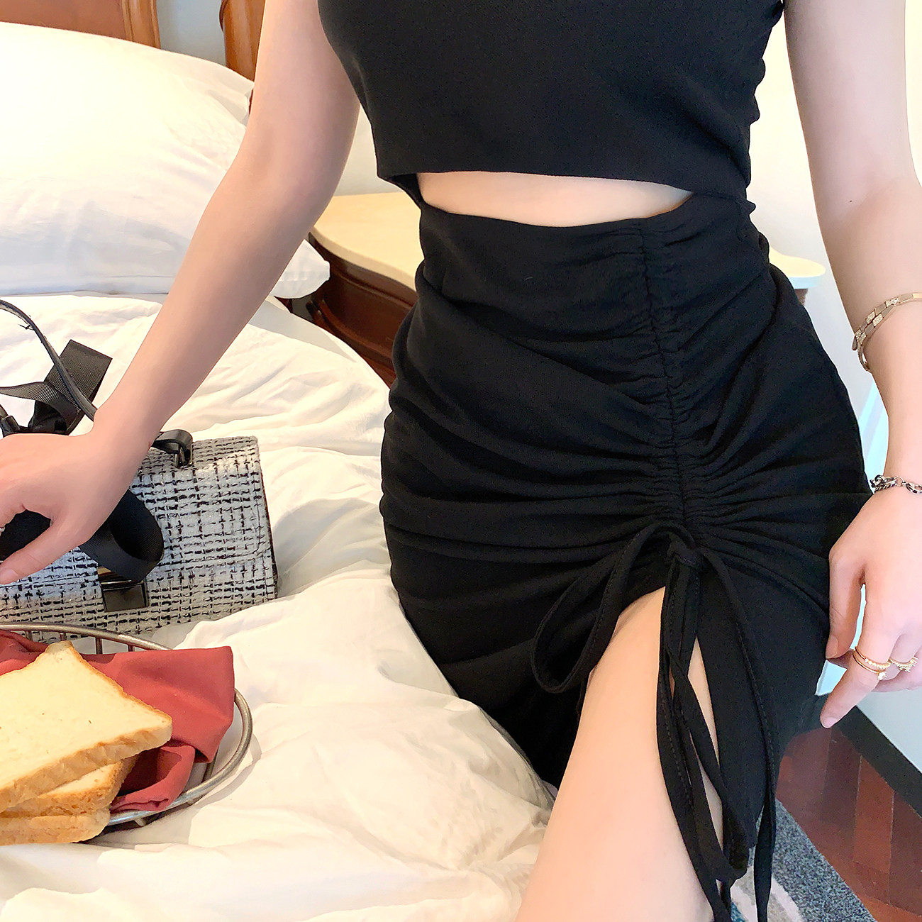 Летний сексуальный топ без лямок, платье, на шнурках