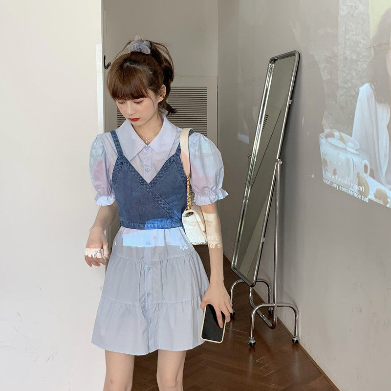 Осенний ретро комплект, джинсовая юбка, платье, 2022