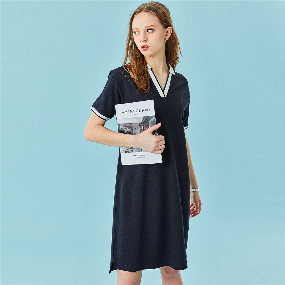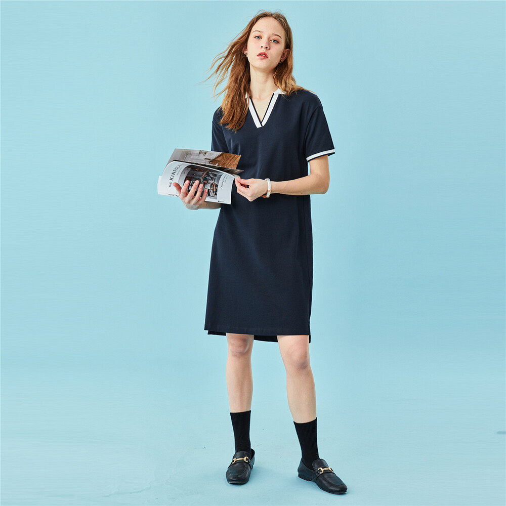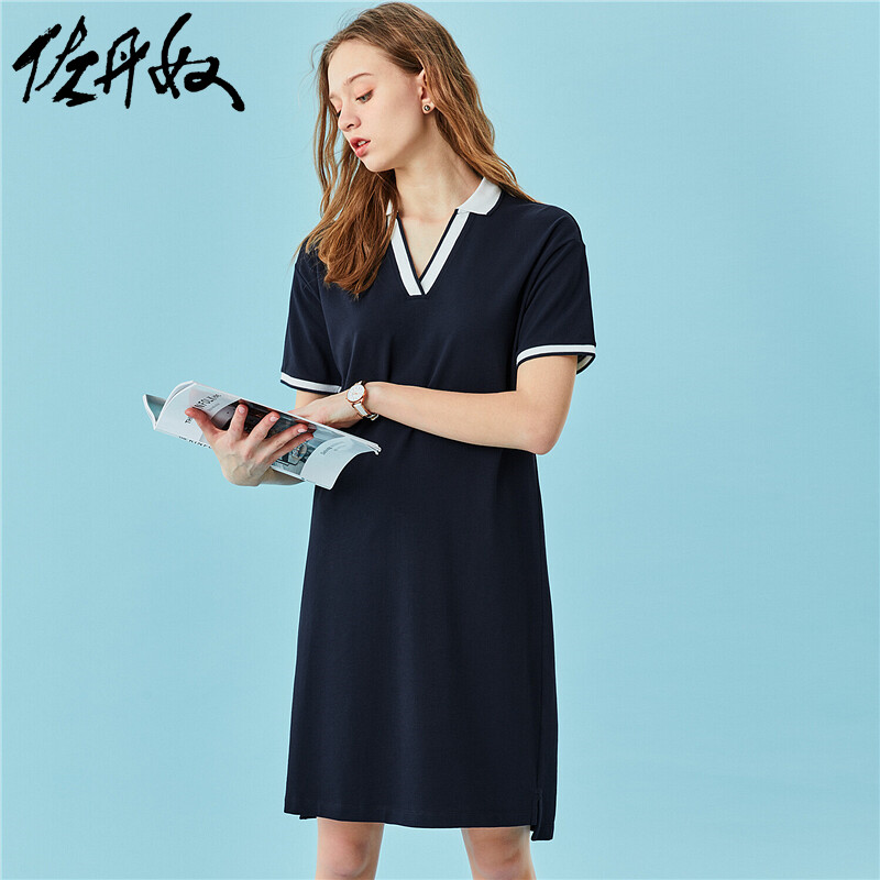 佐丹奴 Эластичная юбка, платье, короткий рукав, V-образный вырез