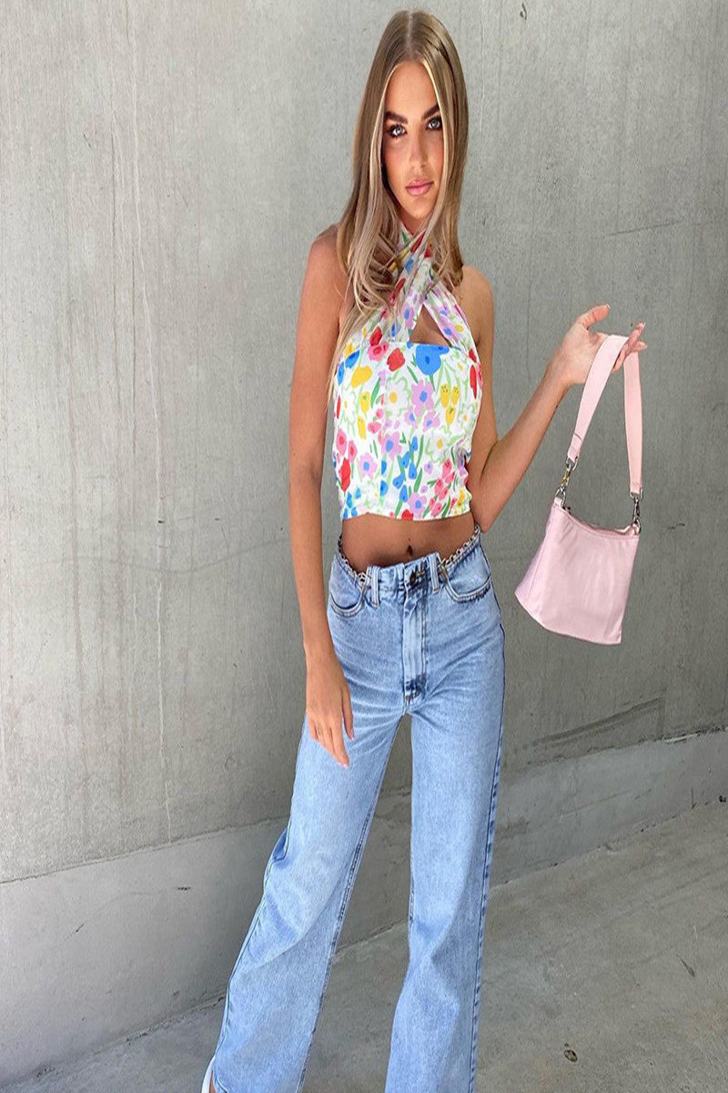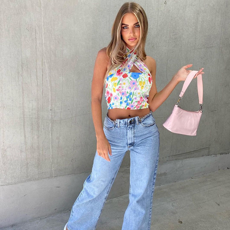 Bkffshop Новые силы модные каникулы Ветр висят шея маленькая цветочная печать короткая стройная жилет.