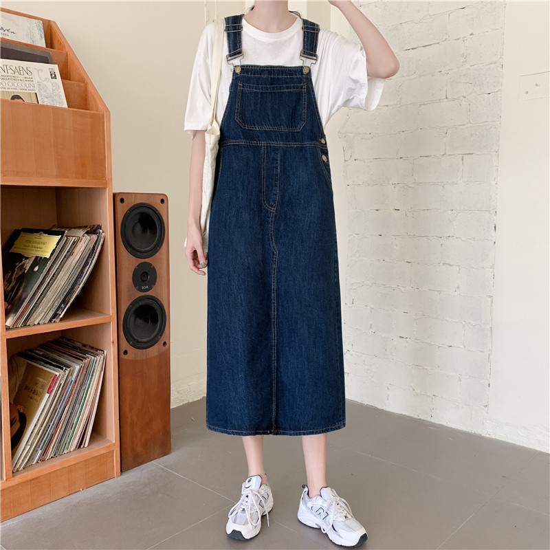 Осенний ретро джинсовый сарафан, юбка, длинное платье для школьников и студентов, 2020, большой размер, свободный крой, средней длины