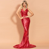 Сексуальное вечернее платье без рукавов, V-образный вырез