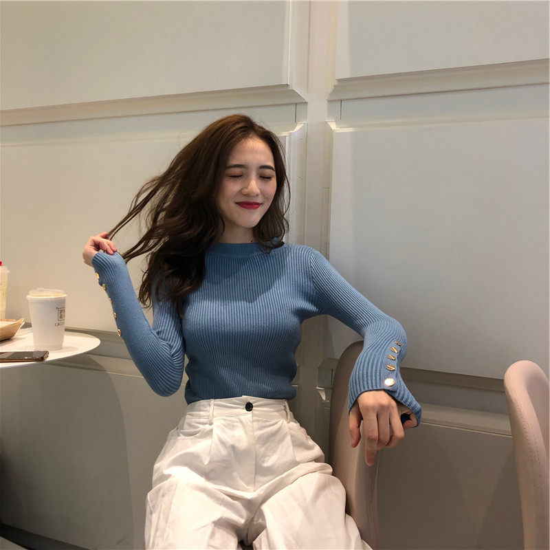 Осенний приятный телу трикотажный удерживающий тепло свитер, футболка, популярно в интернете, в обтяжку