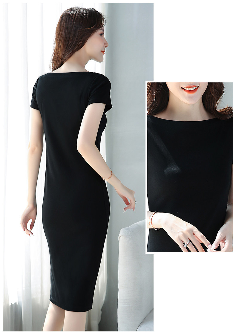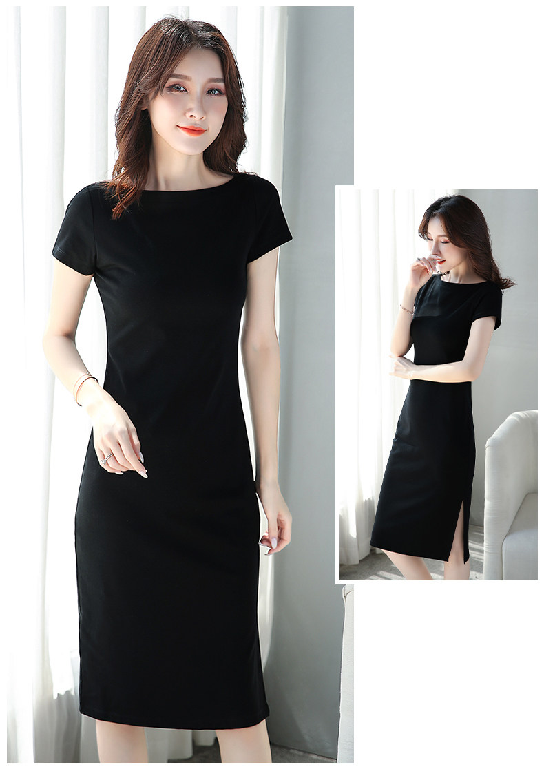 Черное платье, длинная приталенная базовая юбка, короткий рукав