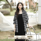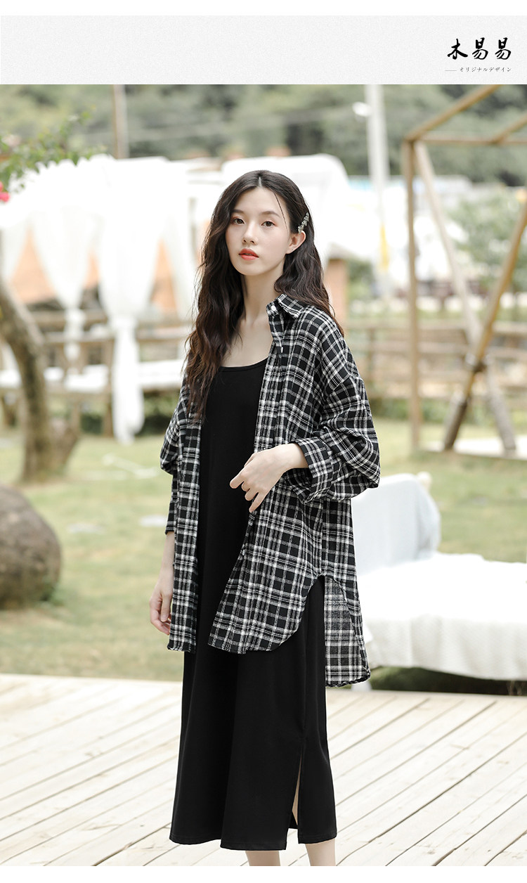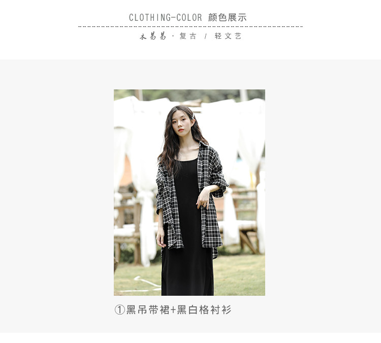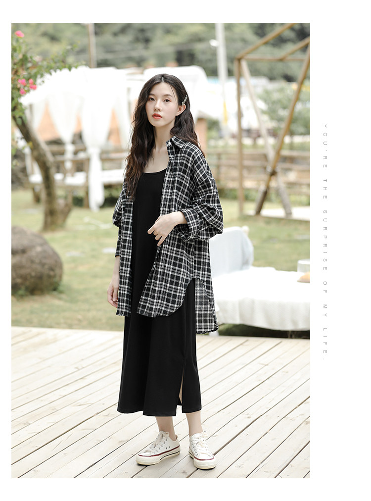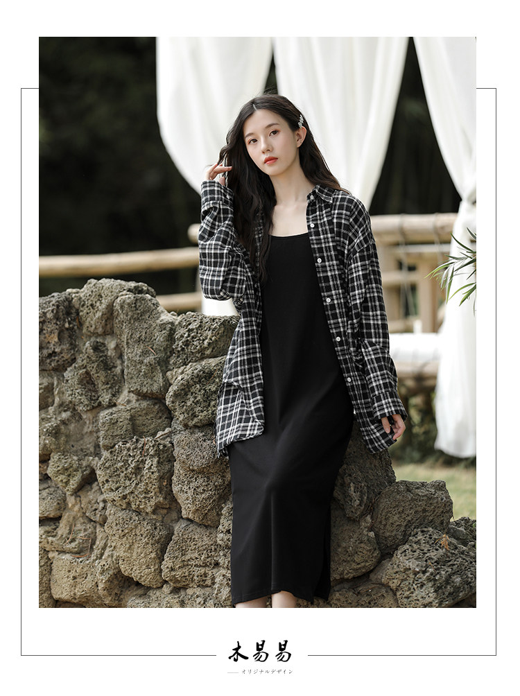 | Цвет: | Черно -белая рубашка+юбка с черной подвеской Двух -костюм, Черное платье-комбинация, Одиночная черно -белая клетчатая рубашка |