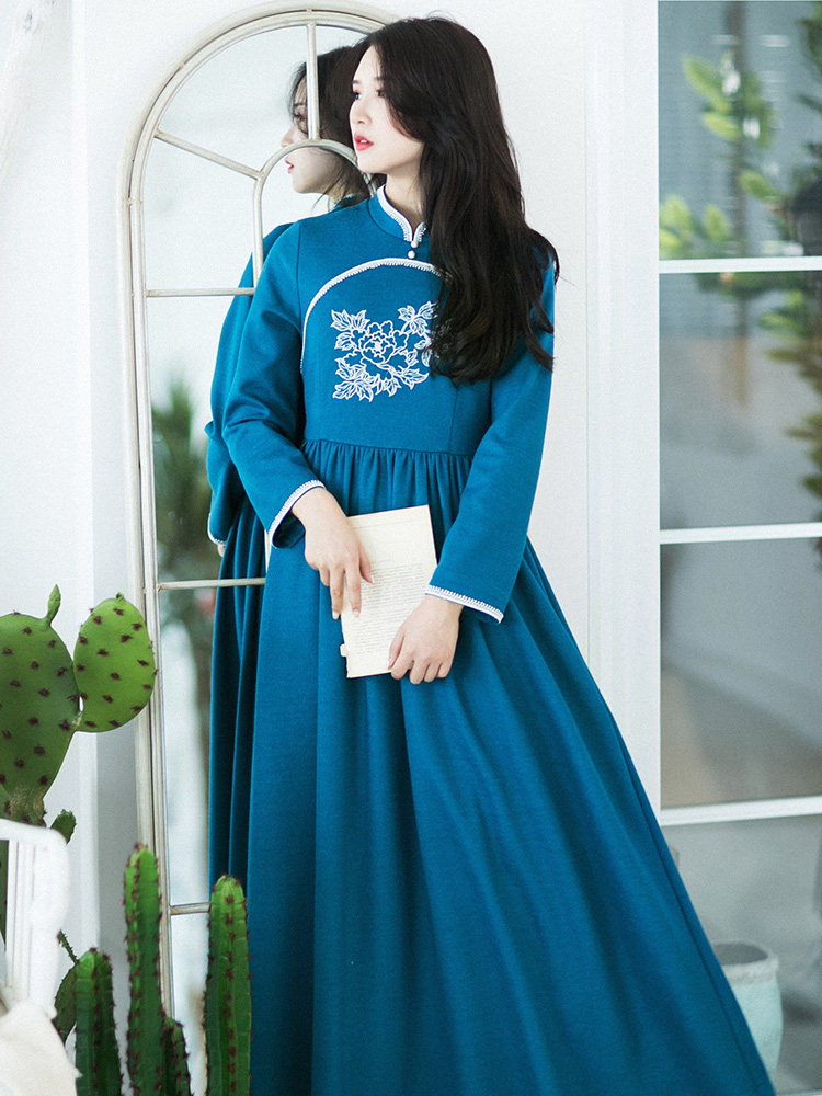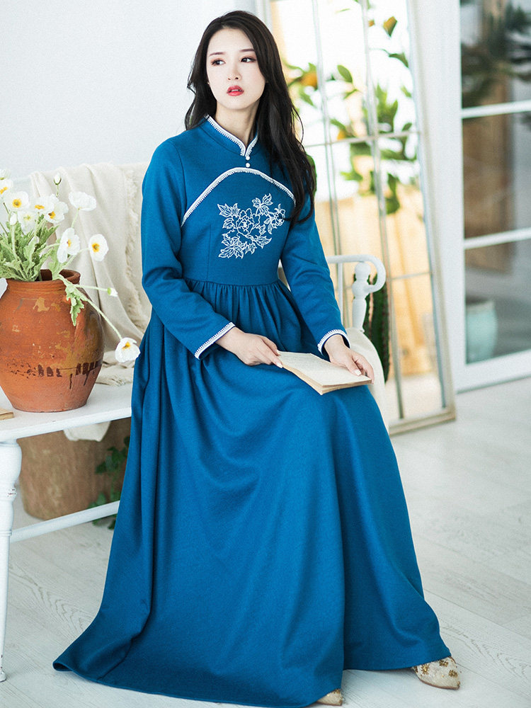 Весеннее ципао, шерстяная осенняя длинная юбка, лонгслив, (в наличии на складе)