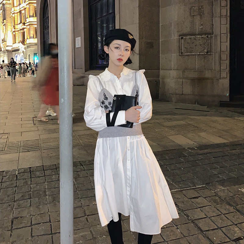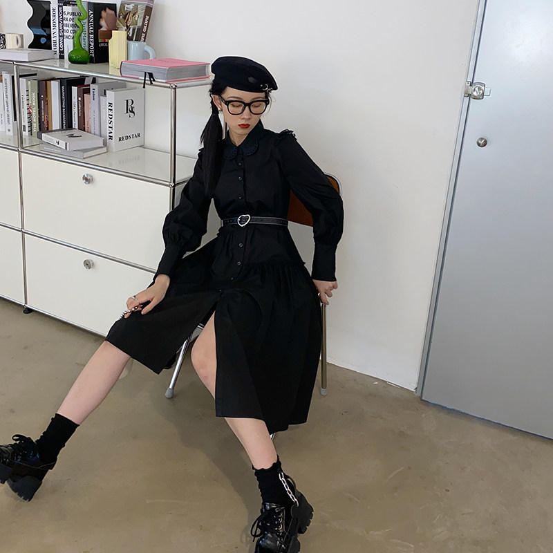 Ретро рубашка, асимметричное небольшое дизайнерское осеннее платье, французский стиль, 2020