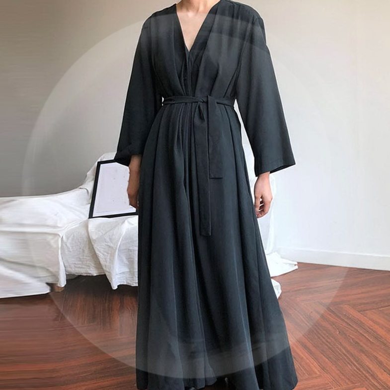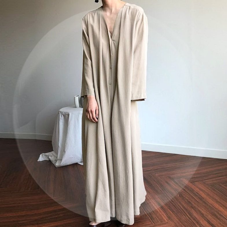 Длинная рубашка повседневная хлопковая льняная салата