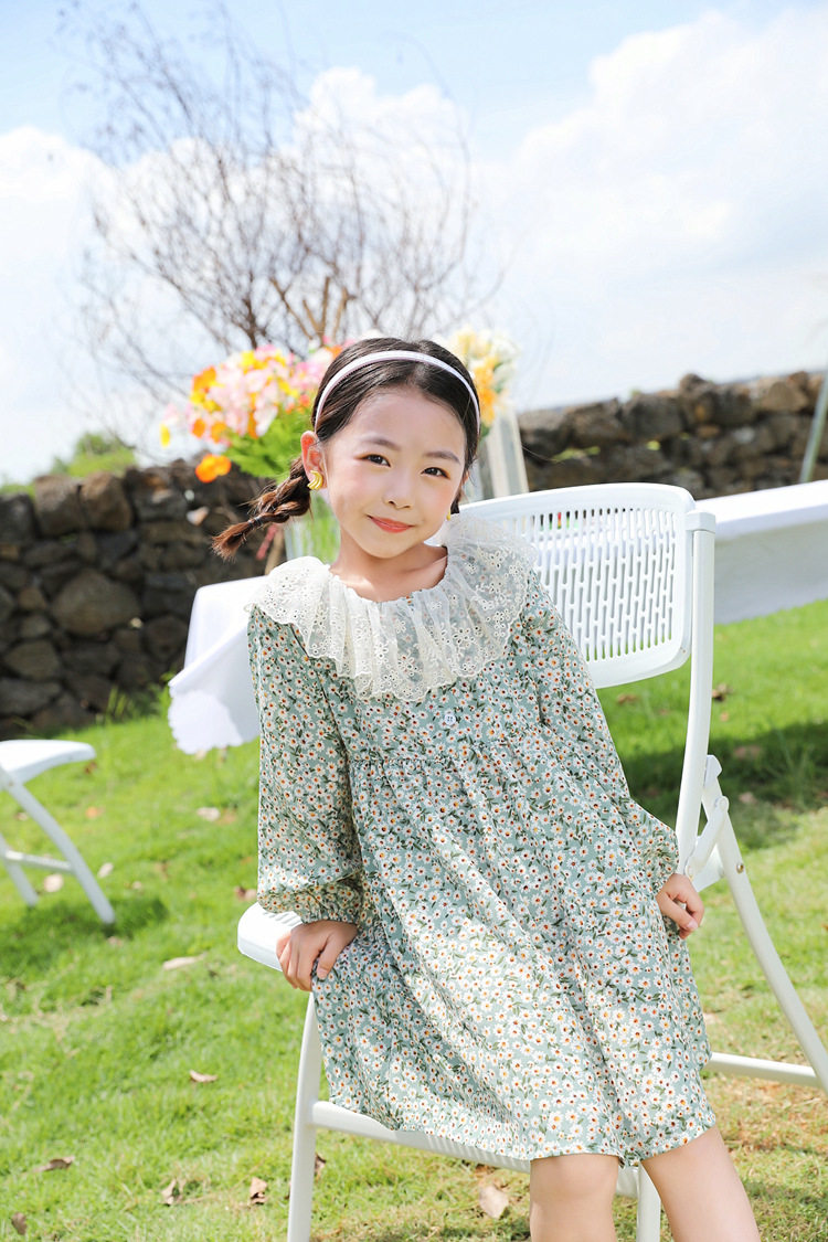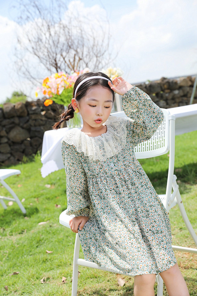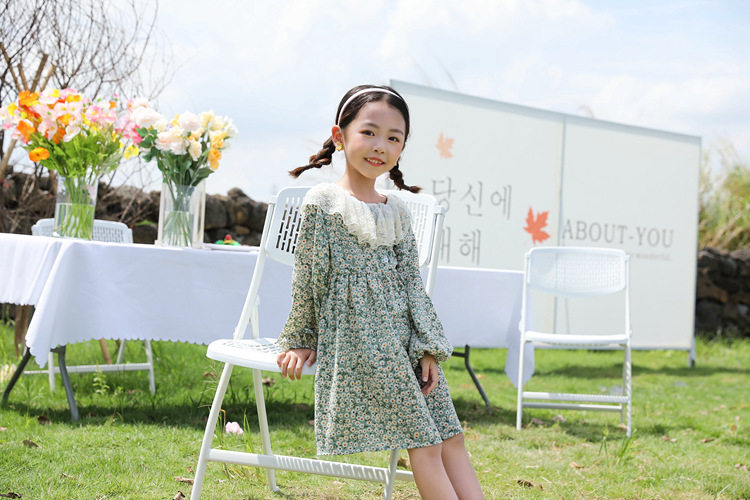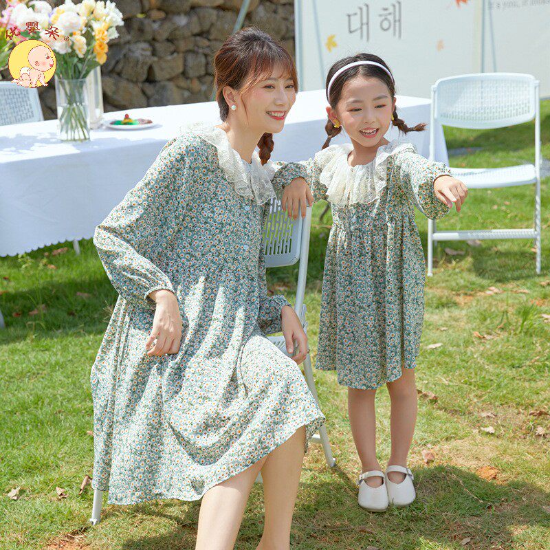 Осеннее платье, юбка, шифоновый наряд маленькой принцессы для девочек, в цветочек, семейный стиль, в западном стиле, 7 лет