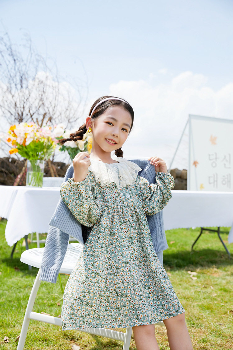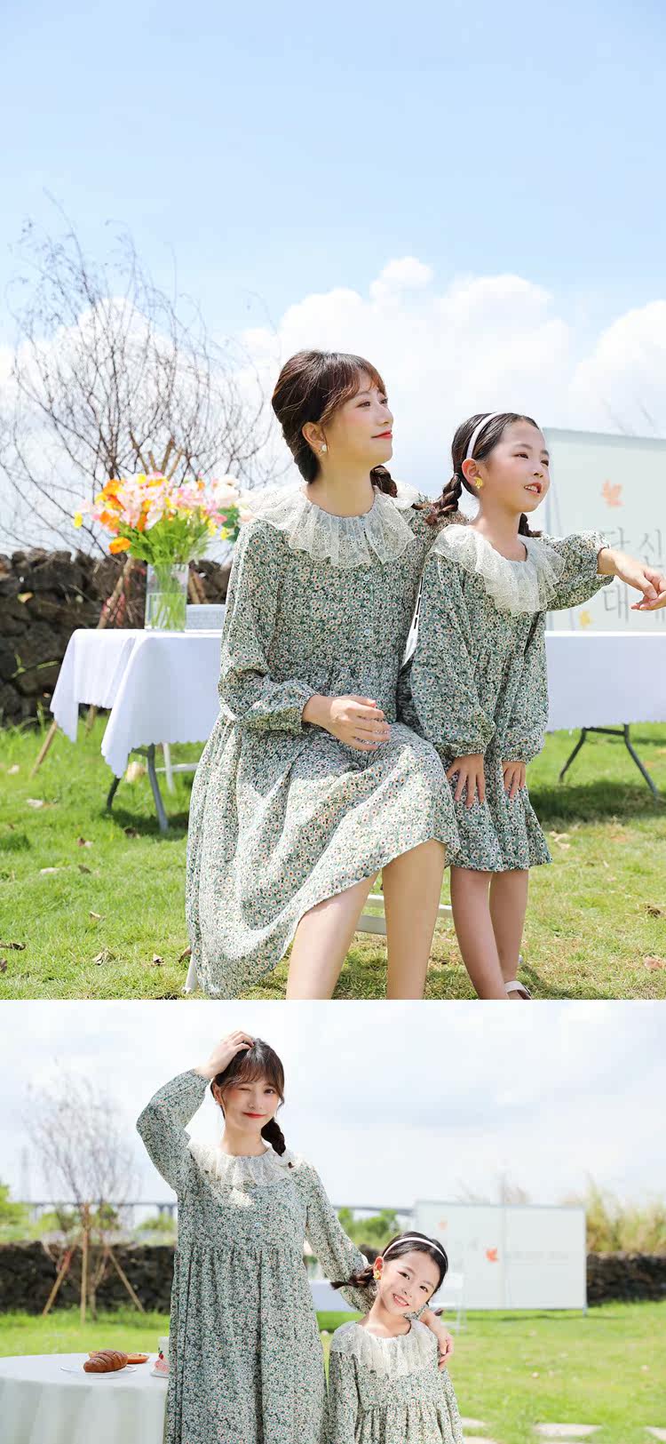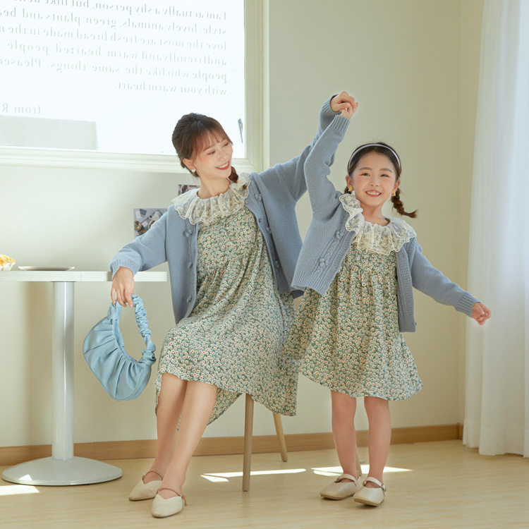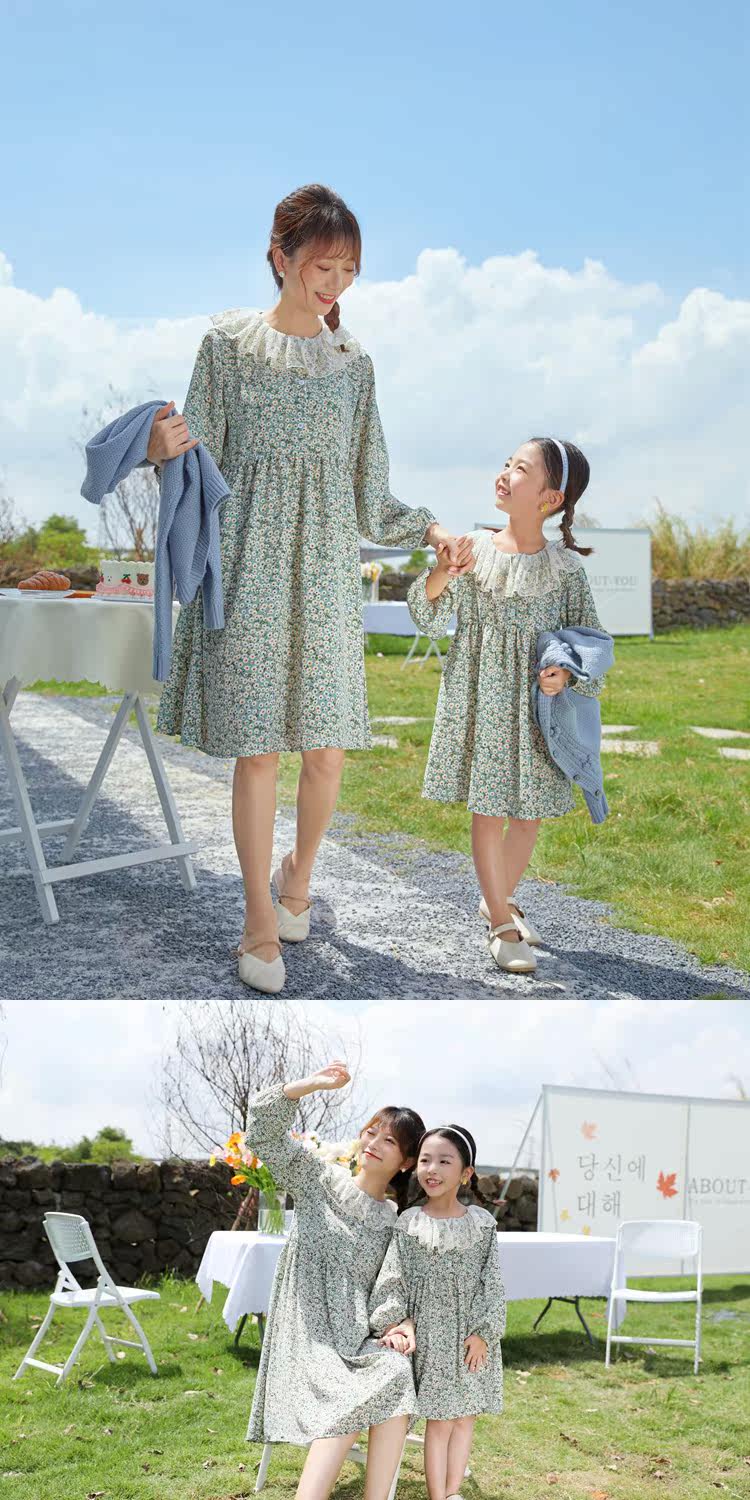 Осеннее платье, юбка, шифоновый наряд маленькой принцессы для девочек, в цветочек, семейный стиль, в западном стиле, 7 лет