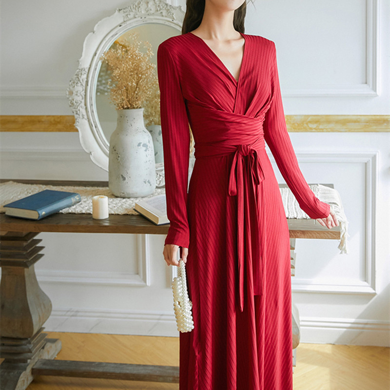 Весенняя трикотажная ретро юбка, приталенный корсет, платье, коллекция 2021