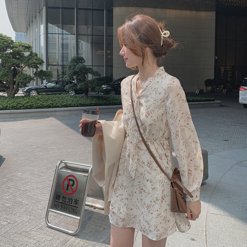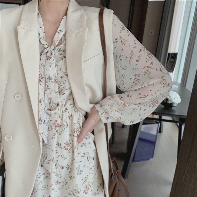 Весенний приталенный милый корсет, шифоновое платье, цветочный принт, в цветочек