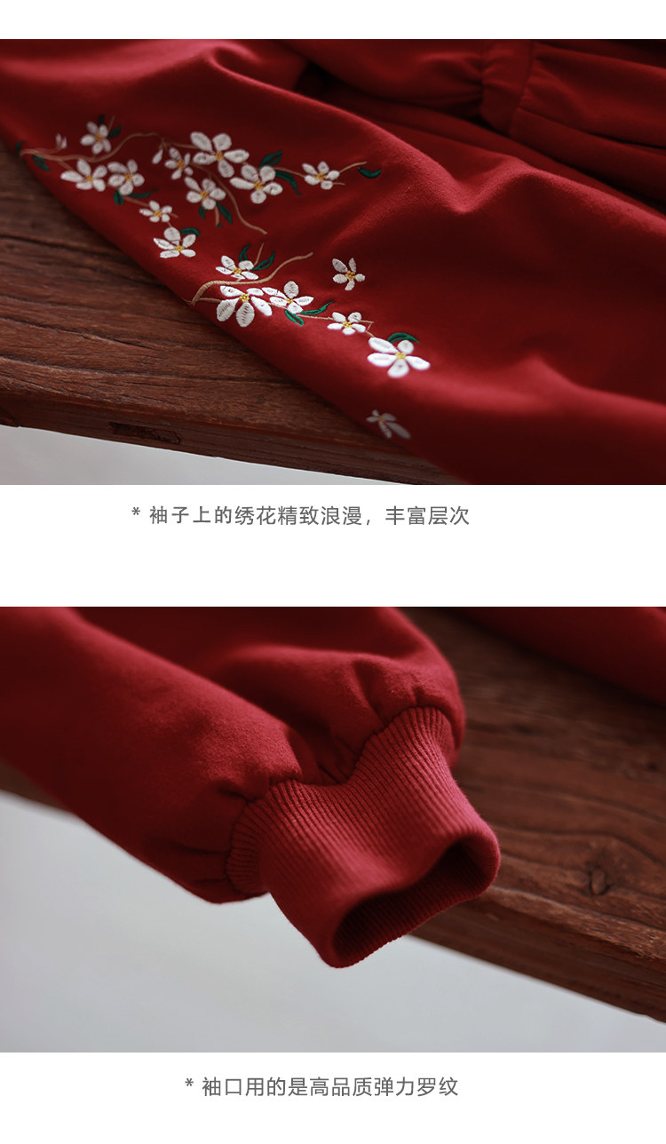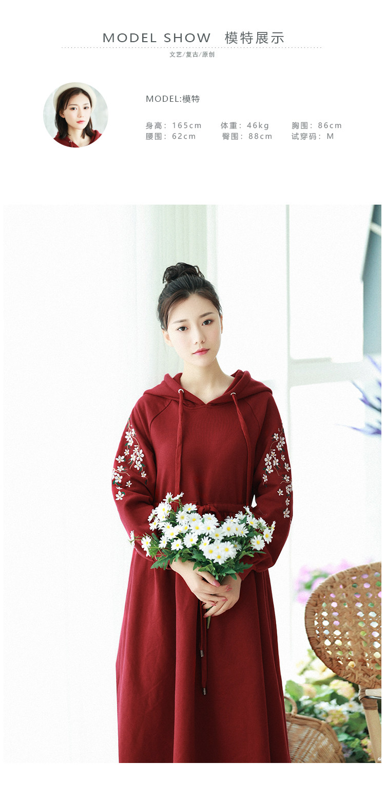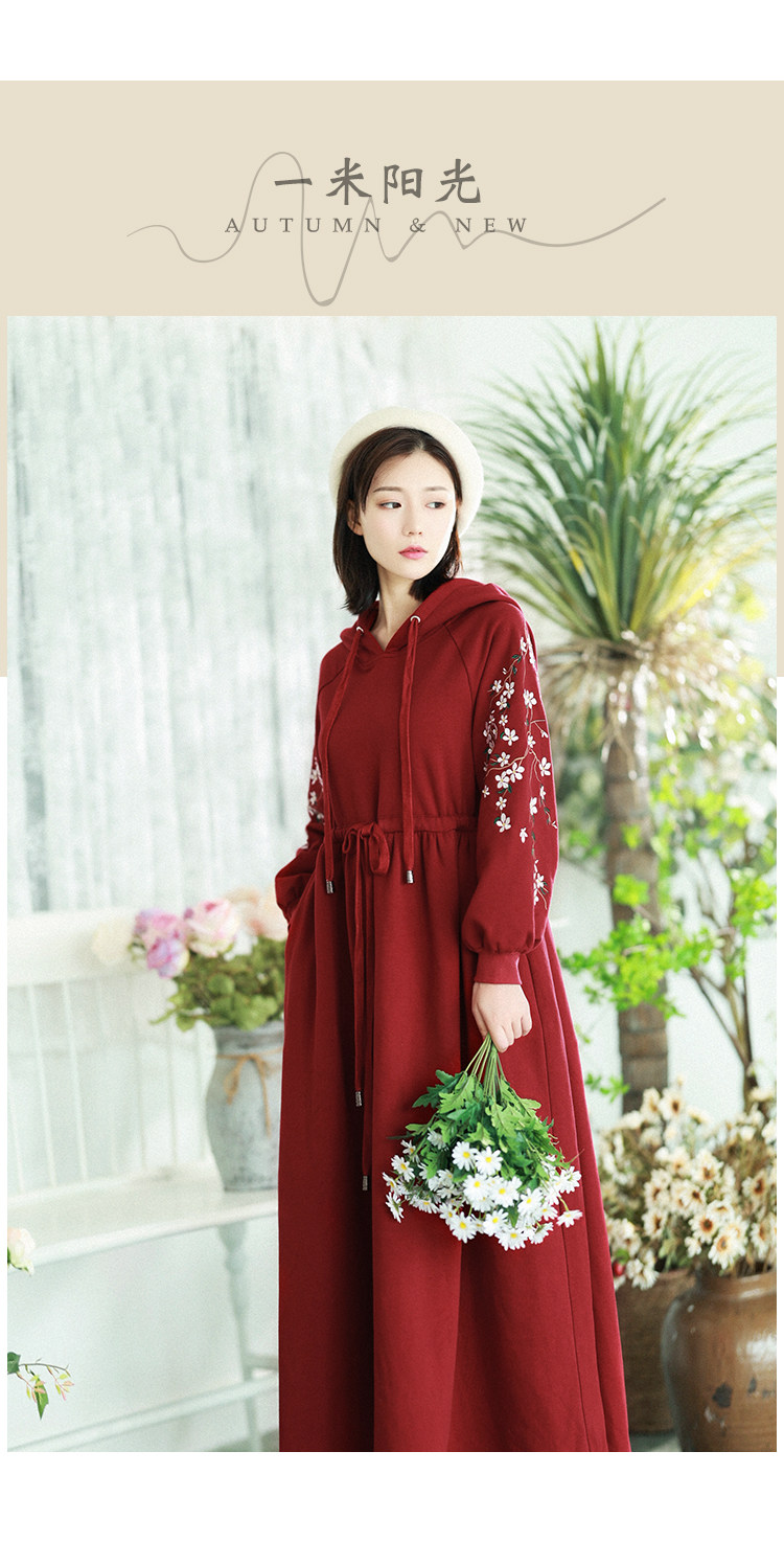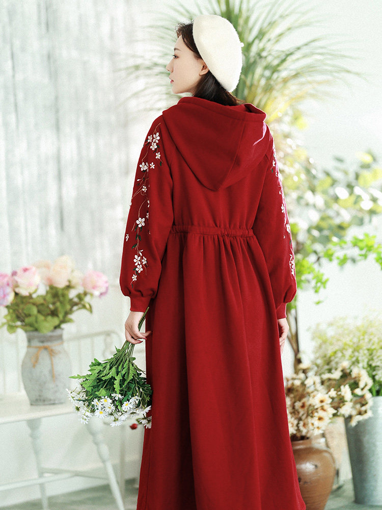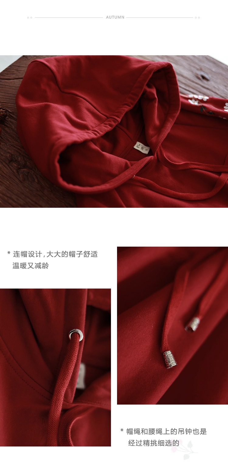 Осенняя красная толстовка, длинная юбка, утепленное платье, из хлопка и льна, 2021 года, оверсайз, в цветочек