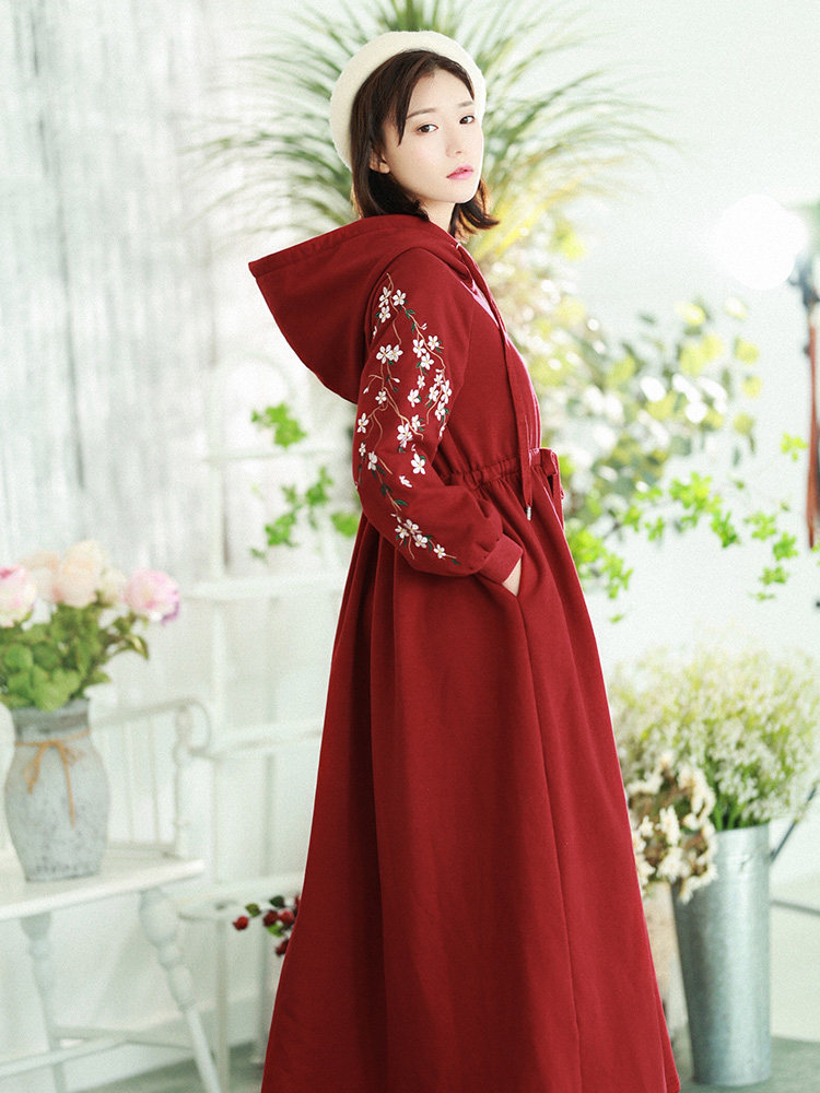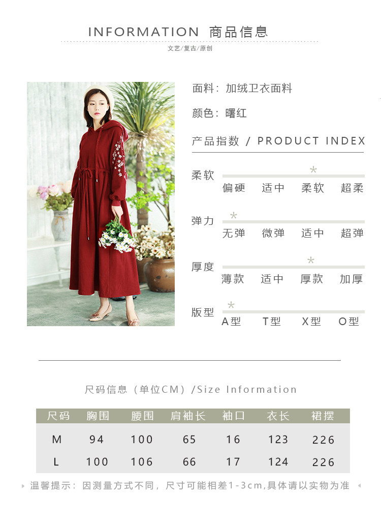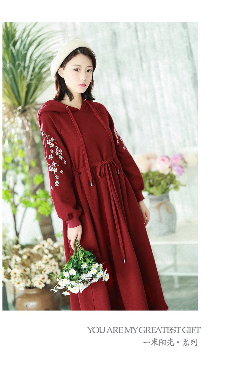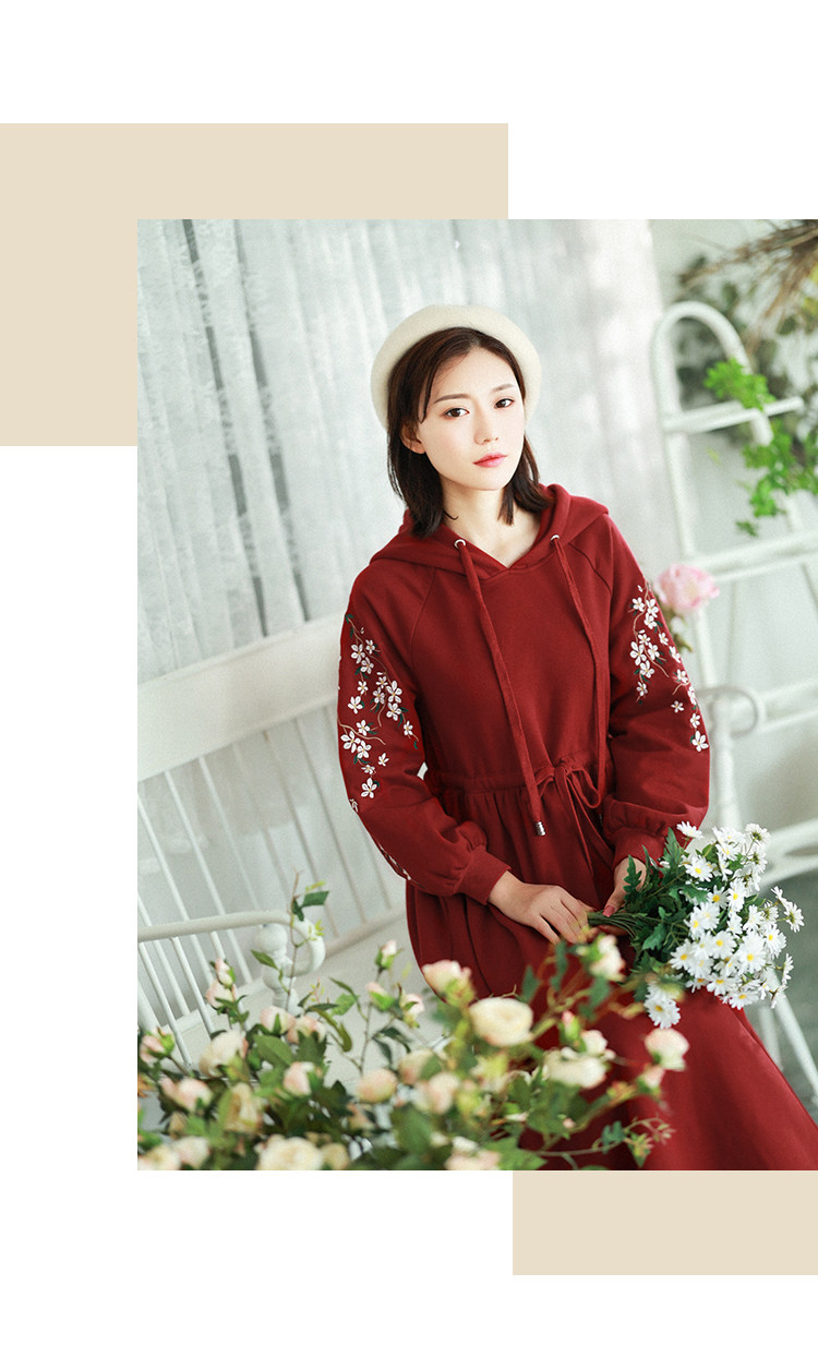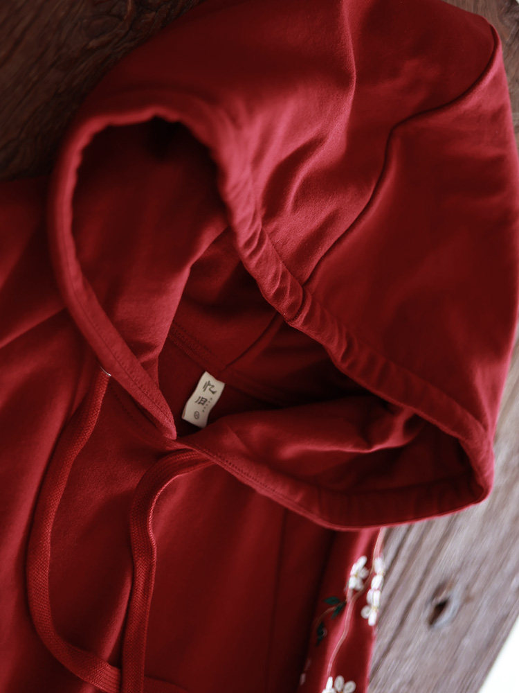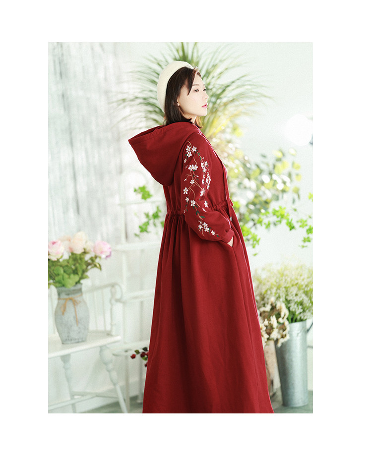 Осенняя красная толстовка, длинная юбка, утепленное платье, из хлопка и льна, 2021 года, оверсайз, в цветочек
