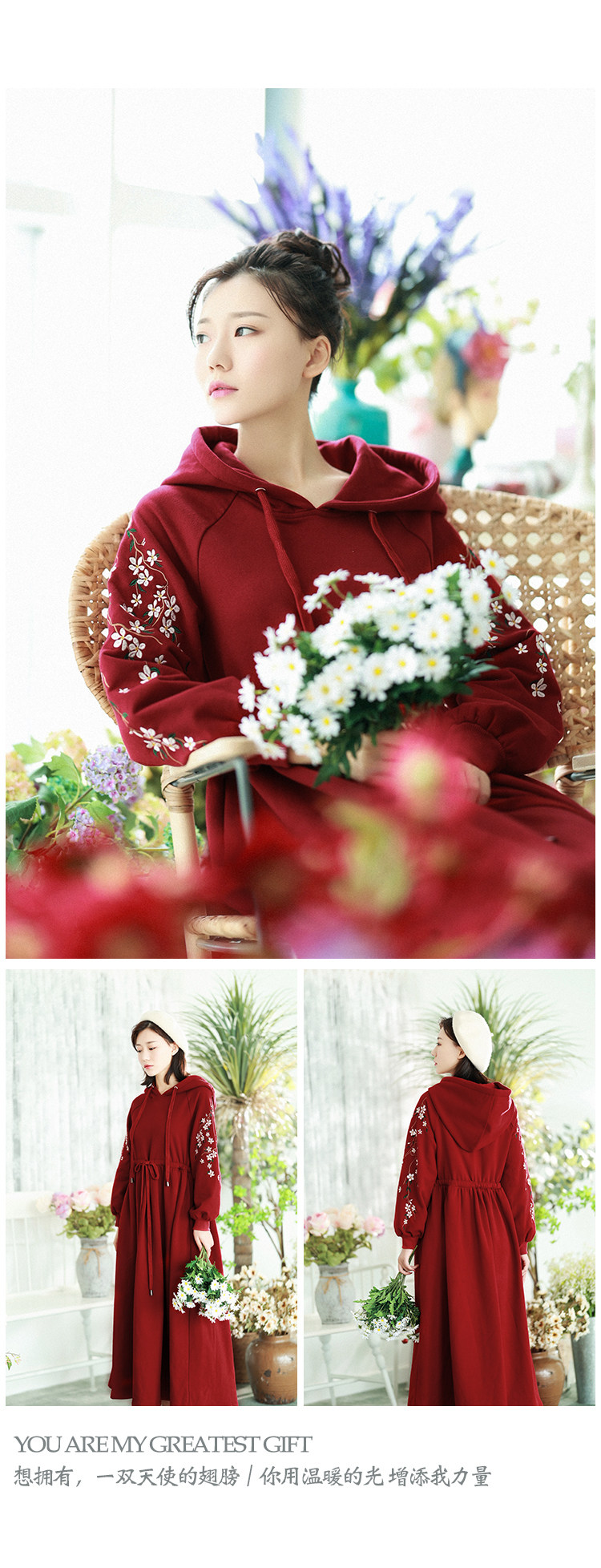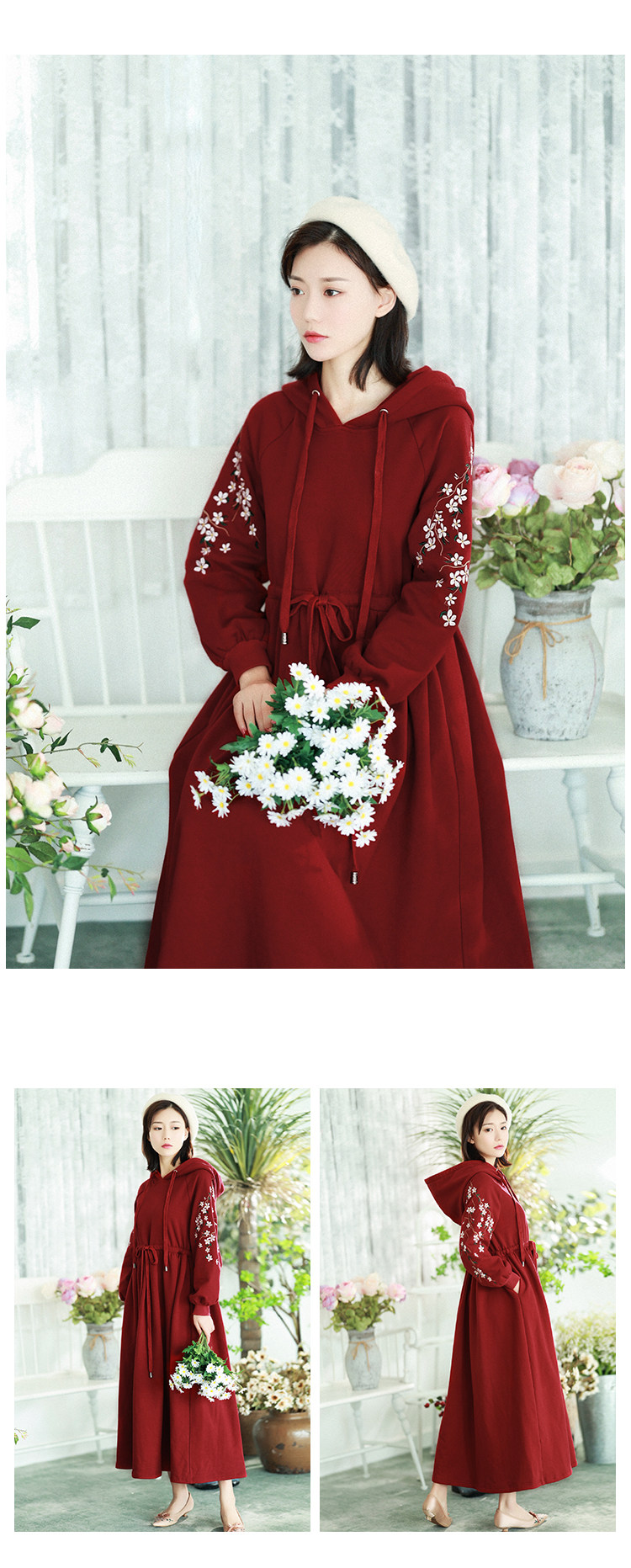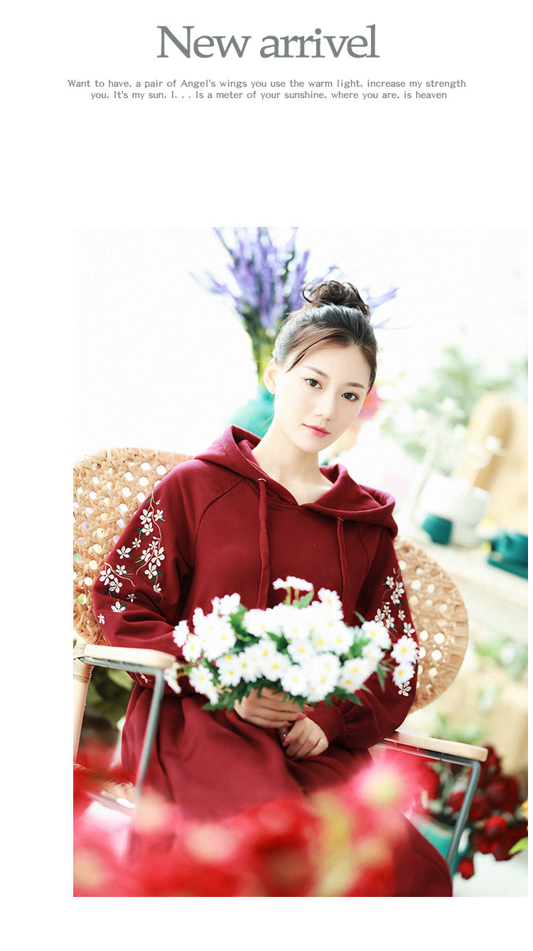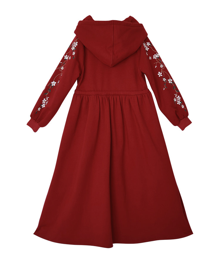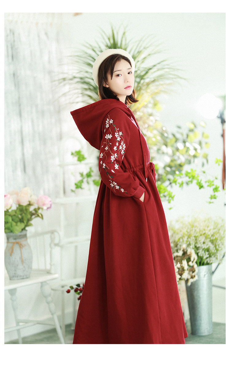 Осенняя красная толстовка, длинная юбка, утепленное платье, из хлопка и льна, 2021 года, оверсайз, в цветочек