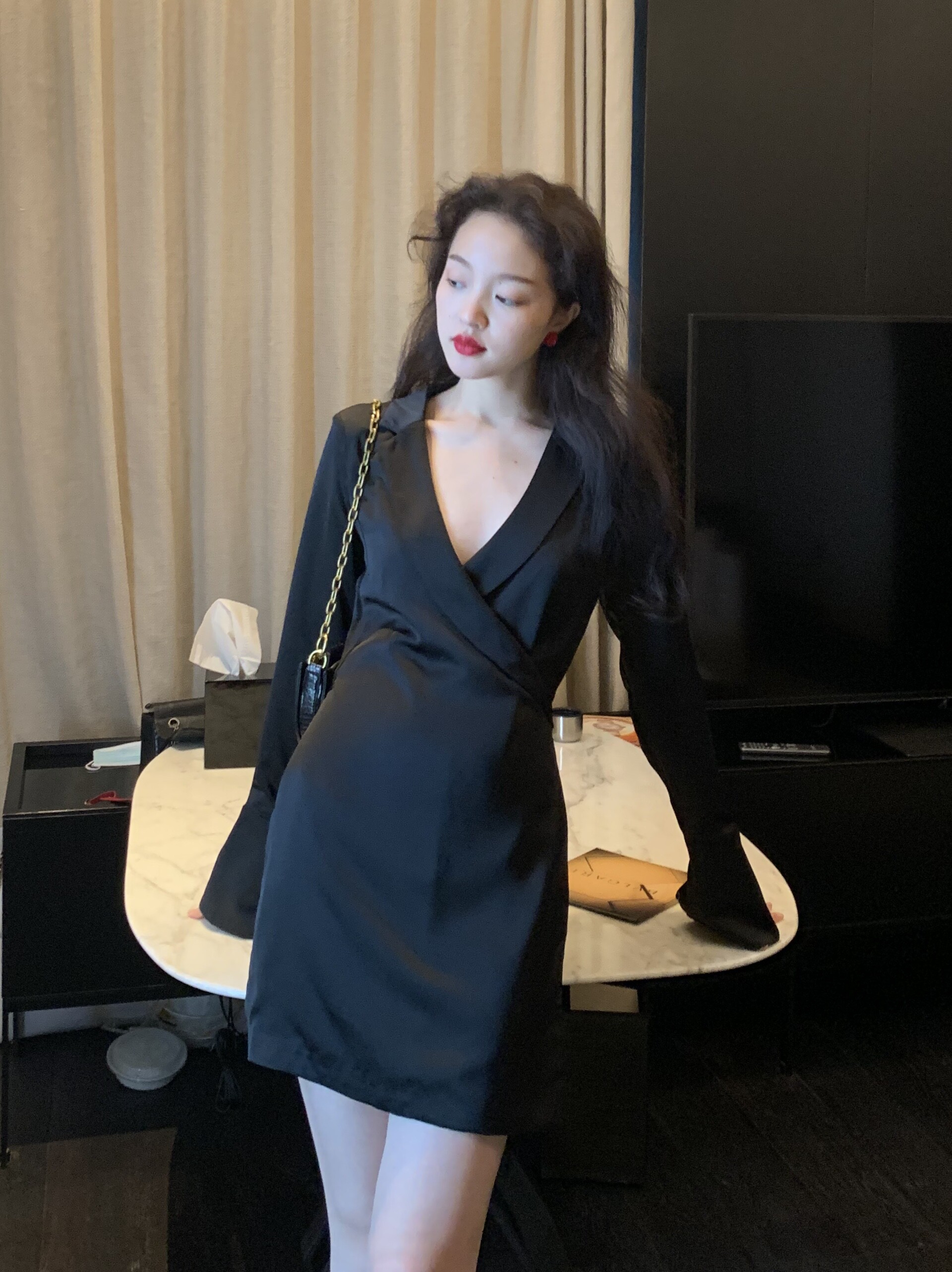 Ретро осеннее сексуальное винтажное платье, приталенный черный лонгслив, мини-юбка, французский стиль, 2020, V-образный вырез
