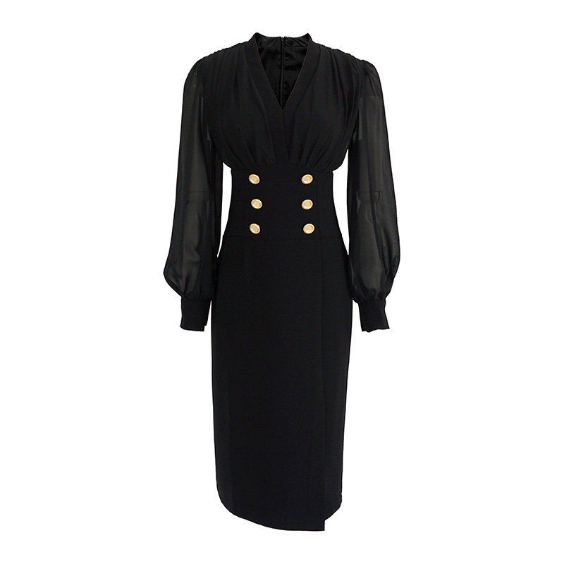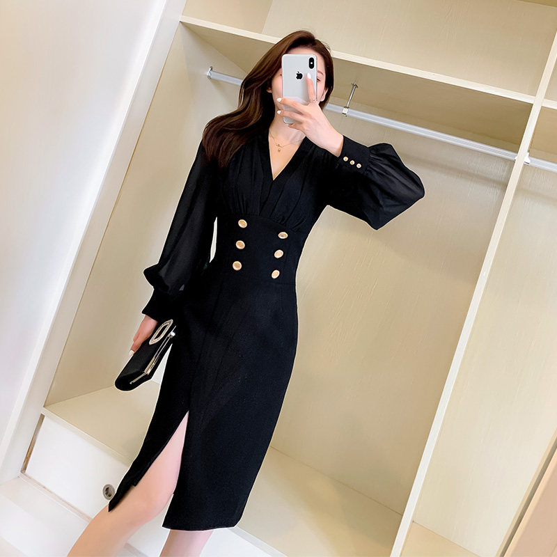 Осеннее платье, фонарь, французский стиль, V-образный вырез