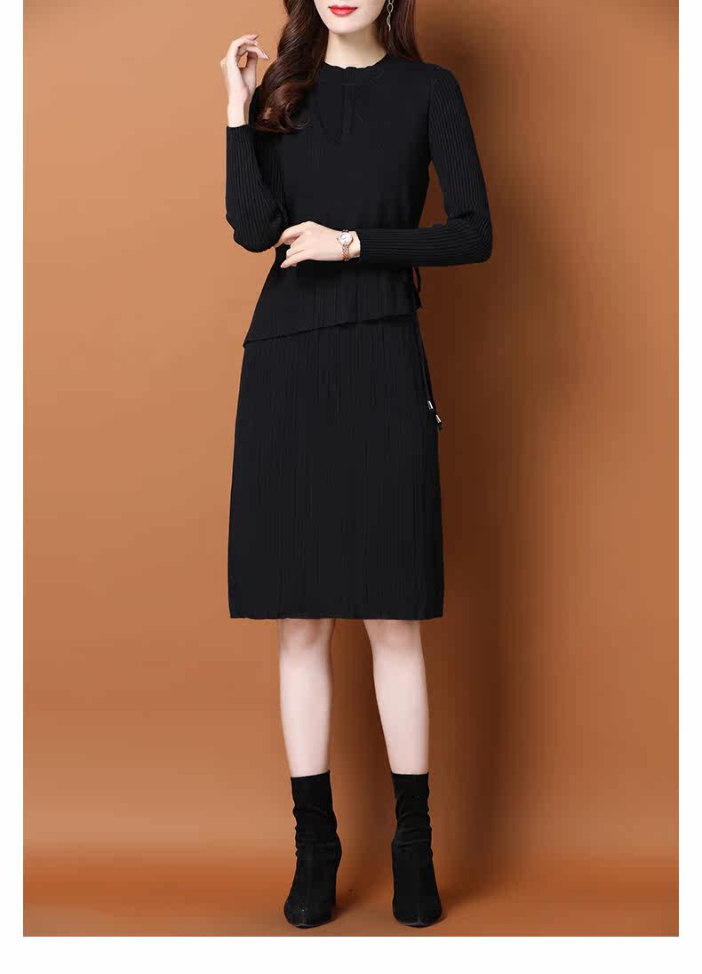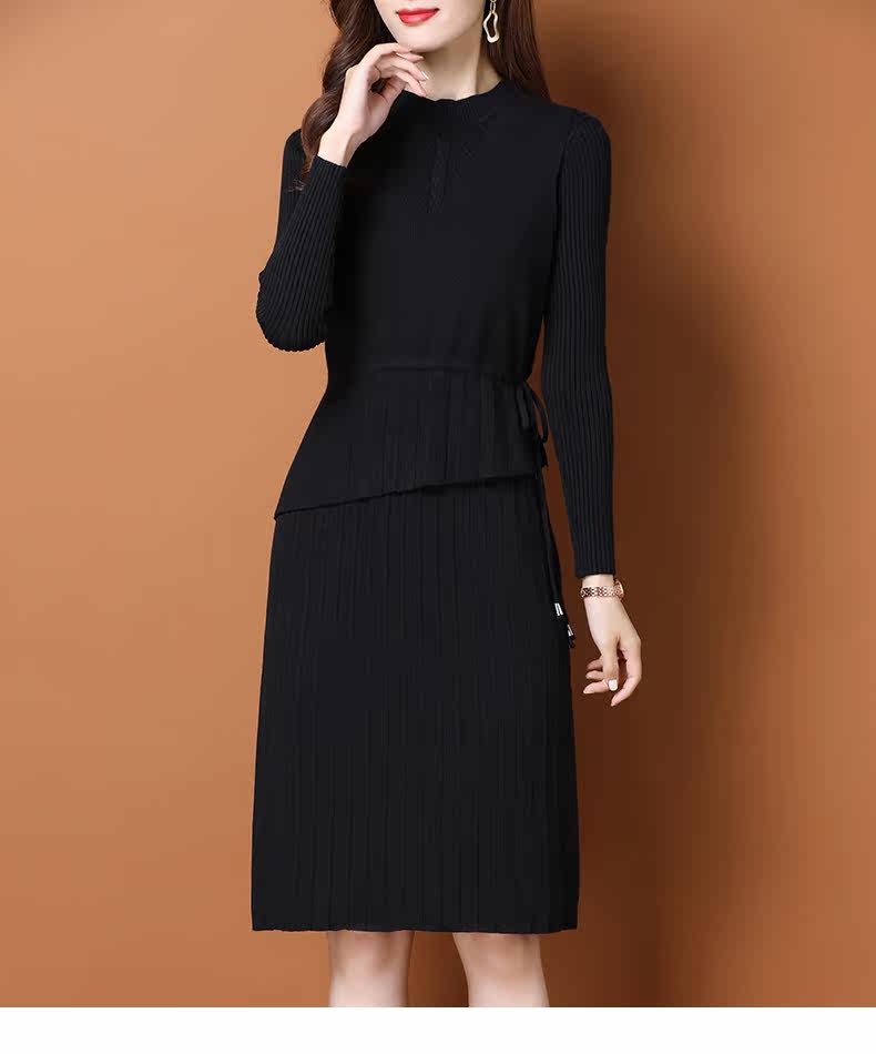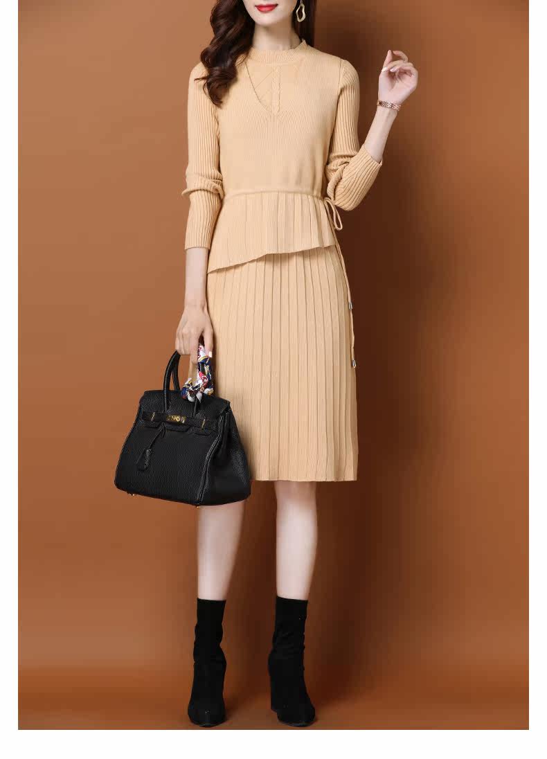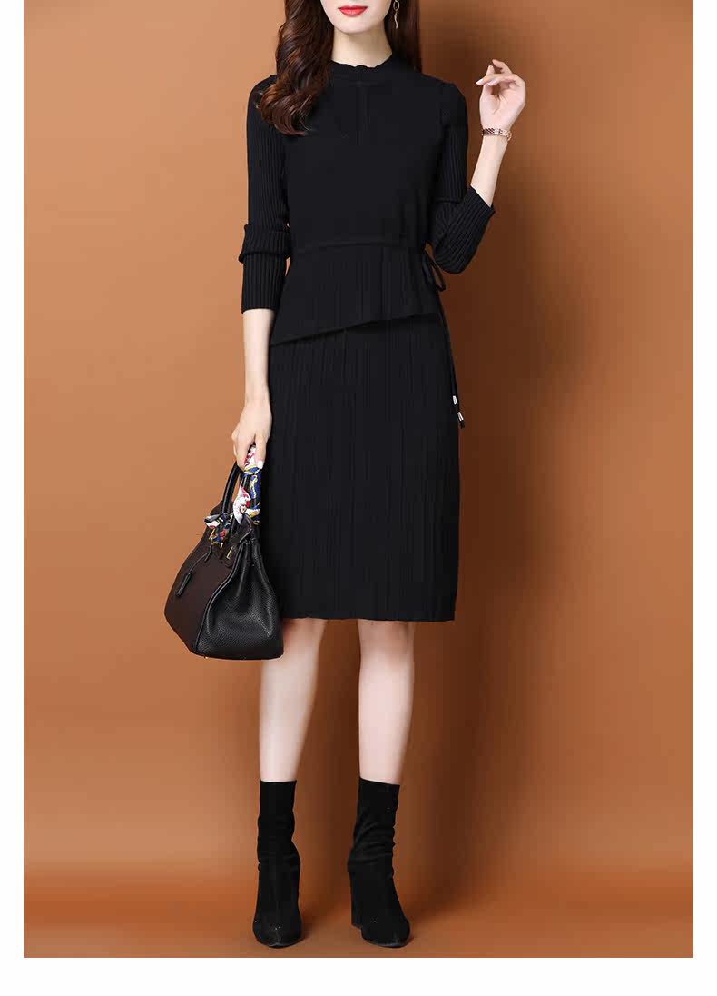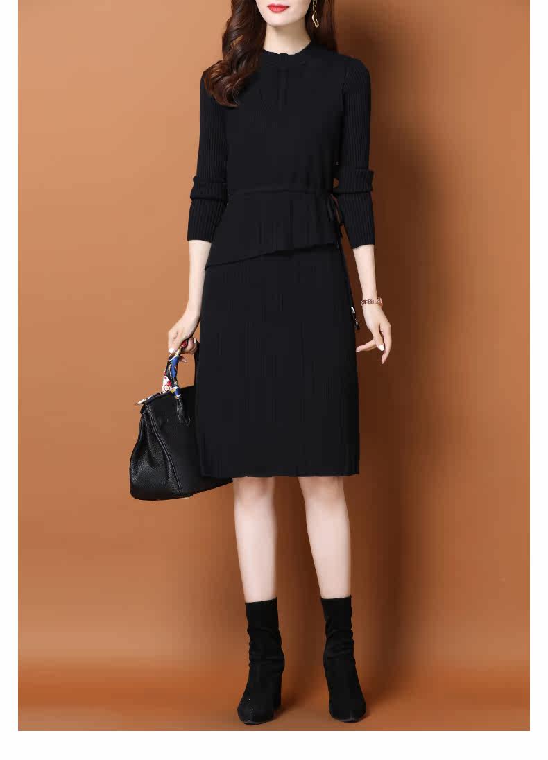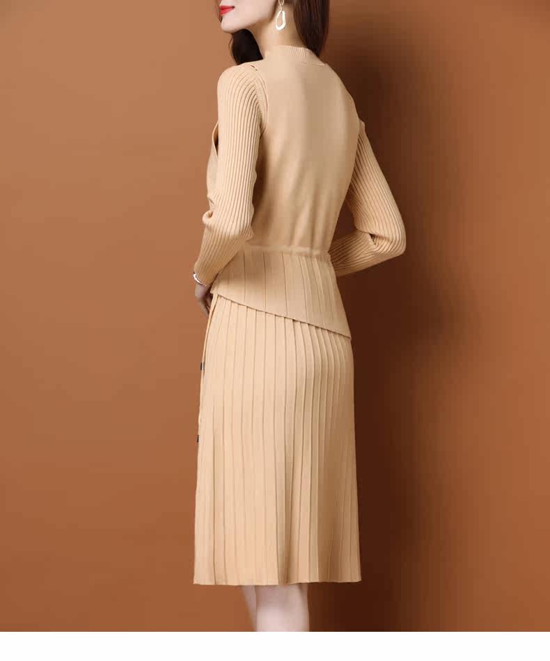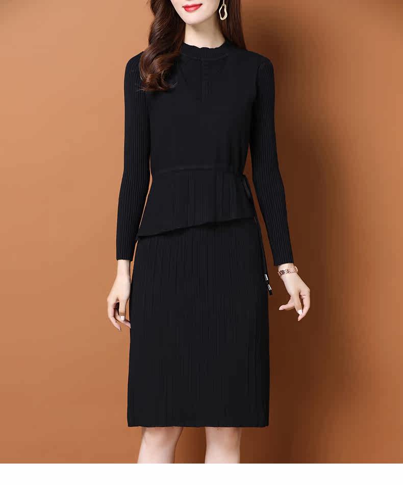 Трикотажное трикотажное платье, демисезонный пуховик, базовое шерстяное платье, комплект, в западном стиле, коллекция 2021