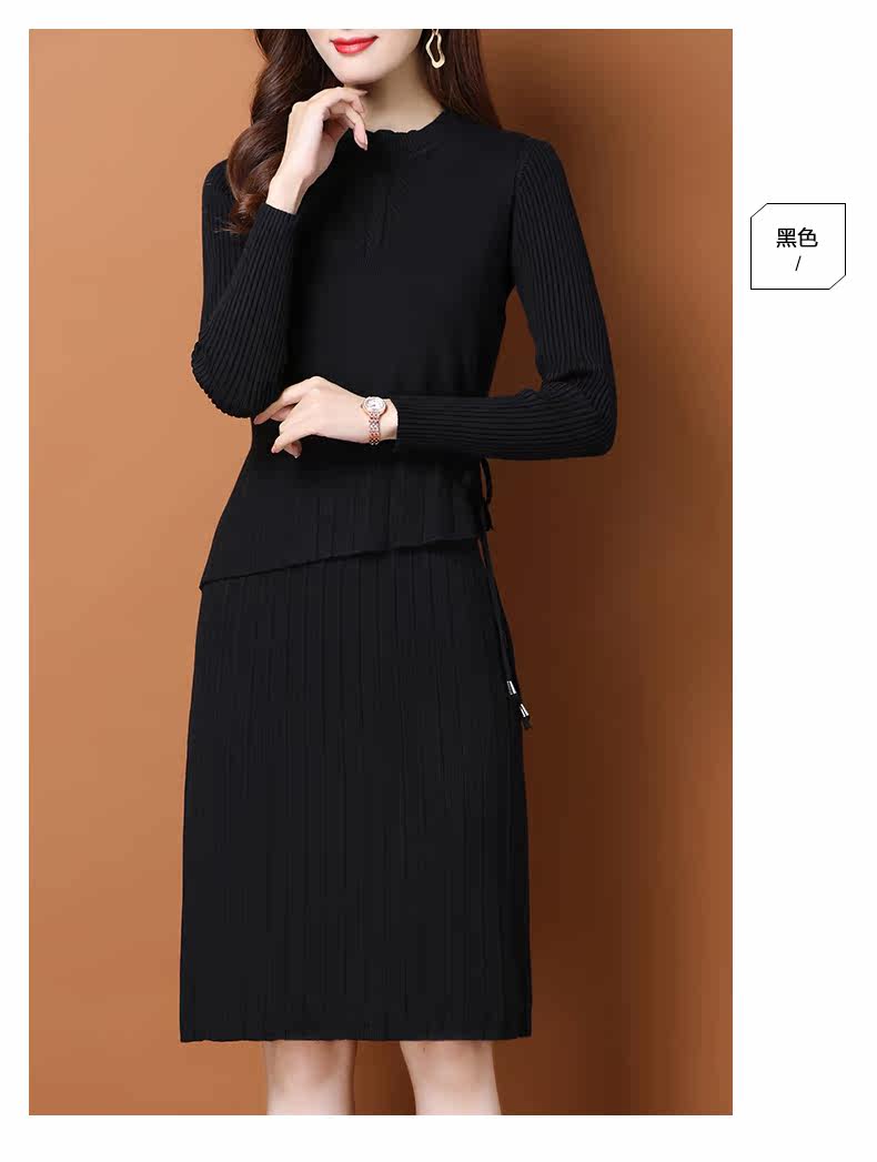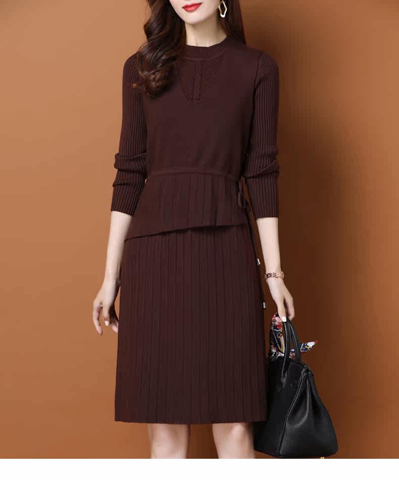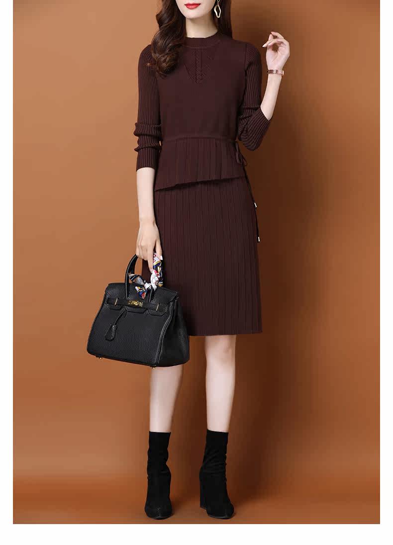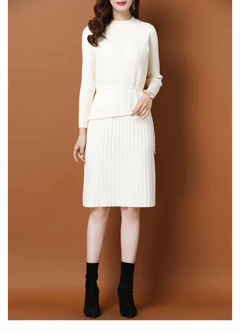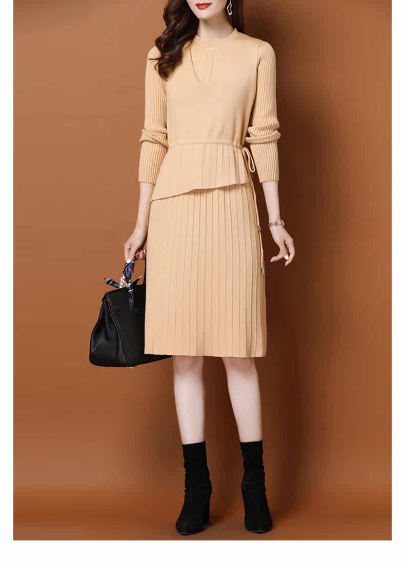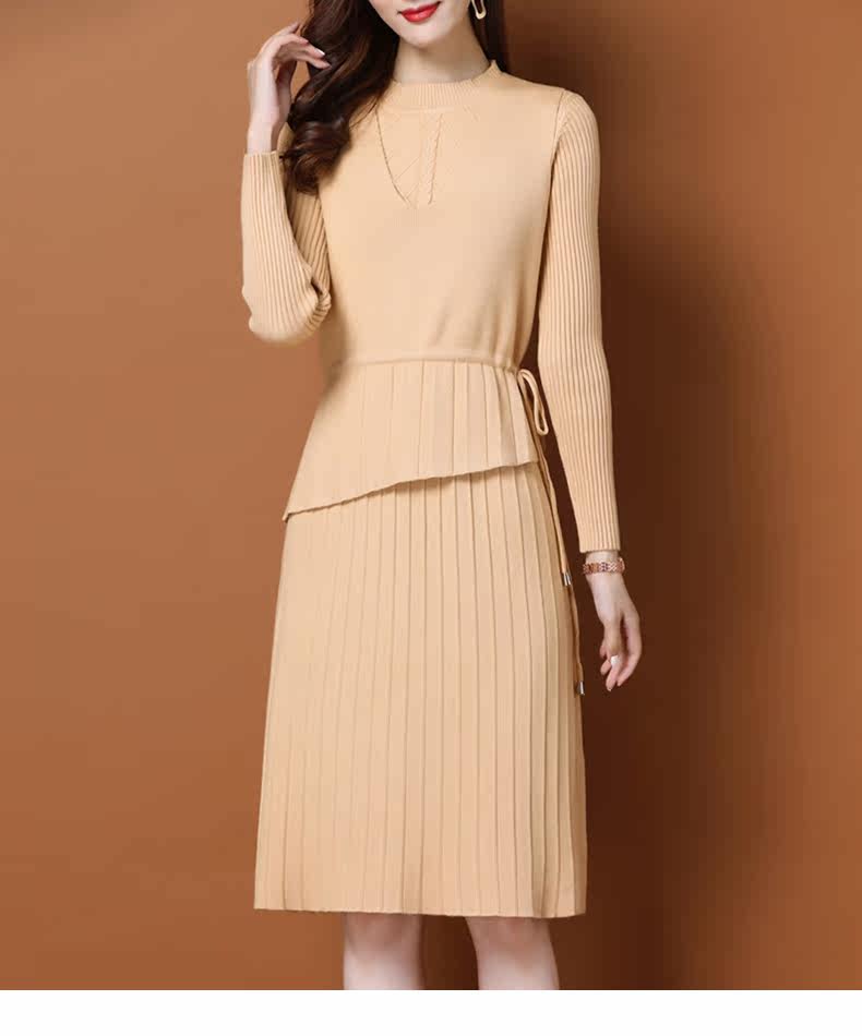 Трикотажное трикотажное платье, демисезонный пуховик, базовое шерстяное платье, комплект, в западном стиле, коллекция 2021