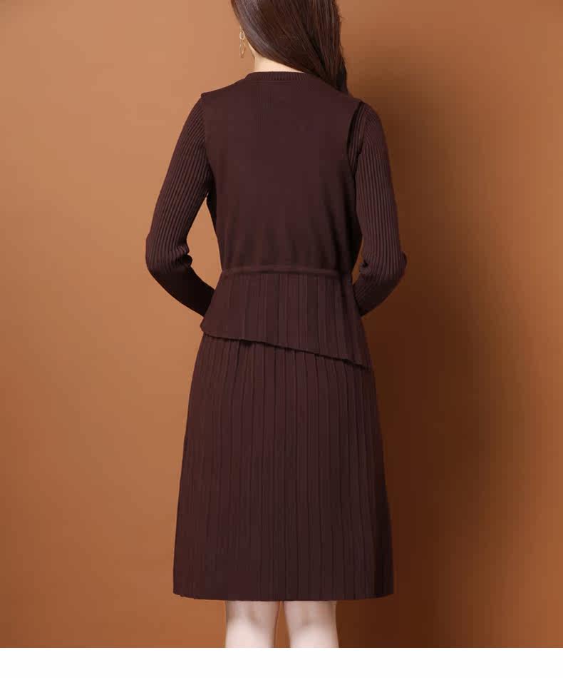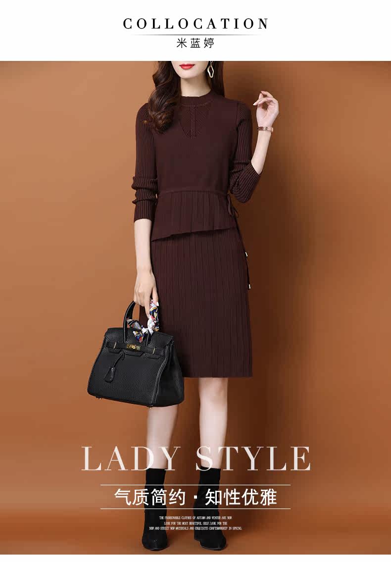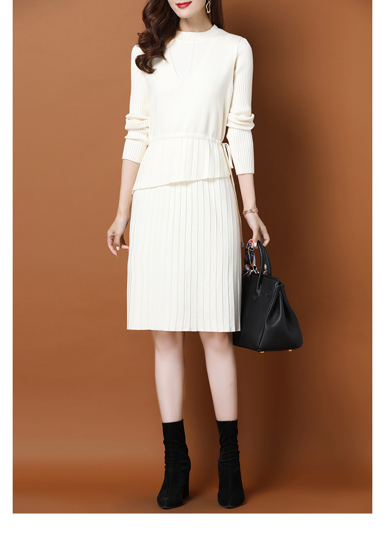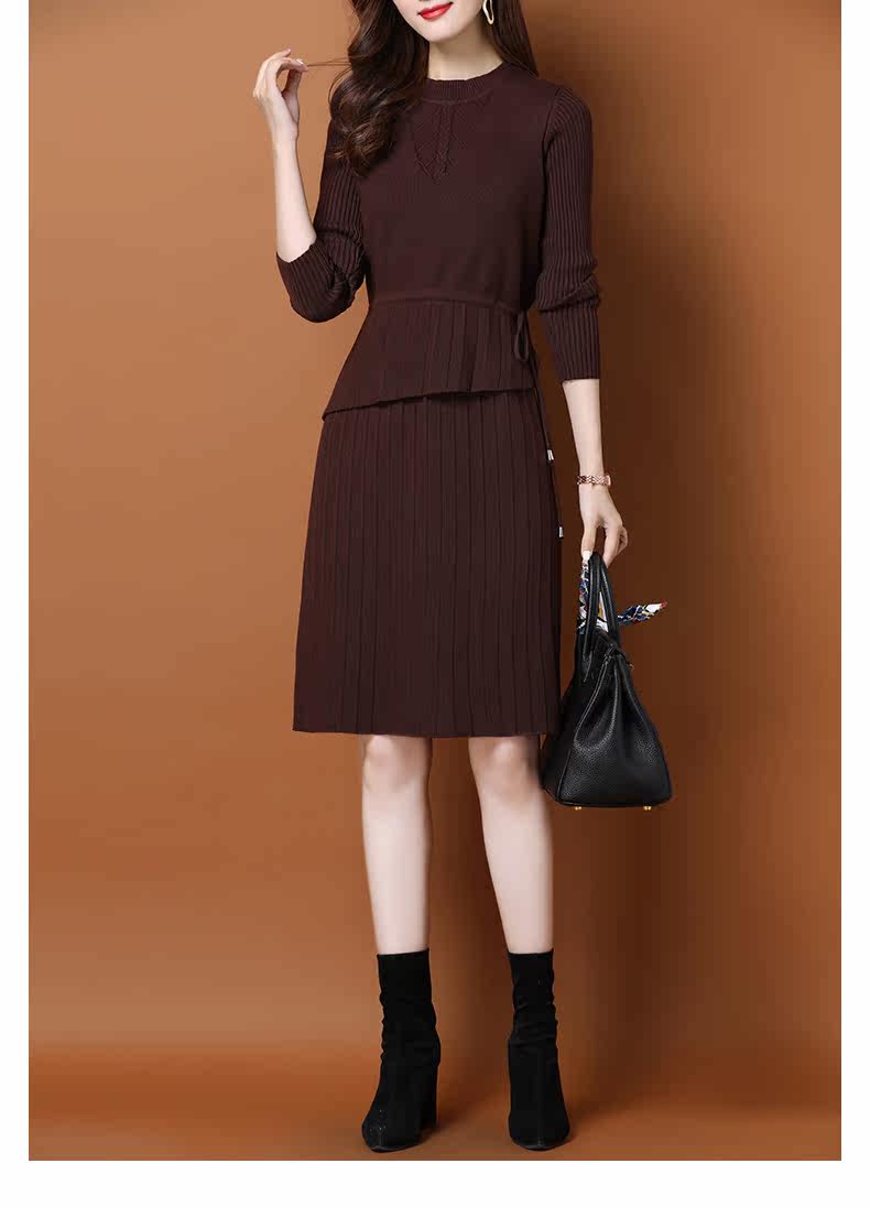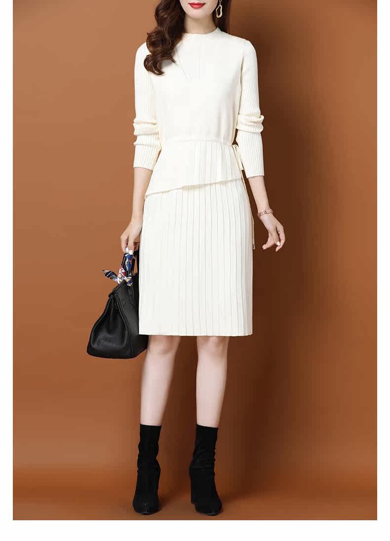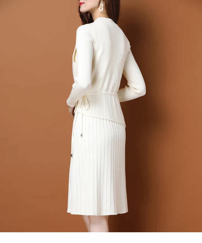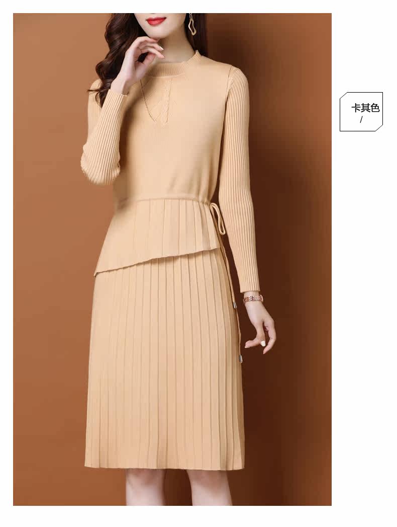 Трикотажное трикотажное платье, демисезонный пуховик, базовое шерстяное платье, комплект, в западном стиле, коллекция 2021