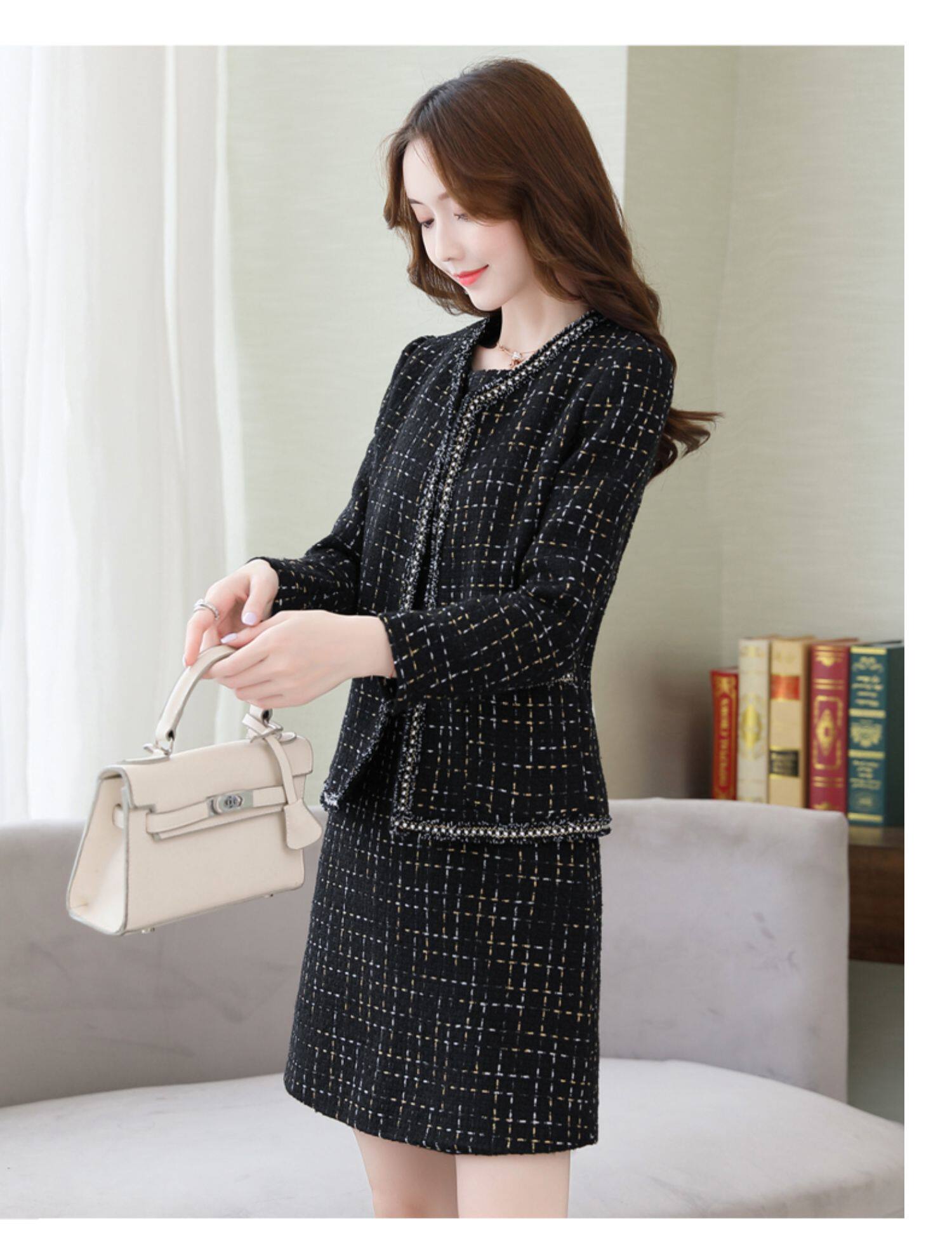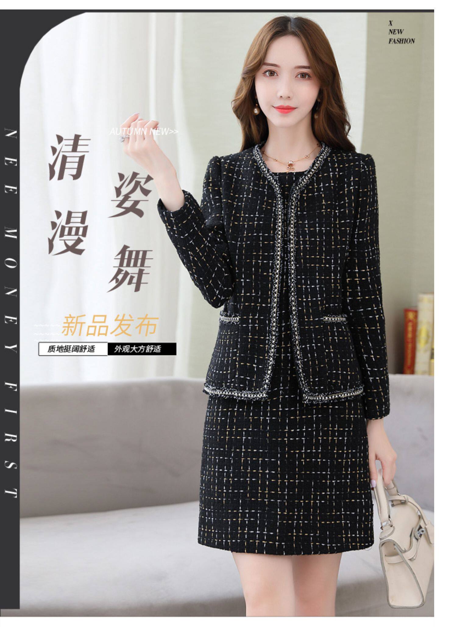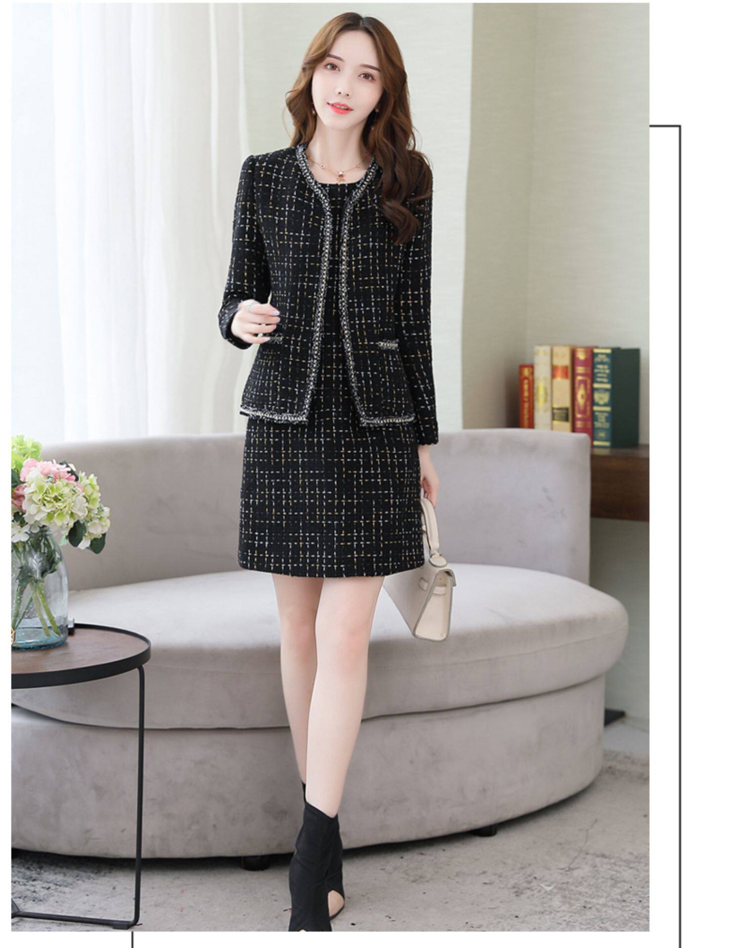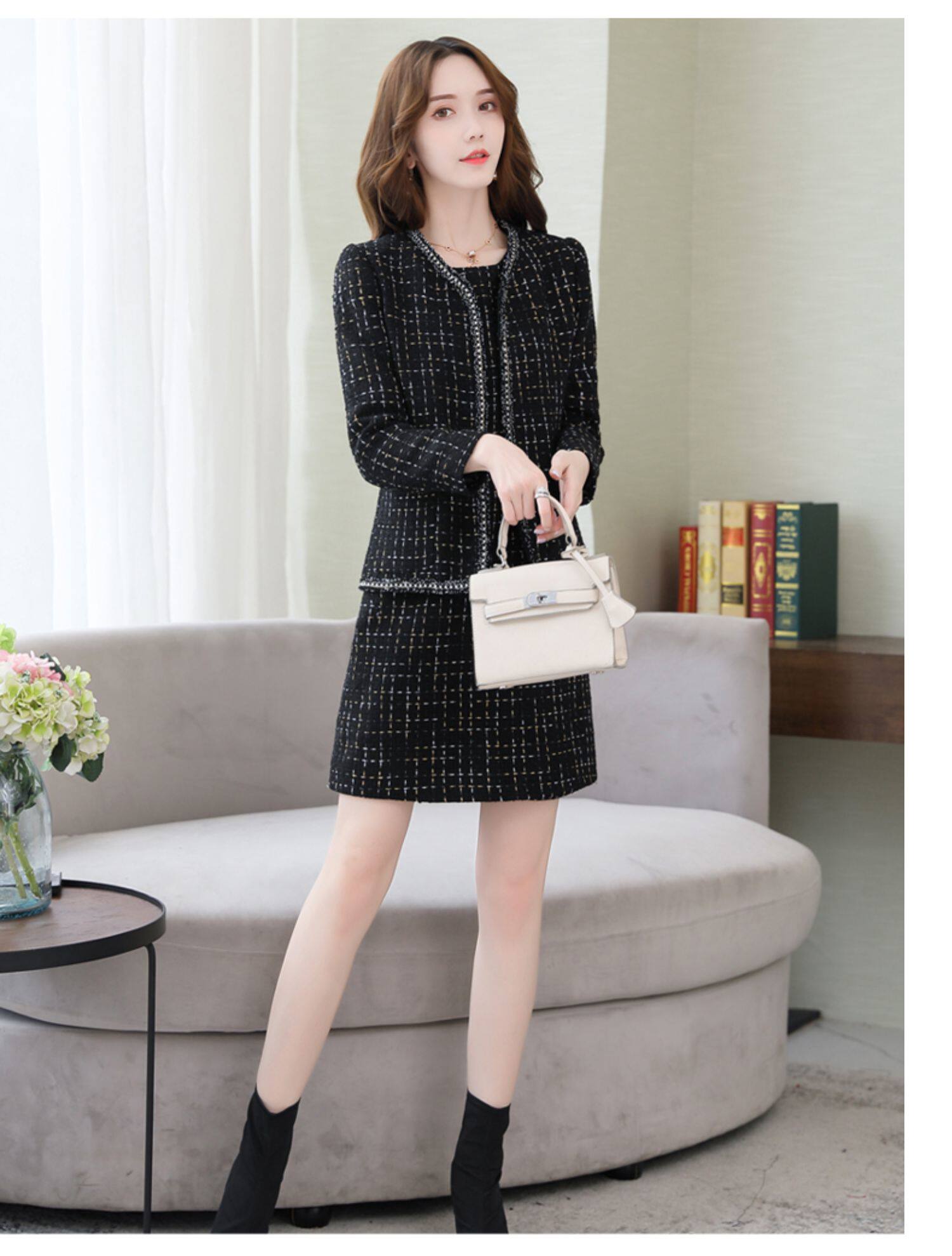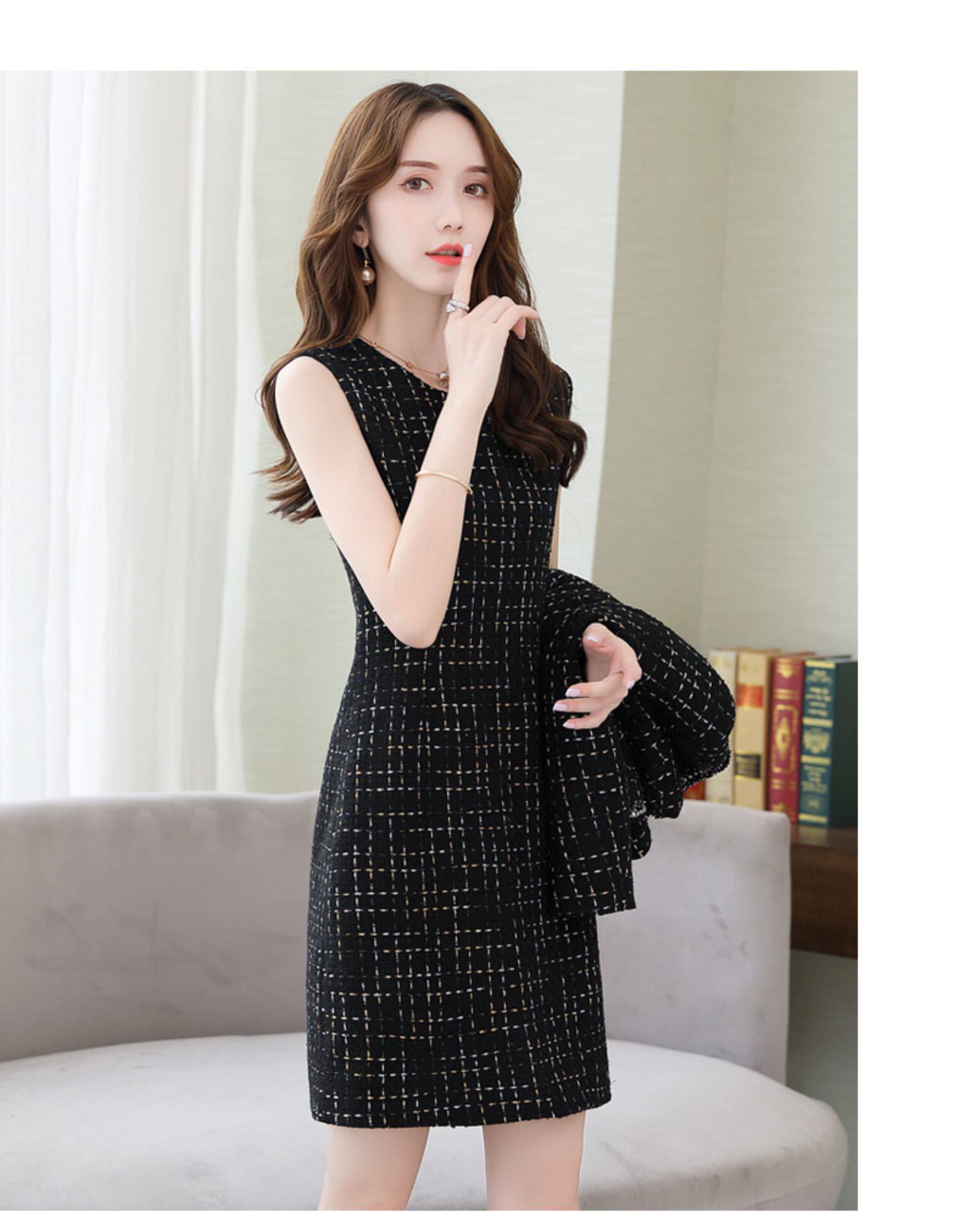 Демисезонный комплект, платье, модный шерстяной костюм, в западном стиле, подходит для подростков, яркий броский стиль