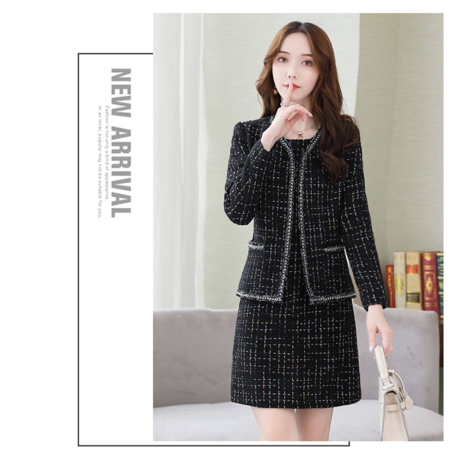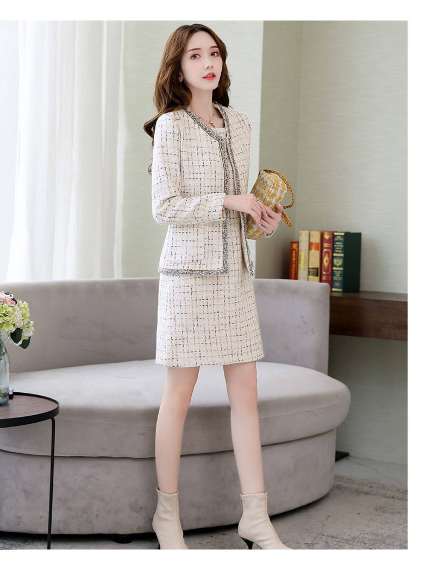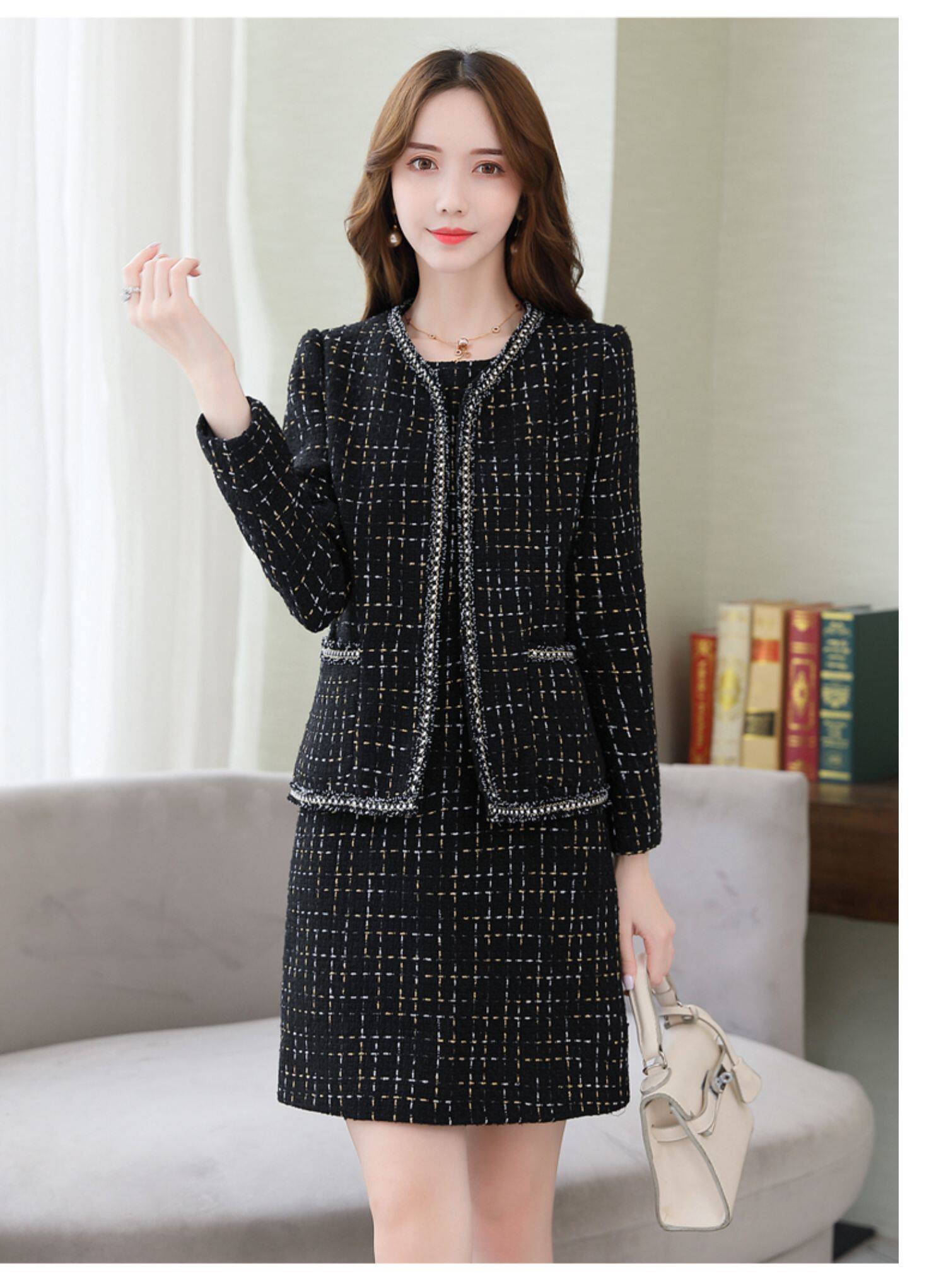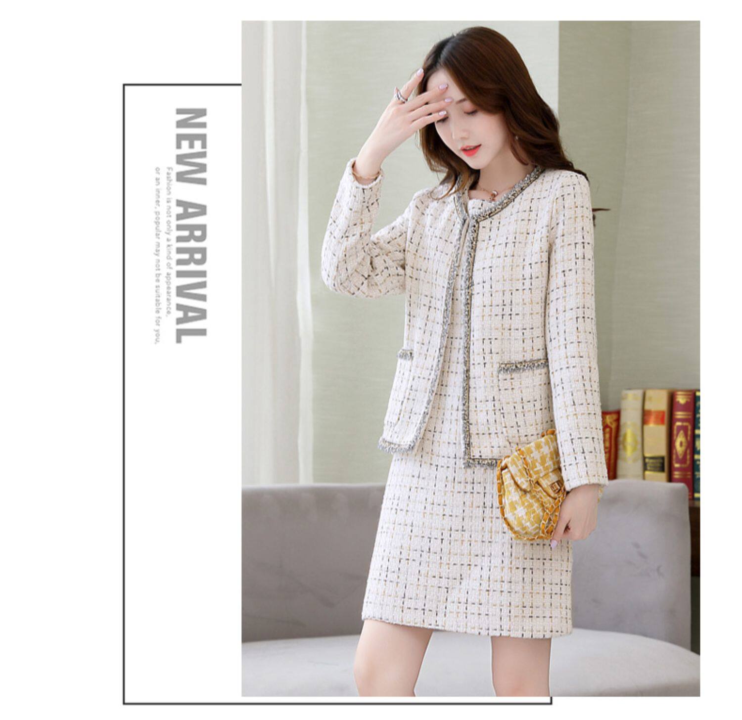 Демисезонный комплект, платье, модный шерстяной костюм, в западном стиле, подходит для подростков, яркий броский стиль
