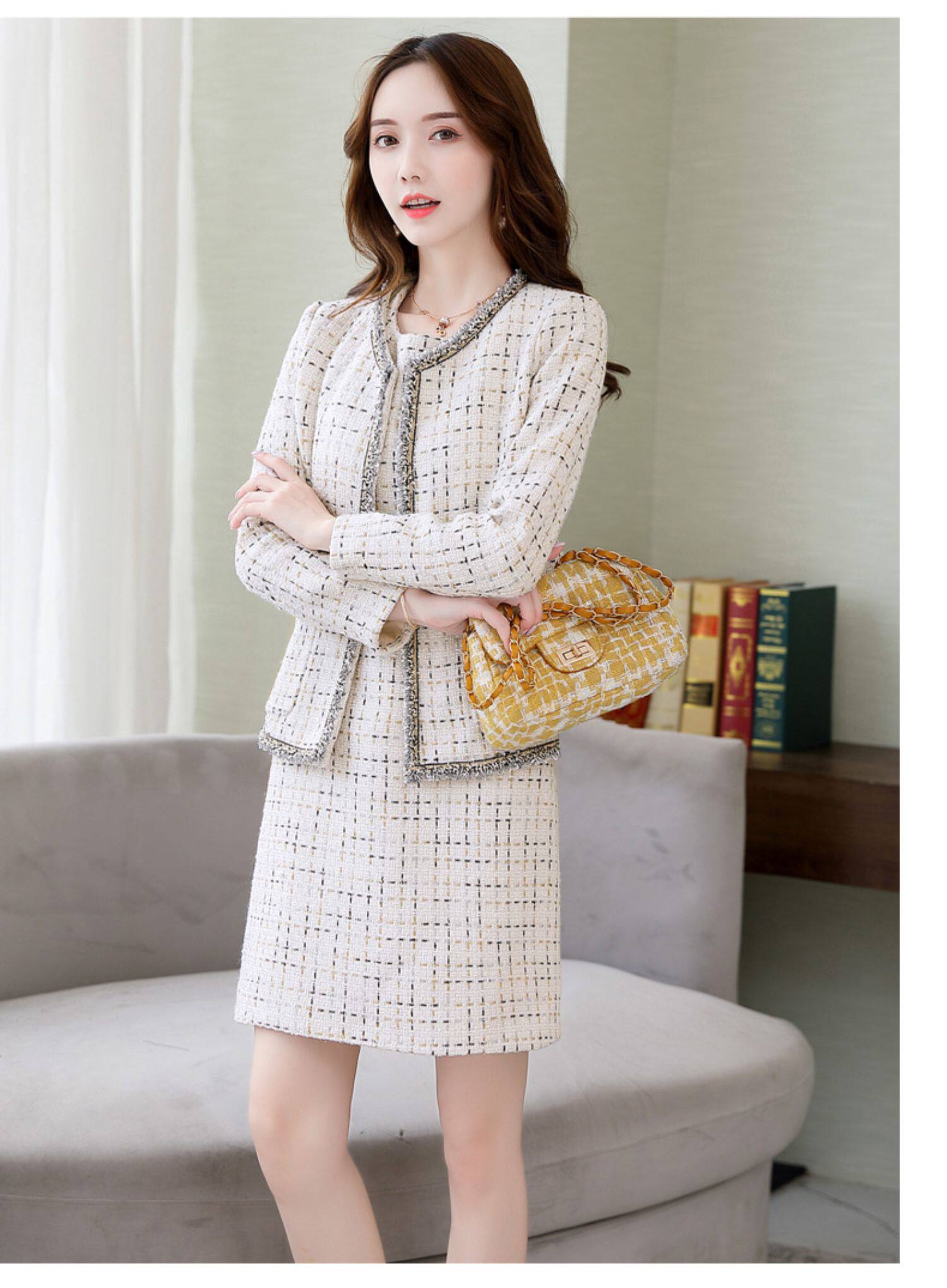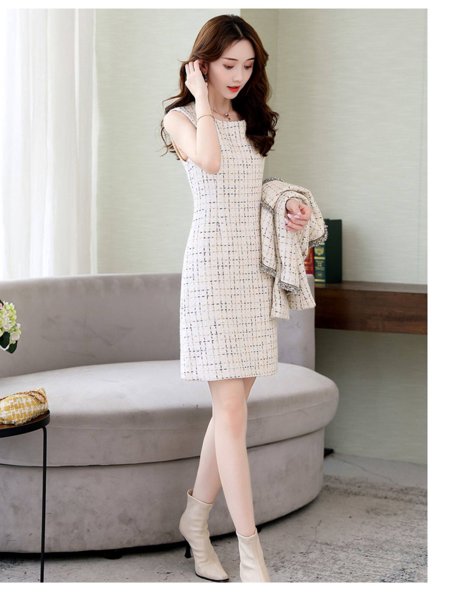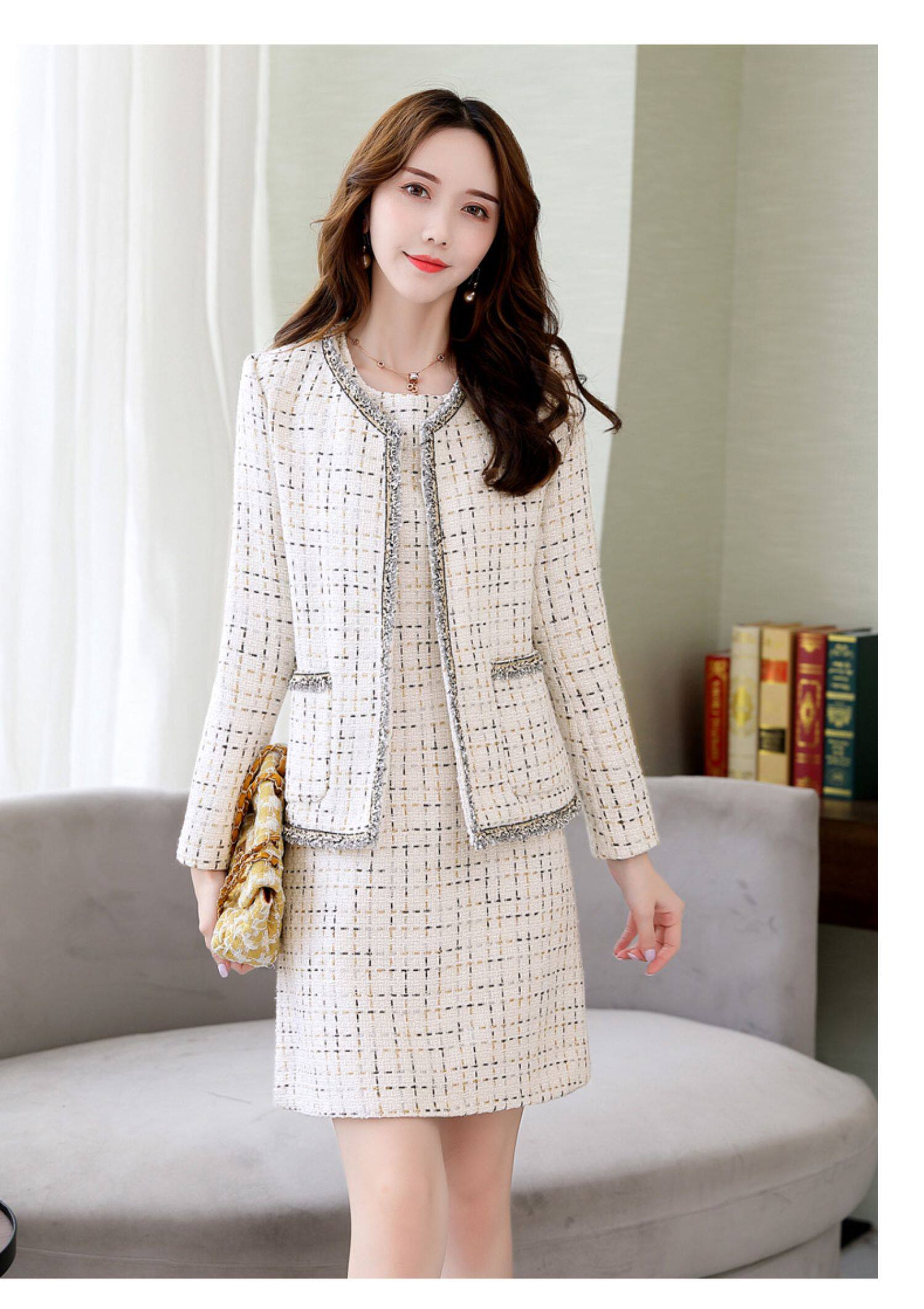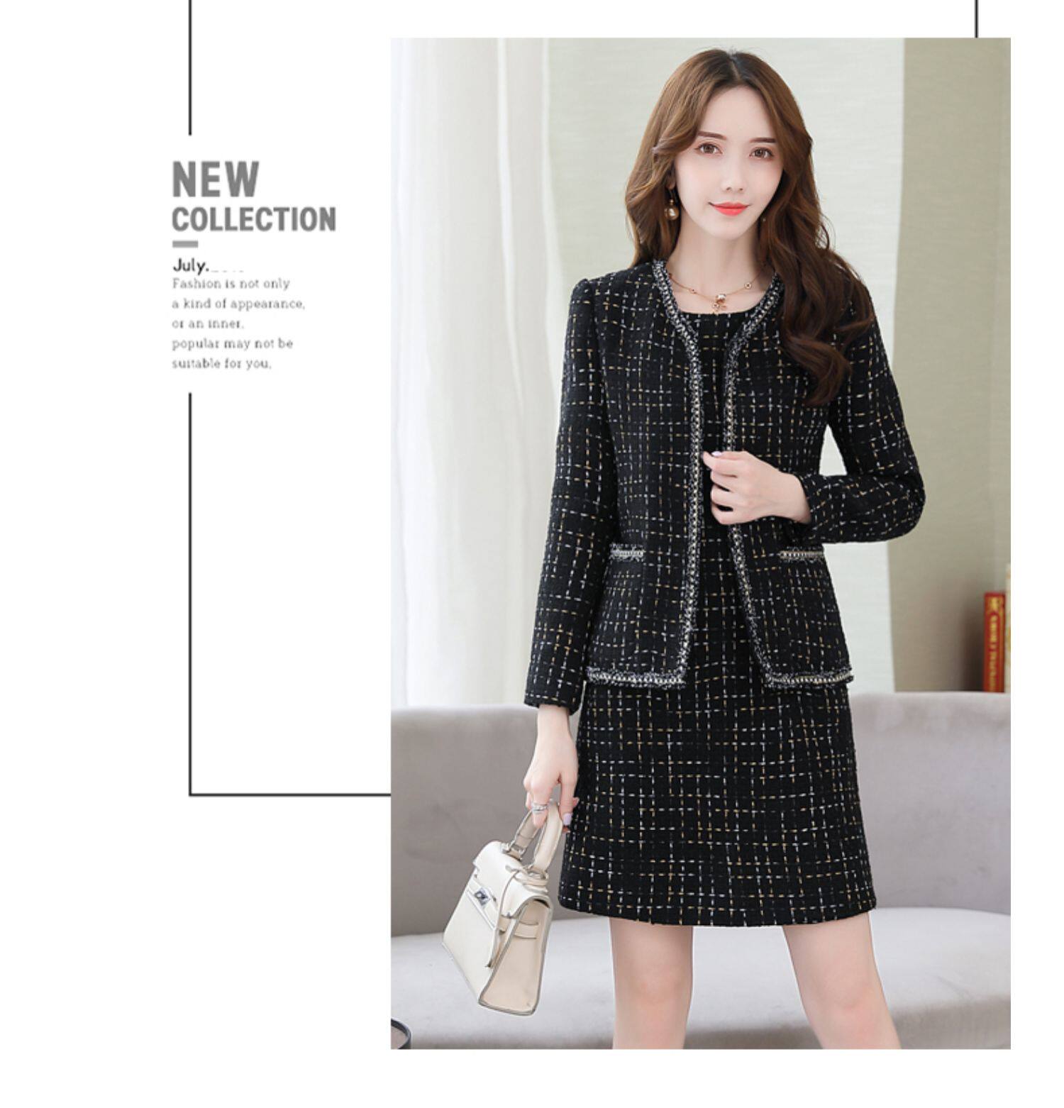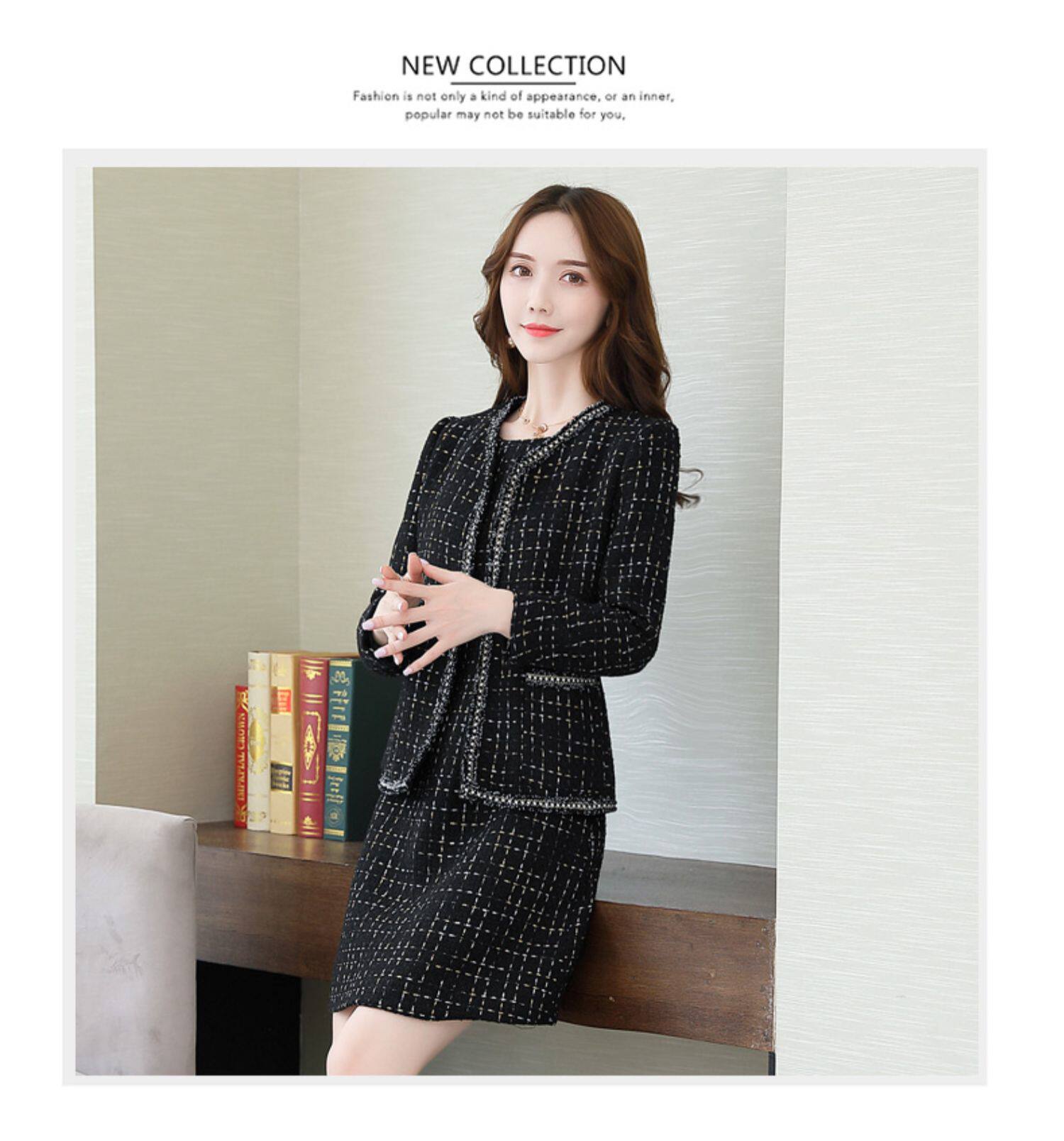 Демисезонный комплект, платье, модный шерстяной костюм, в западном стиле, подходит для подростков, яркий броский стиль