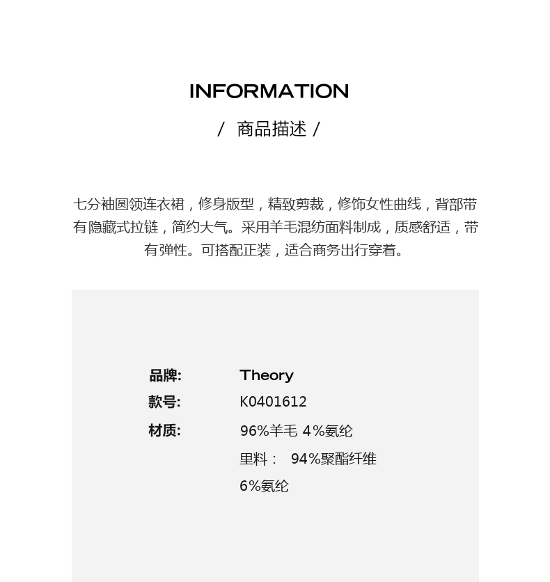 [Дань классическому] Теория 2020 Осень и зима Новое женское смешанное платье K0401612