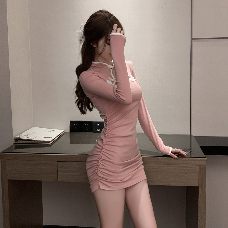 Весенний лонгслив, сексуальное ципао, платье, популярно в интернете, с акцентом на бедрах, в обтяжку