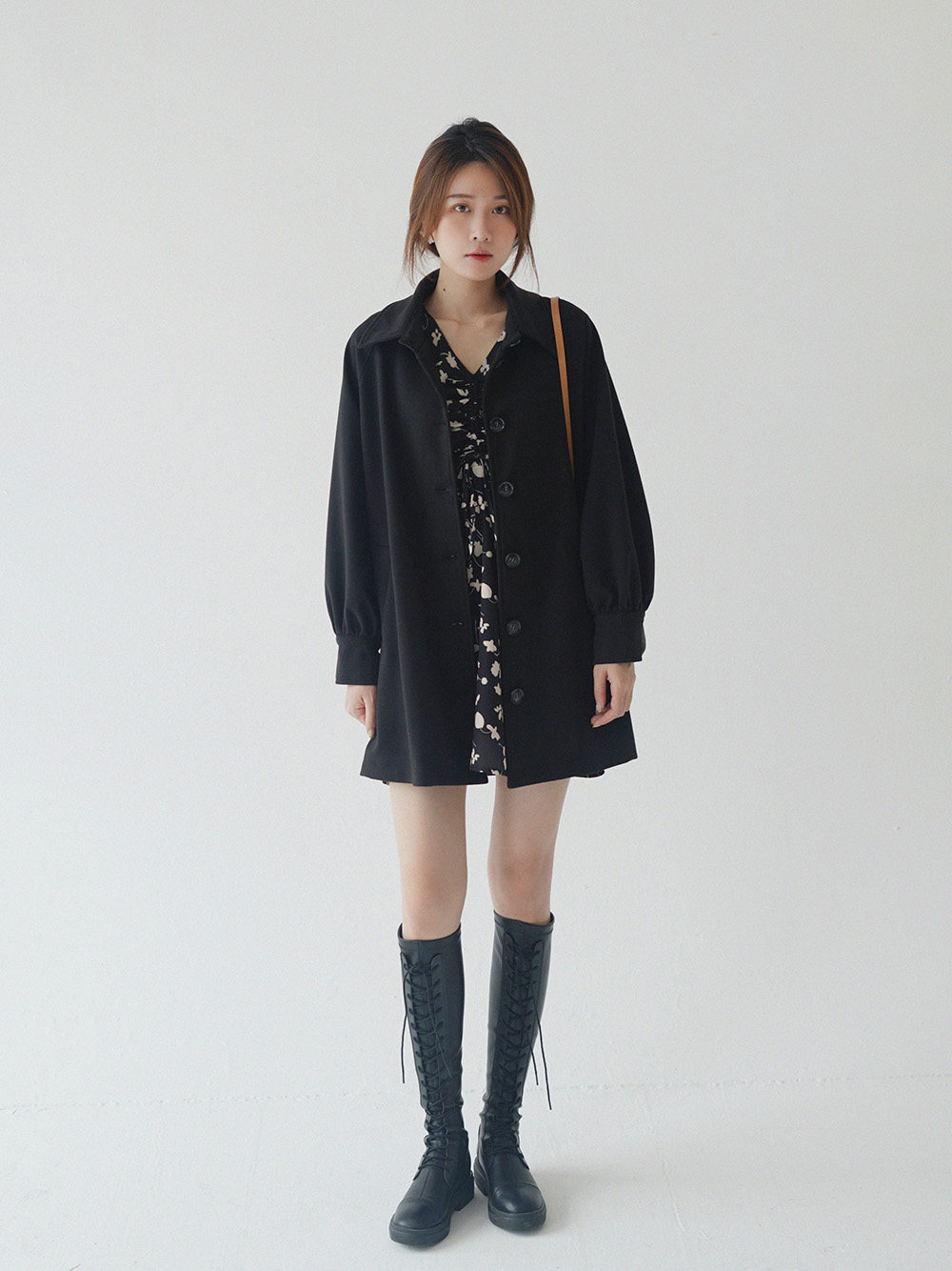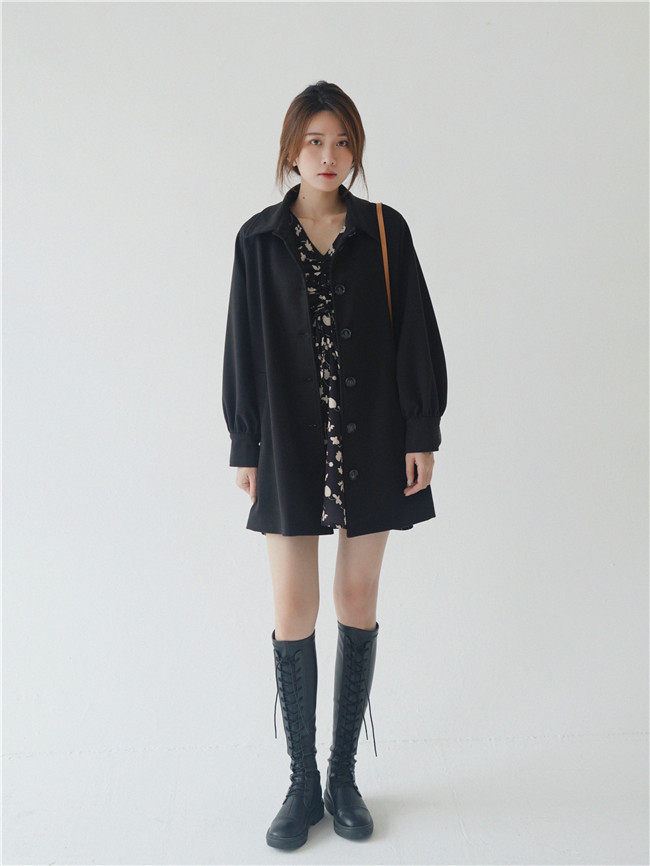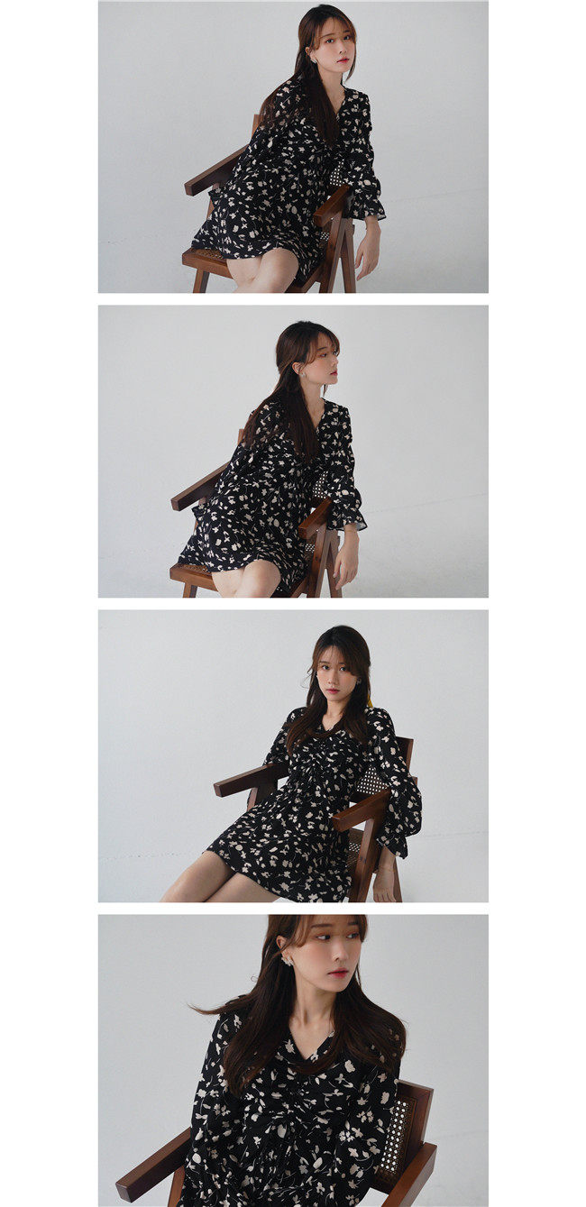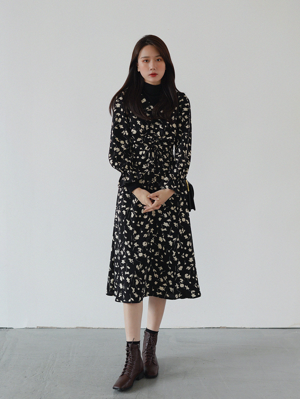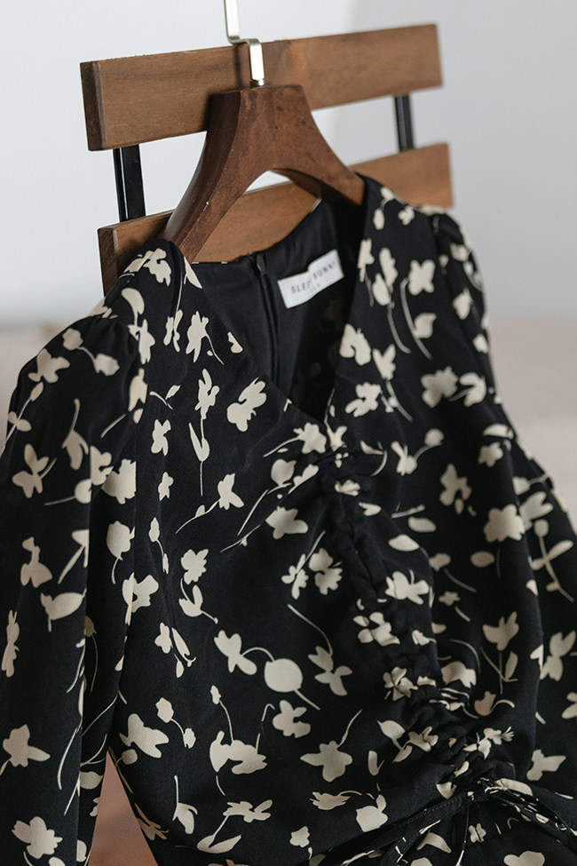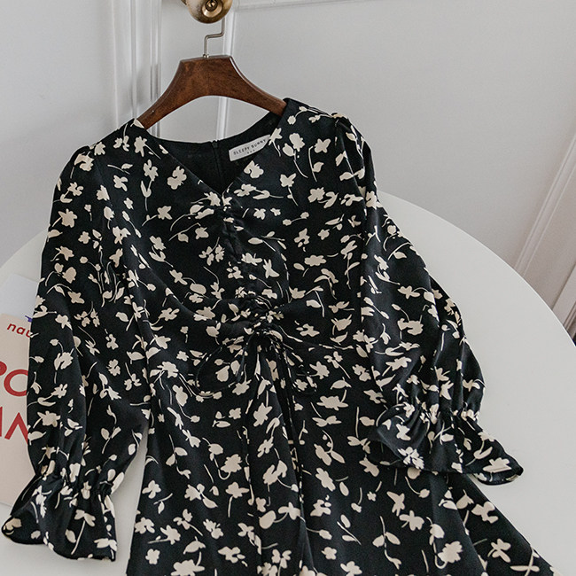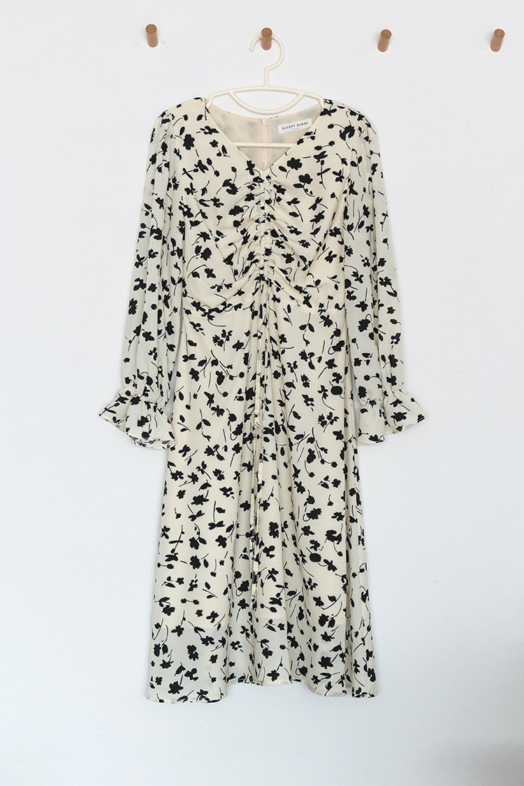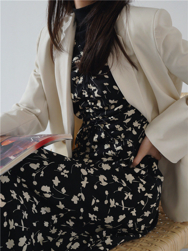 Осеннее длинное платье, в цветочек, 2020, на шнурках, V-образный вырез, средней длины