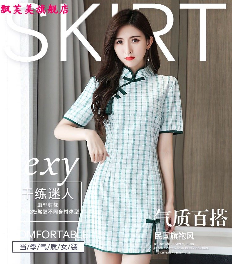 Улучшенная ретро Cheongsam Slim Dress Plass Юбка для ног для ванны с одеждой для сауны одежды