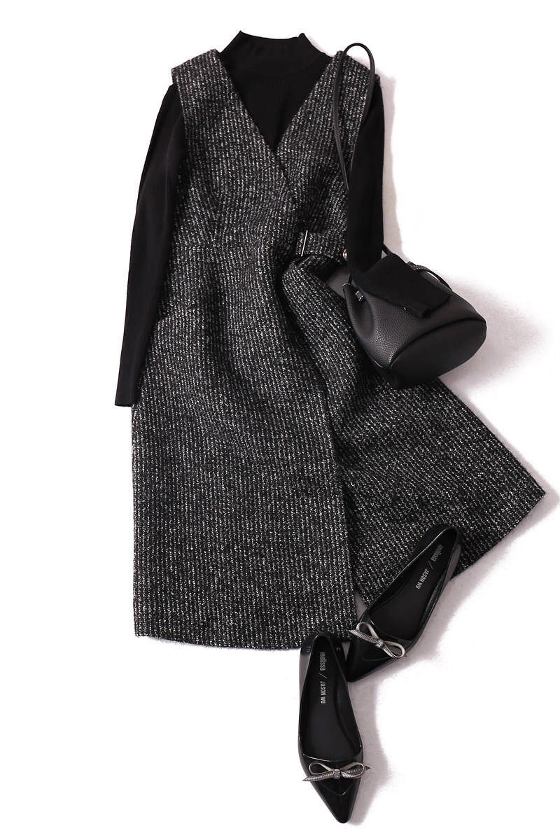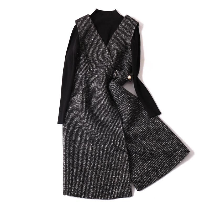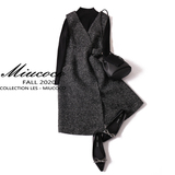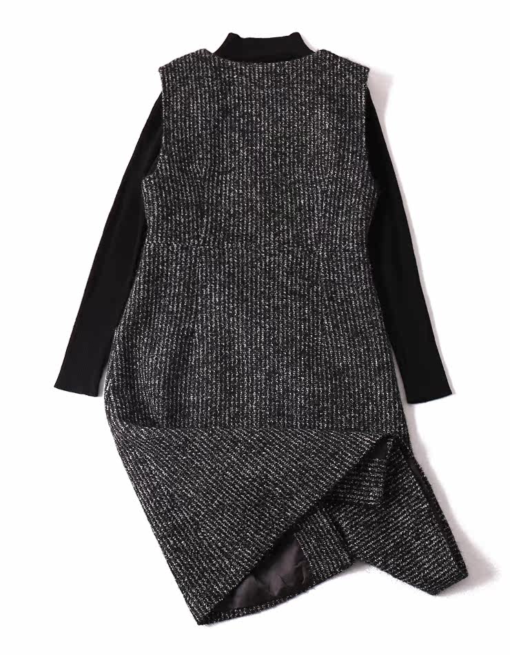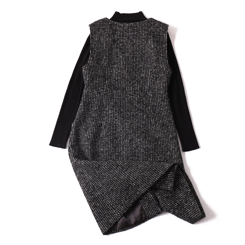 Элегантный ретро шерстяной трикотажный комплект, демисезонное платье без рукавов, юбка, французский стиль
