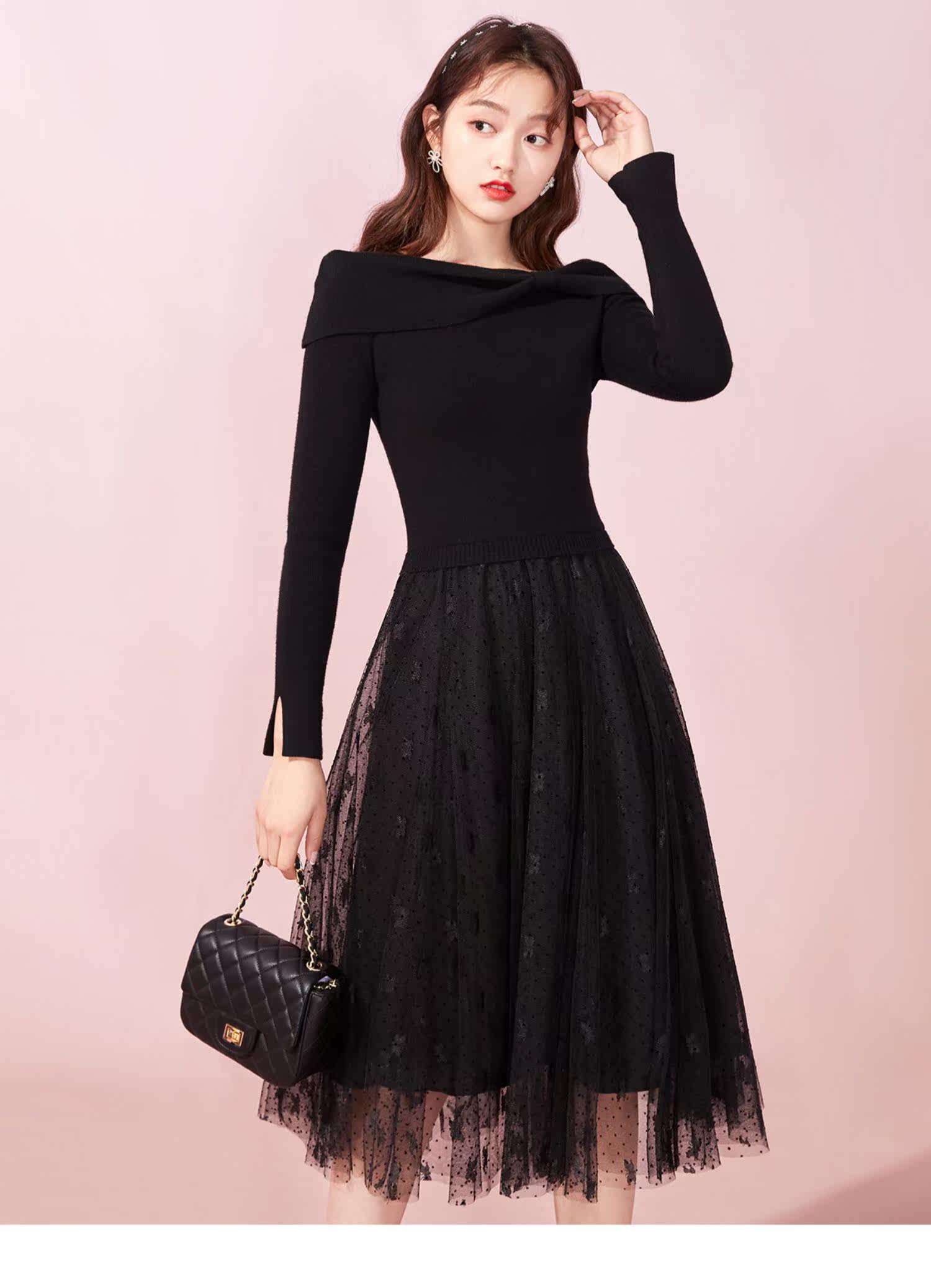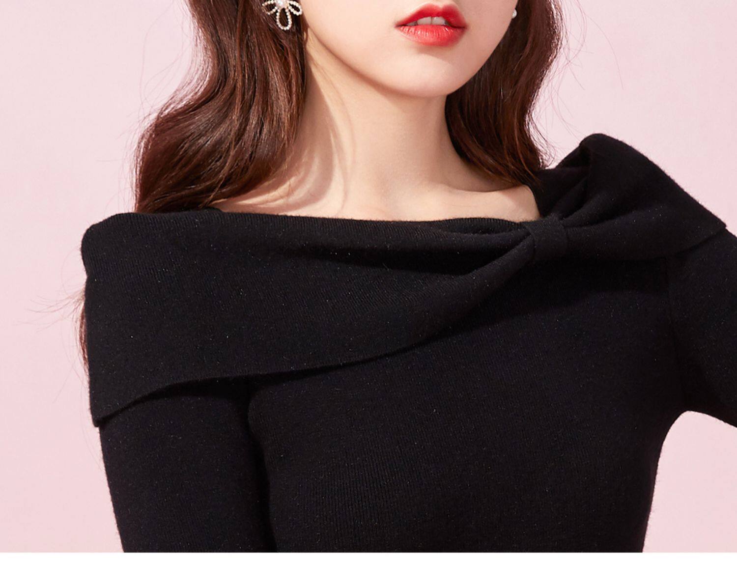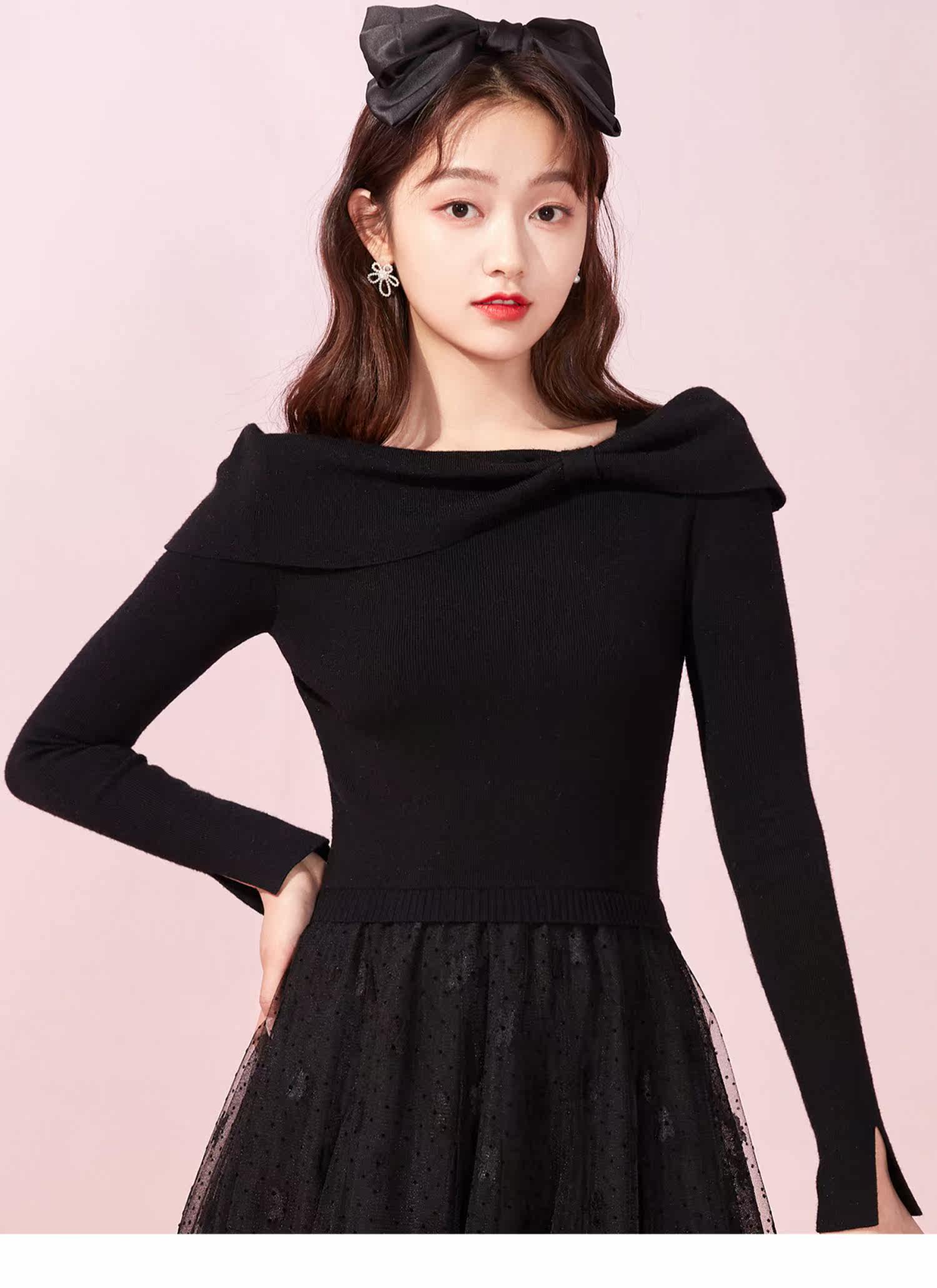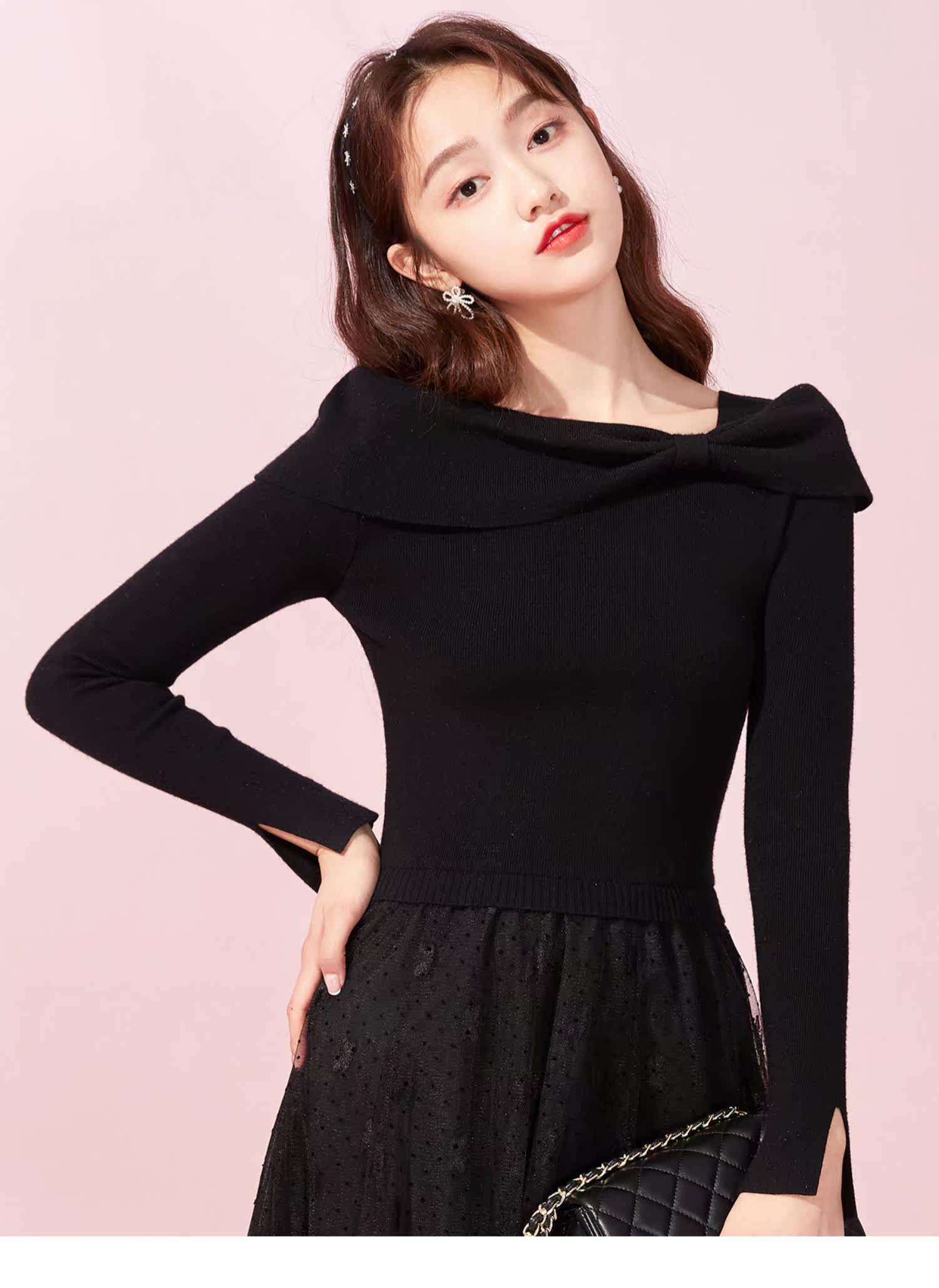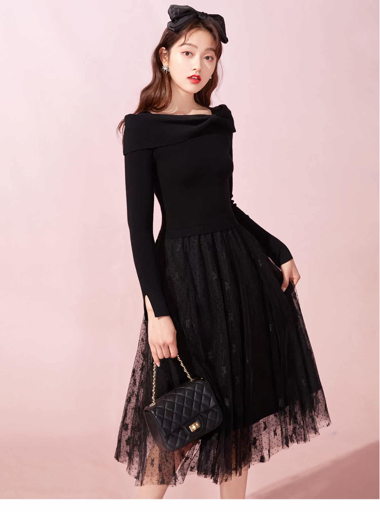 Марлевое зимнее черное цветное длинное милое базовое трикотажное платье с бантиком