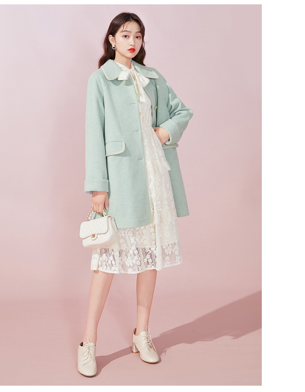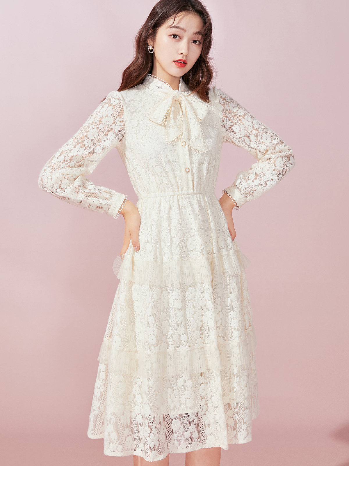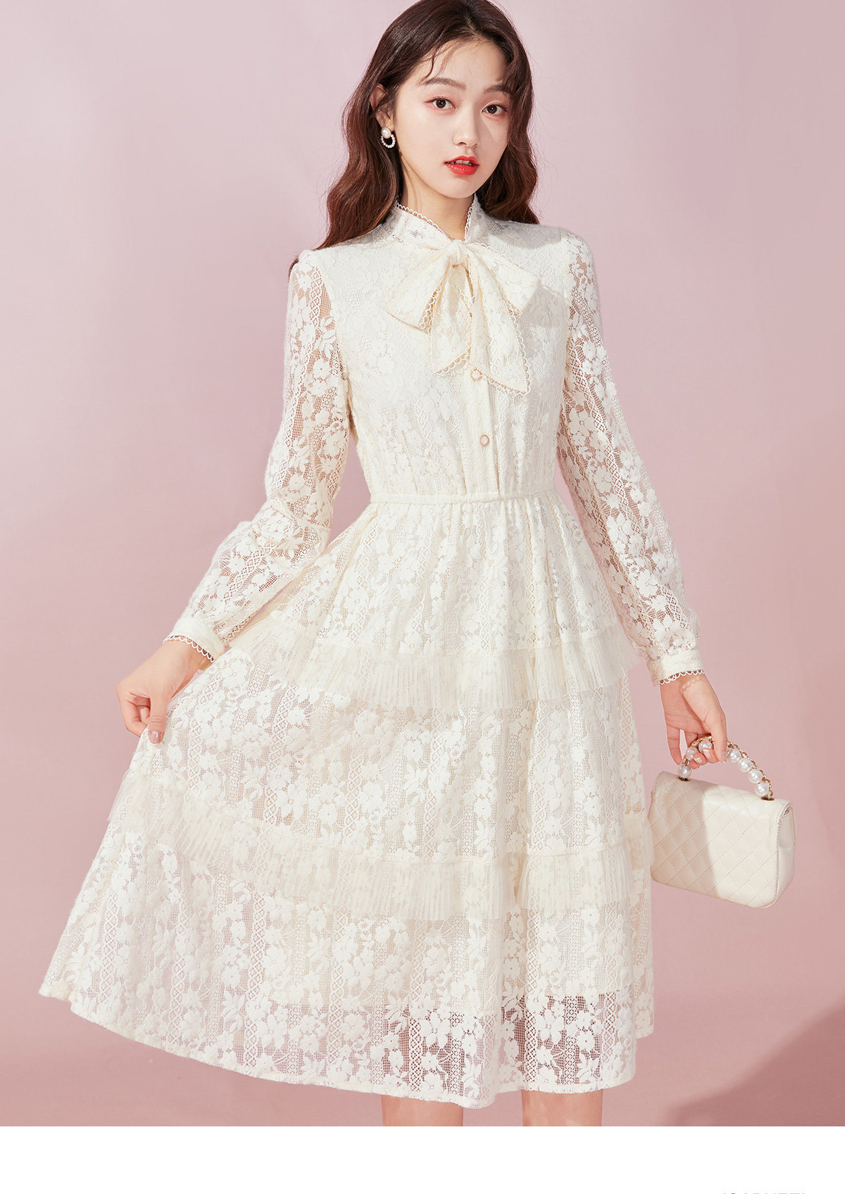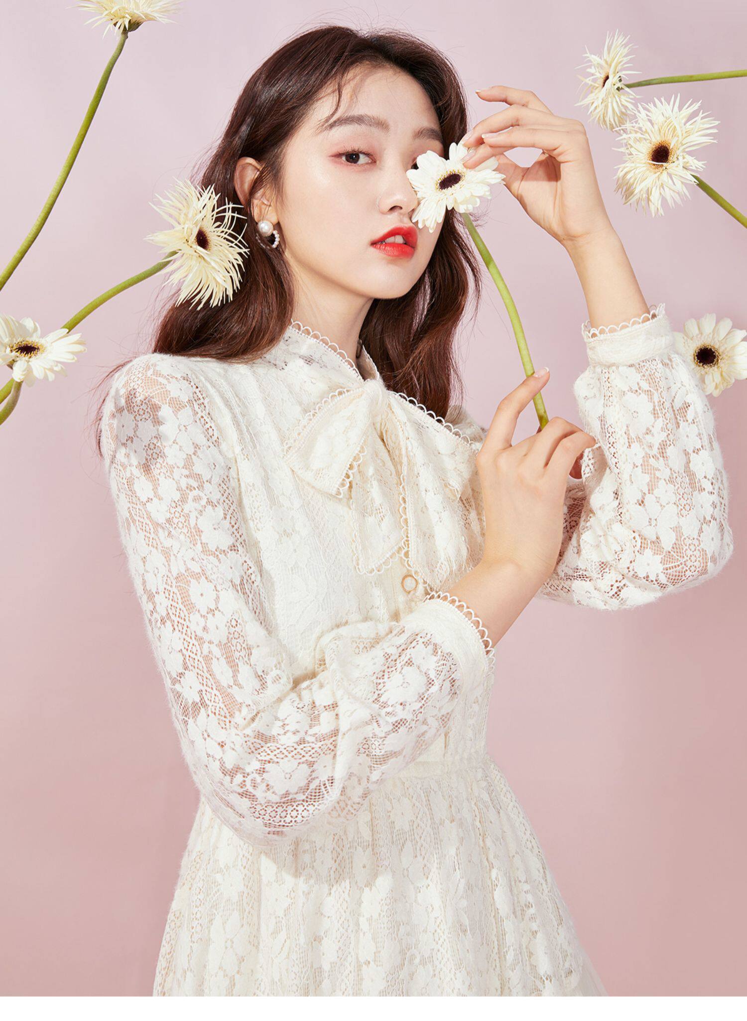 Марлевый зимний кружевной базовый лонгслив с бантиком, длинная юбка, французский стиль