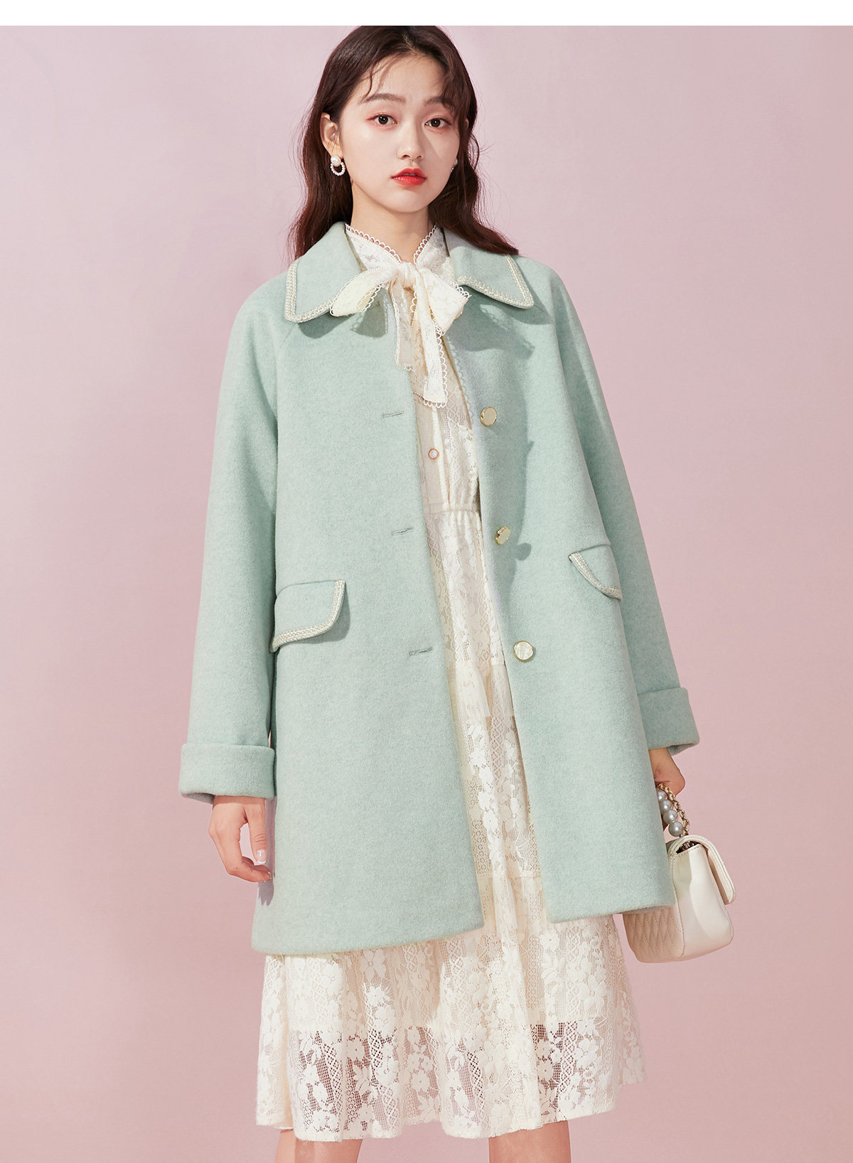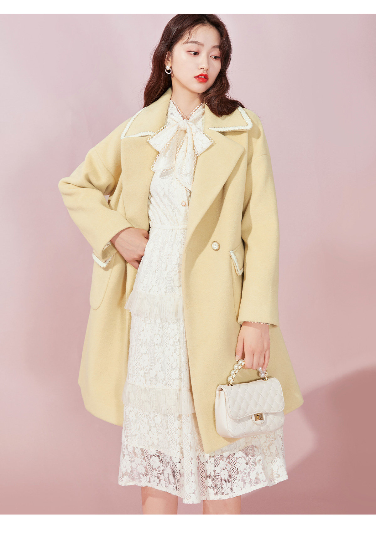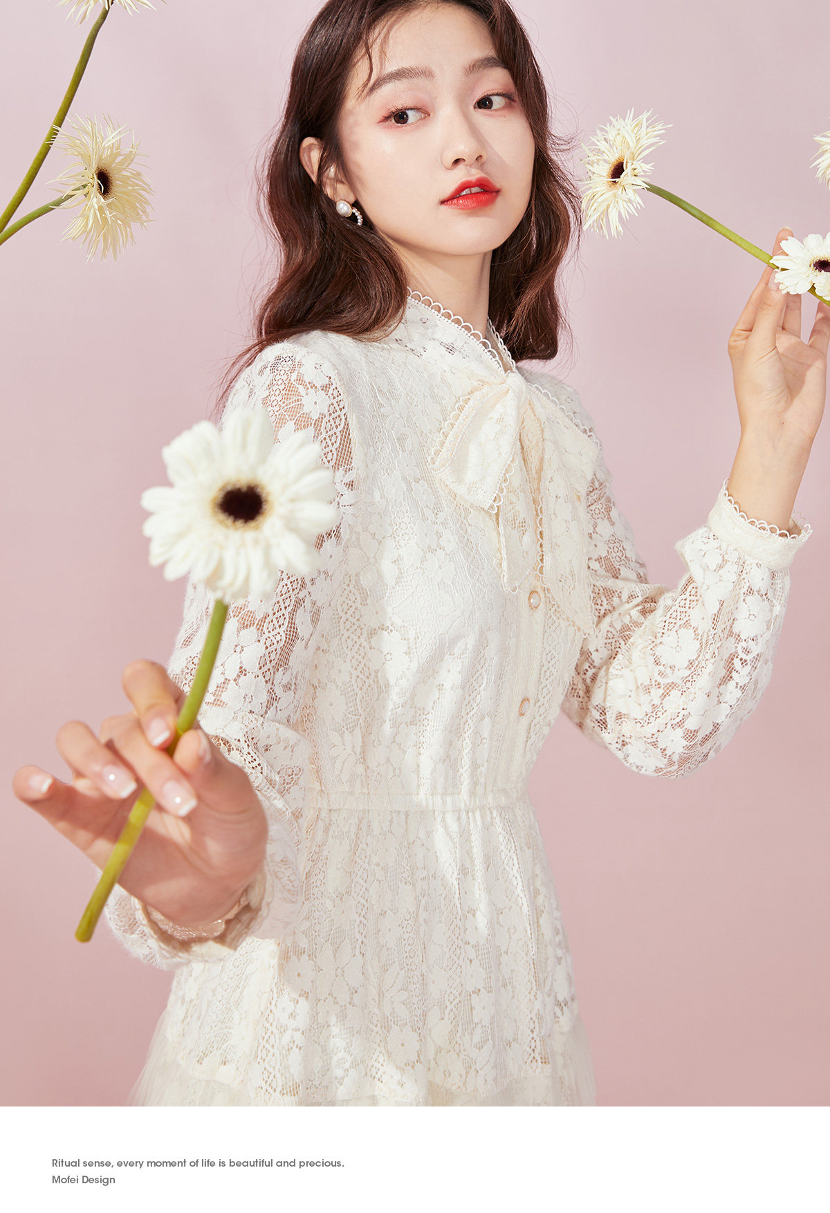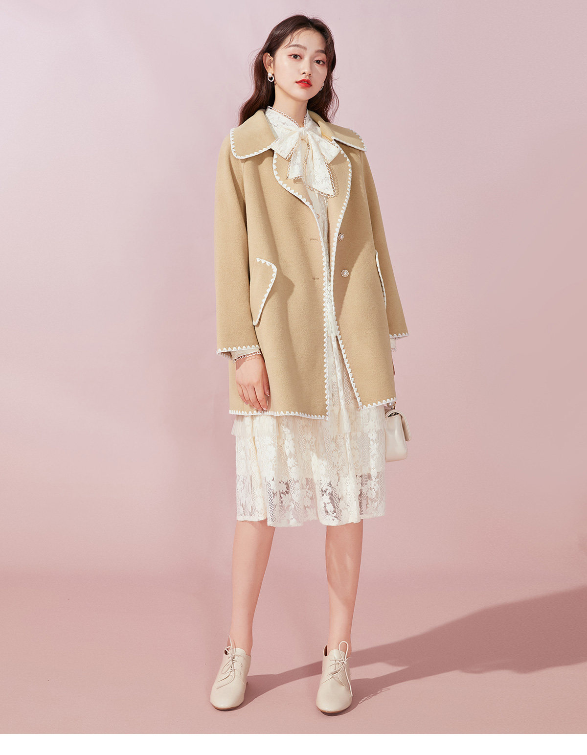 Марлевый зимний кружевной базовый лонгслив с бантиком, длинная юбка, французский стиль