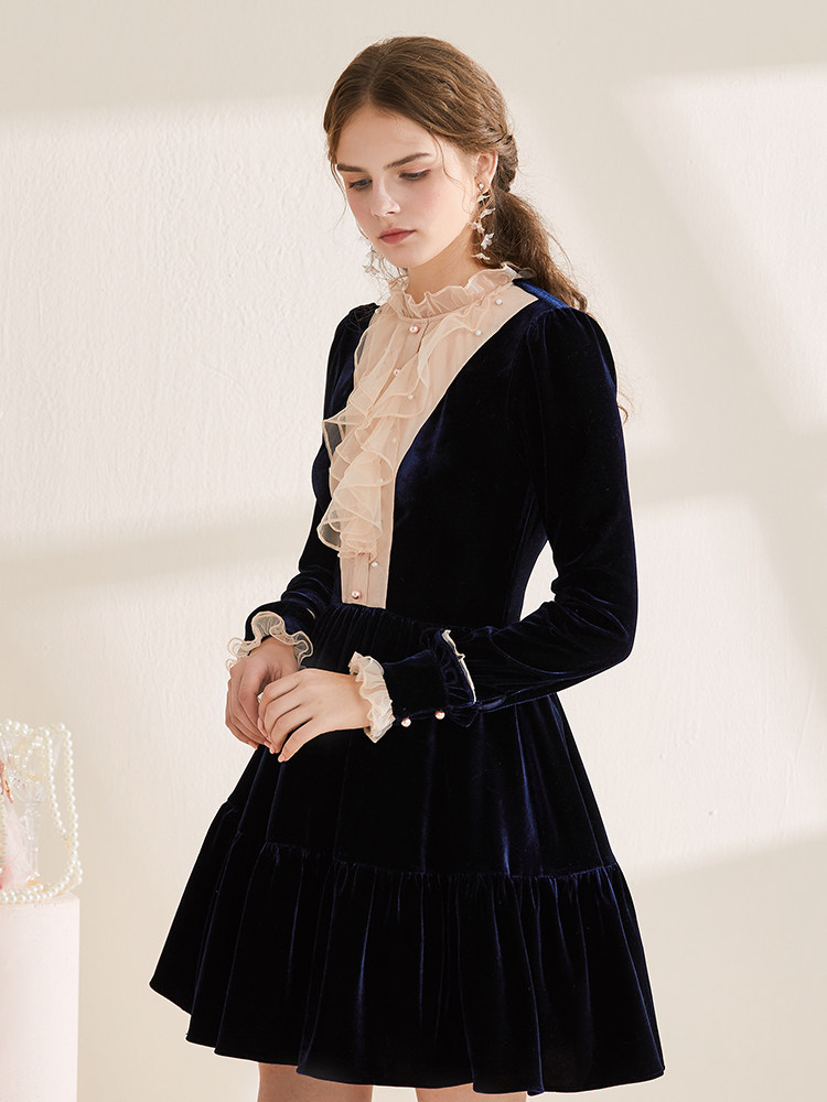 Японское осеннее бархатное приталенное платье, базовый лонгслив, коллекция 2021