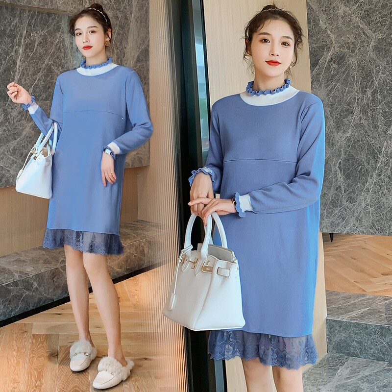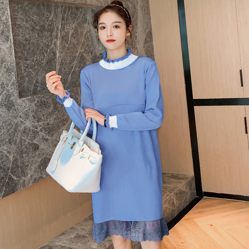Осеннее термобелье, длинный свитер для кормящих грудью, модное трикотажное платье для выхода на улицу, средней длины