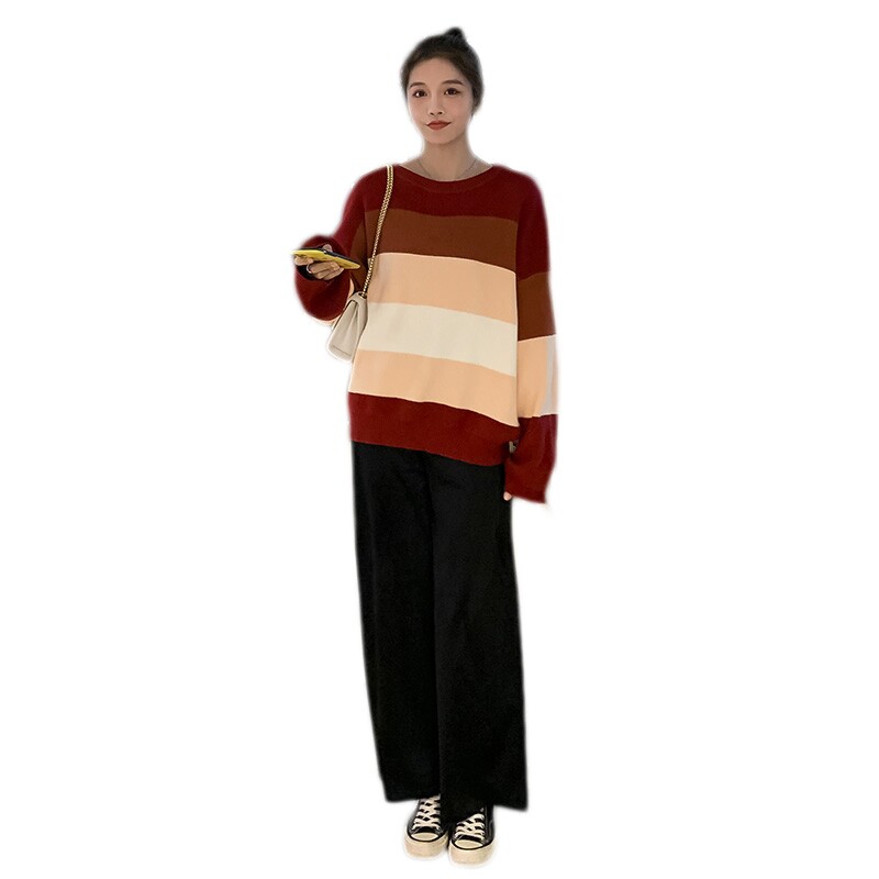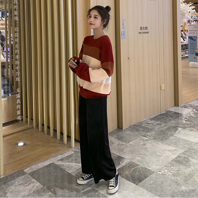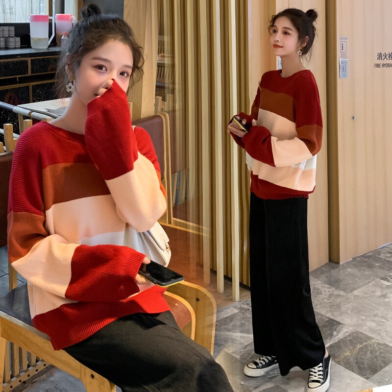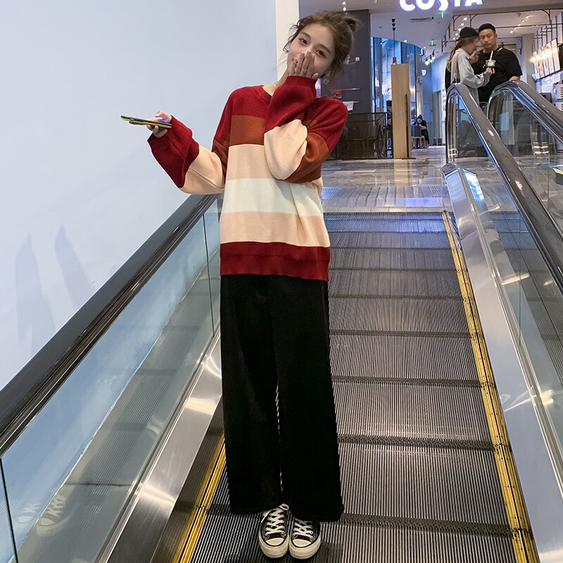 Демисезонный шерстяной комплект для беременных, цветной свитер, штаны