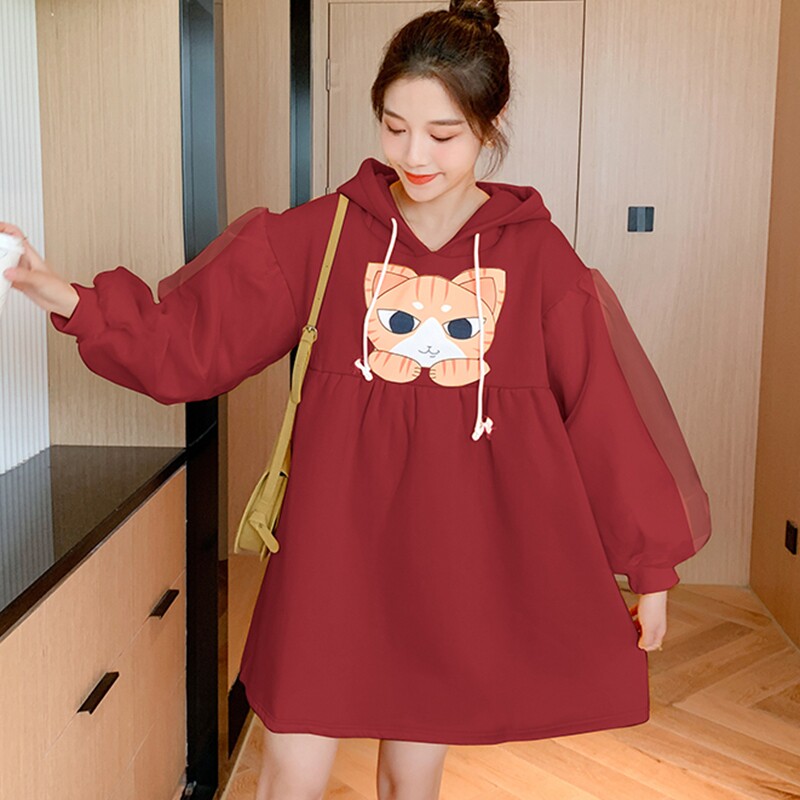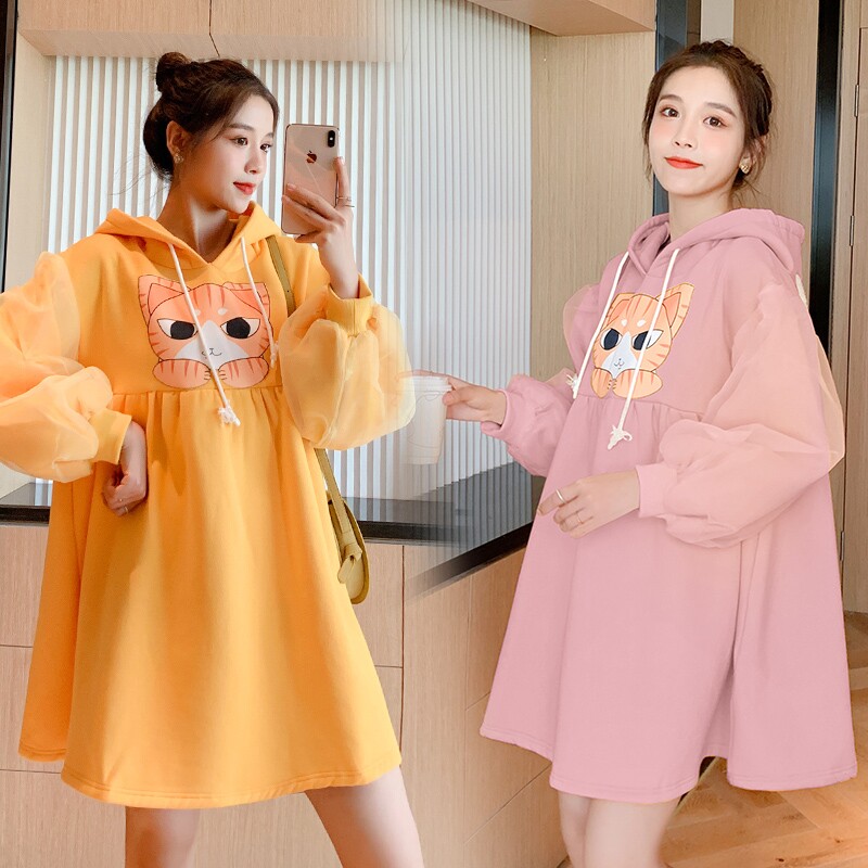 Милый демисезонный фонарь для беременных, мультяшная наклейка, платье, 2020, в западном стиле, большой размер