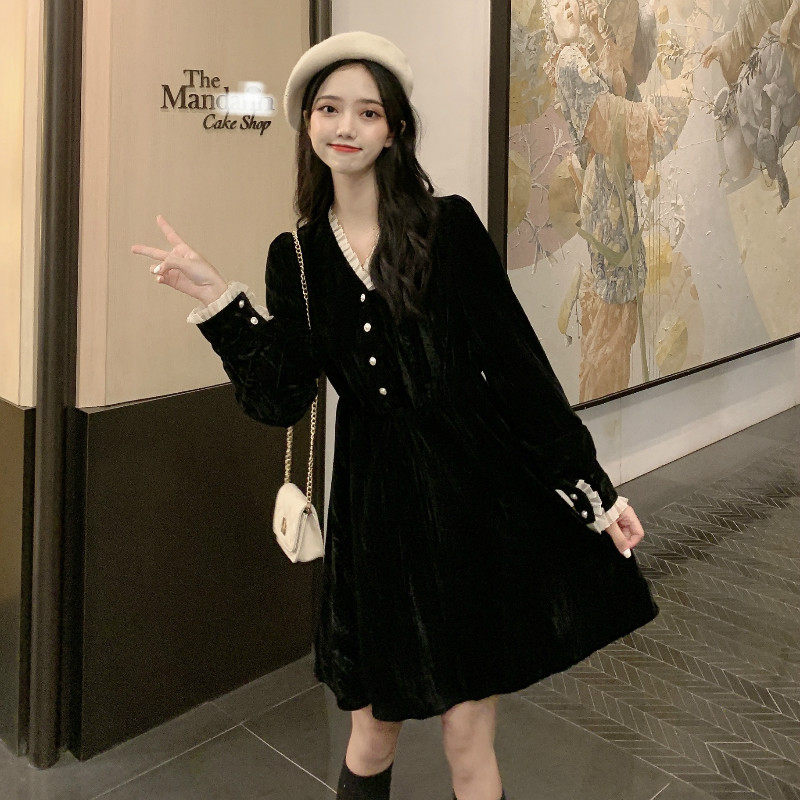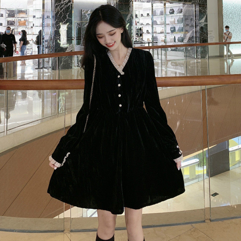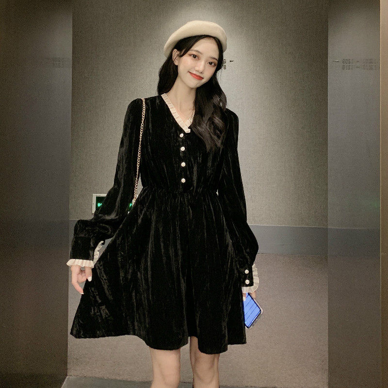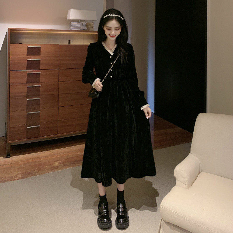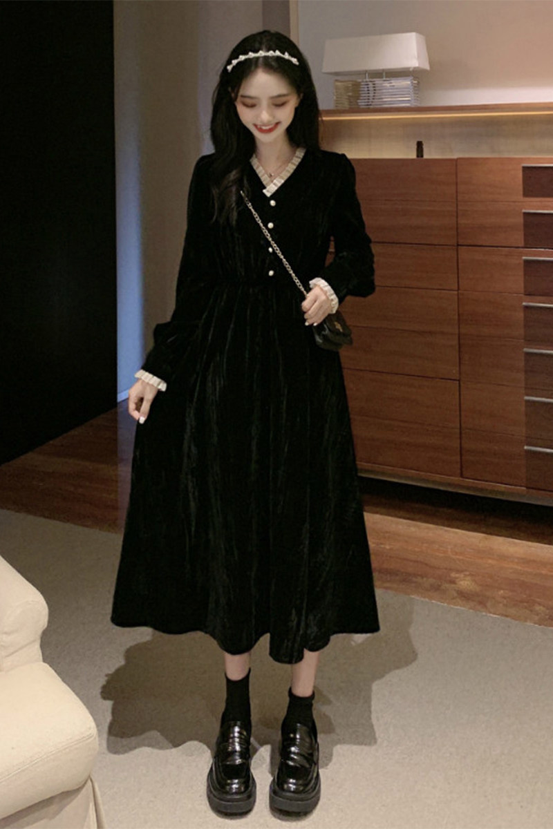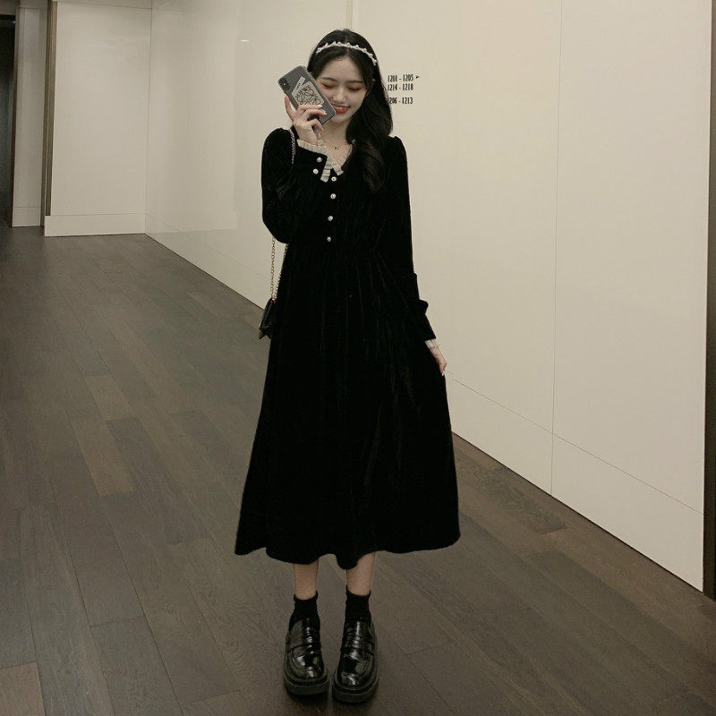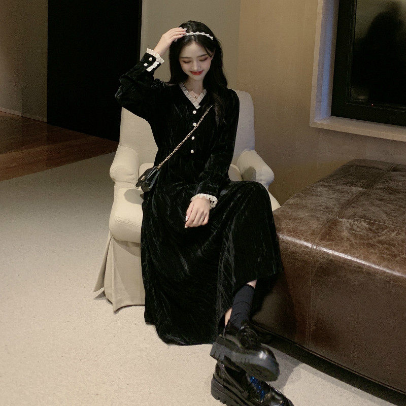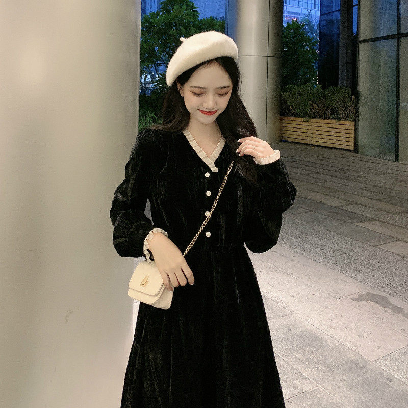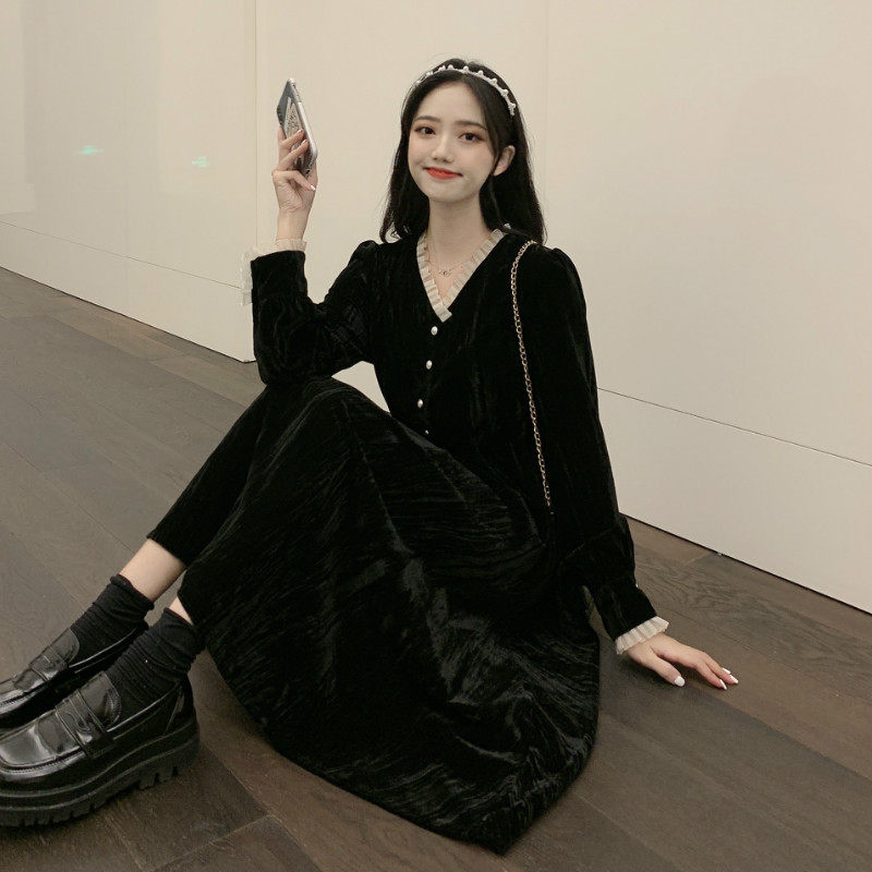 Ретро базовая черная длинная юбка, платье, французский стиль, яркий броский стиль