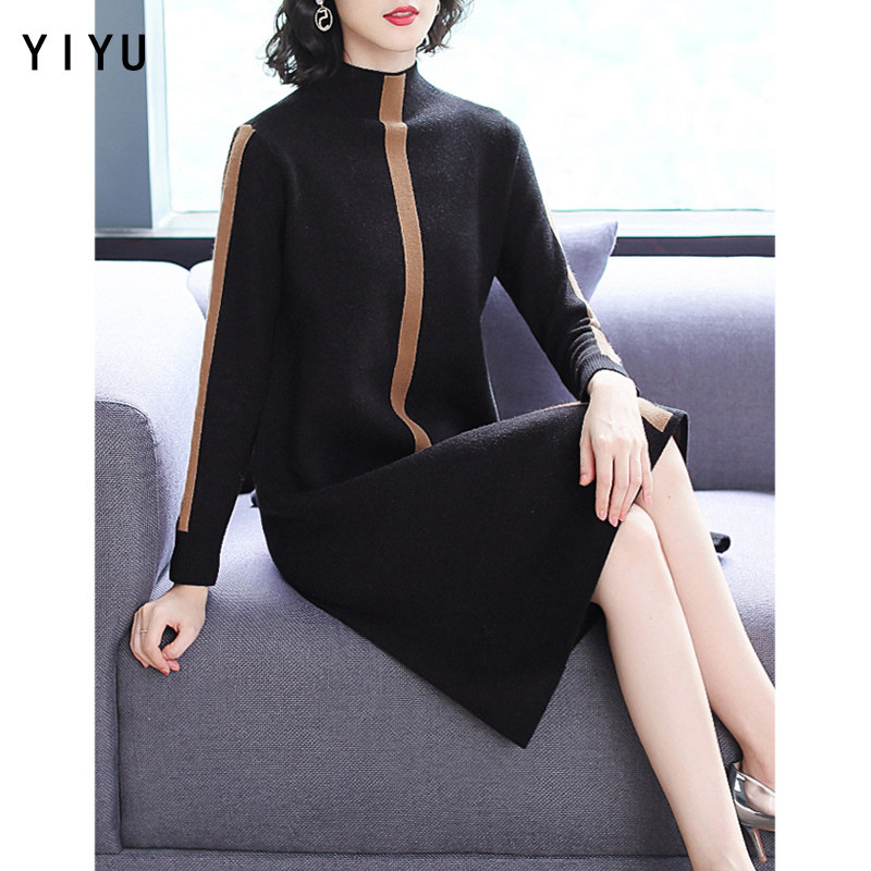 Осенний демисезонный свитер, длинное базовое приятное телу трикотажное платье, 2020 года, высокий воротник, оверсайз, средней длины