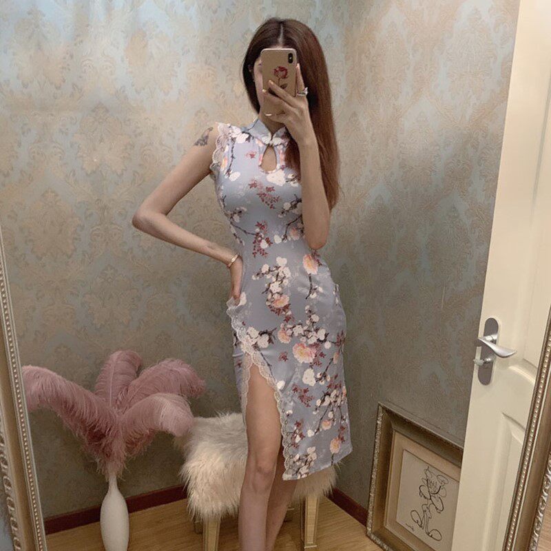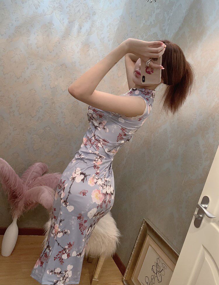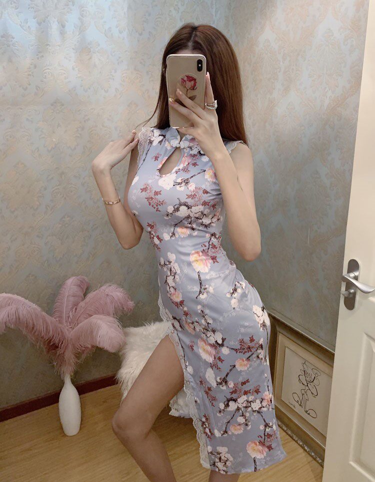 Сексуальная модель автомобиля, вечернее платье, длинное кружевное ципао, облегающий крой, средней длины