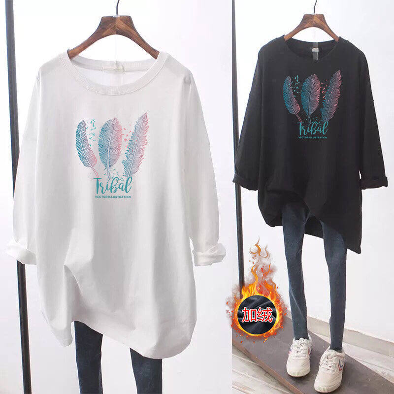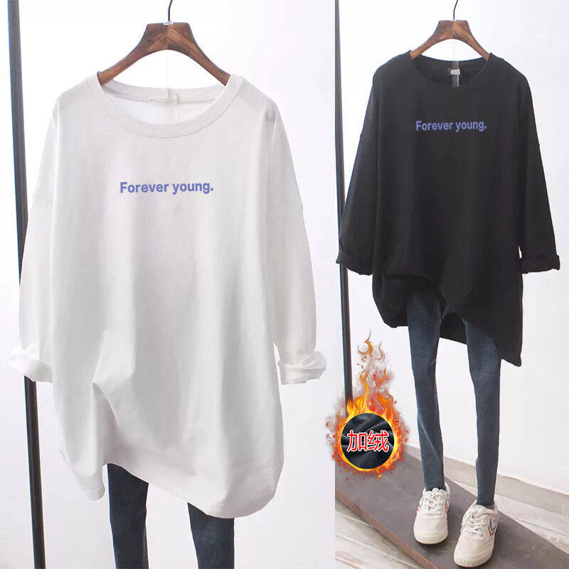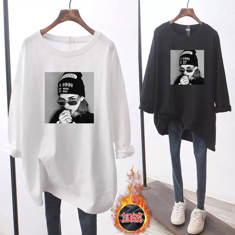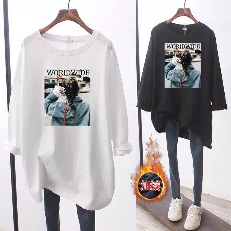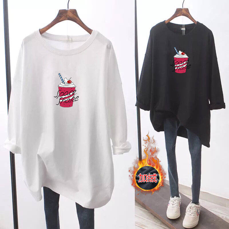 Демисезонный утепленный длинный базовый приятный телу лонгслив для беременных, большой размер, средней длины, в корейском стиле, свободный крой